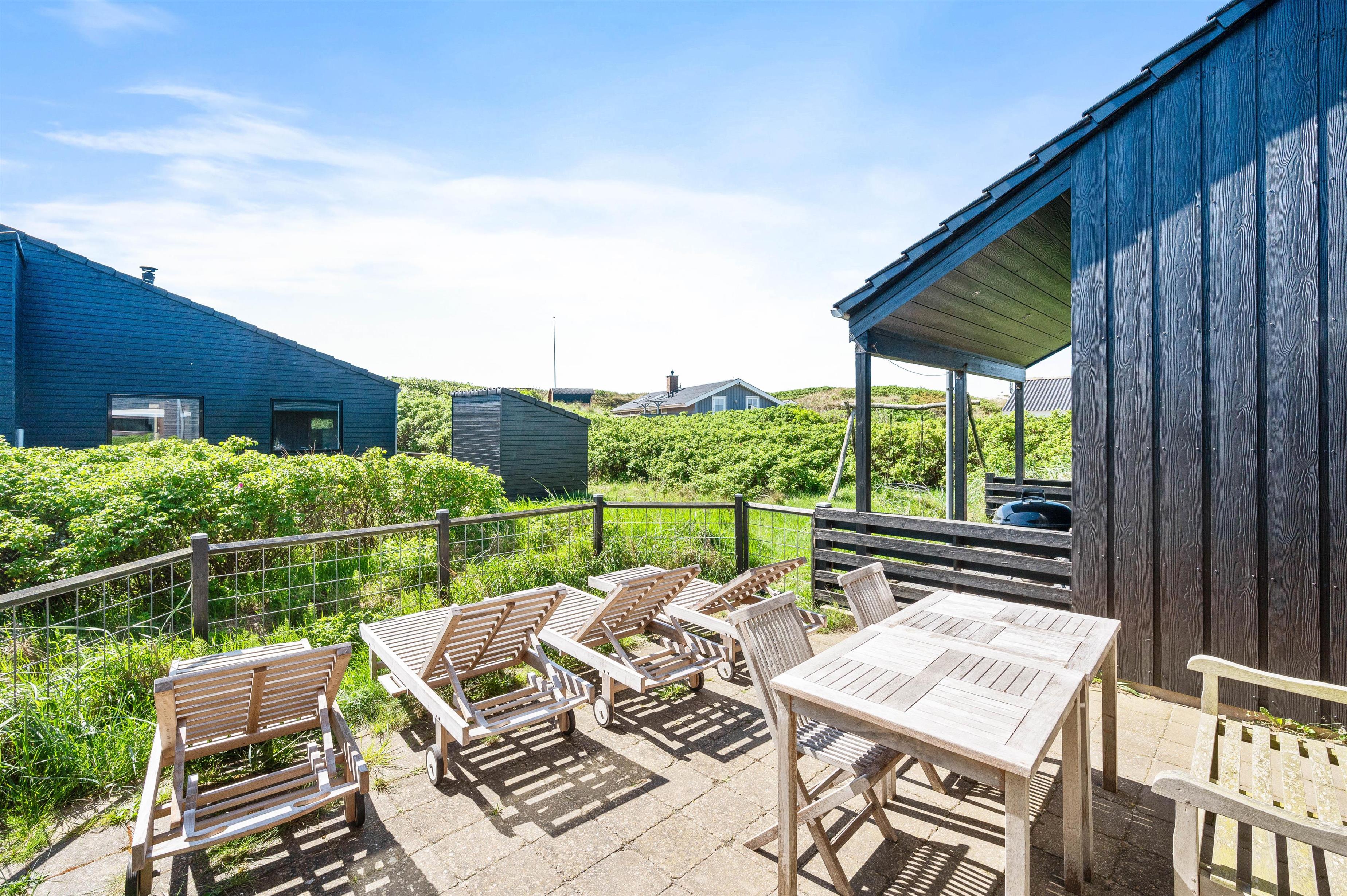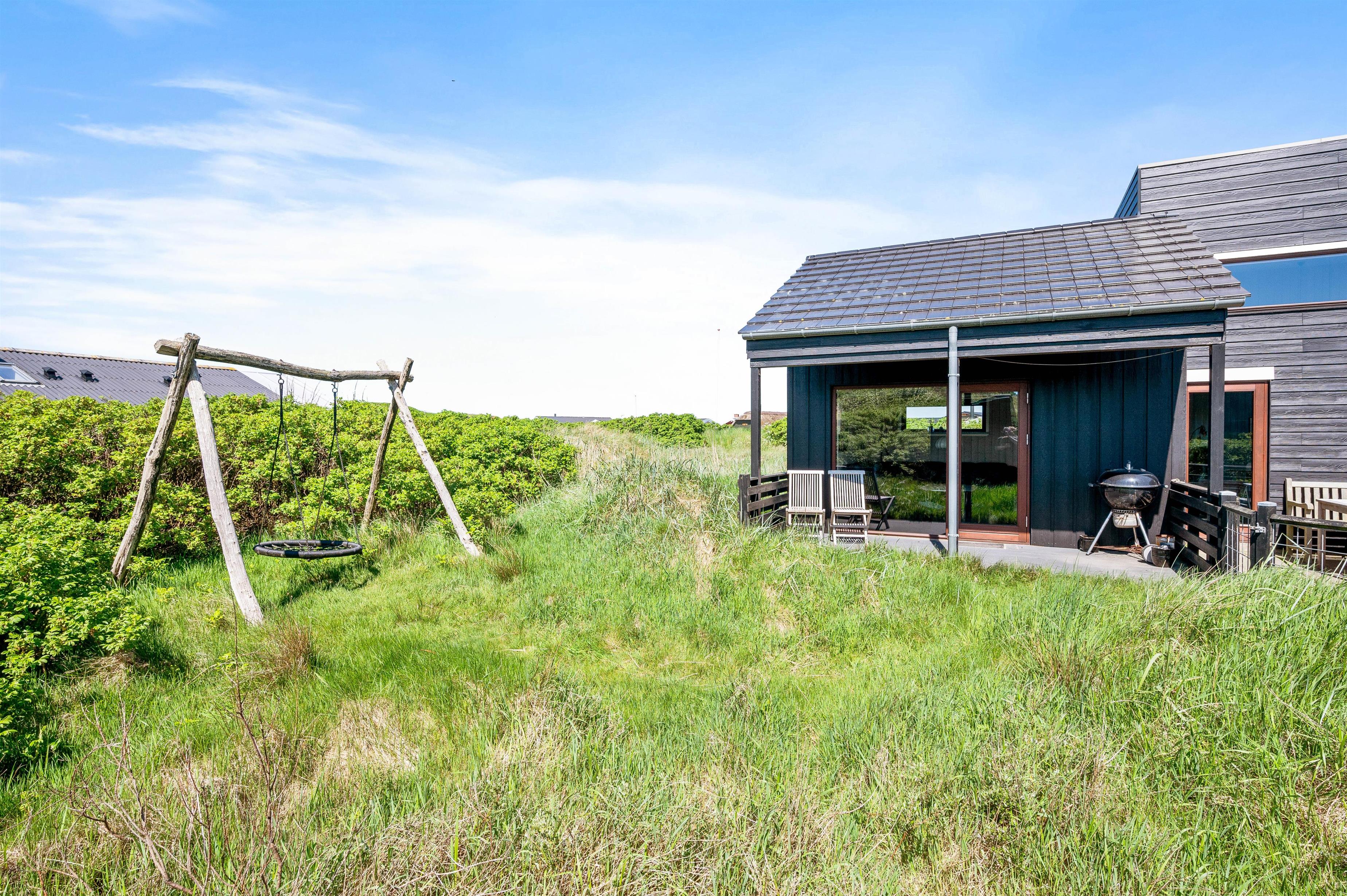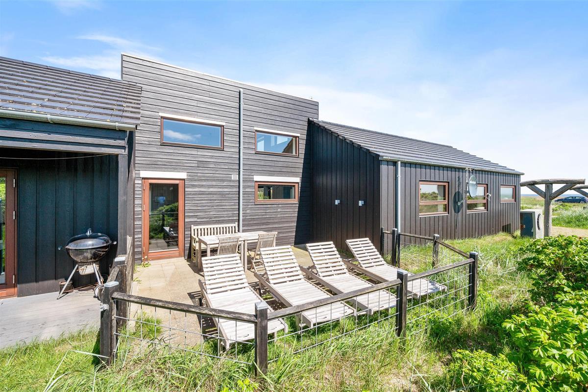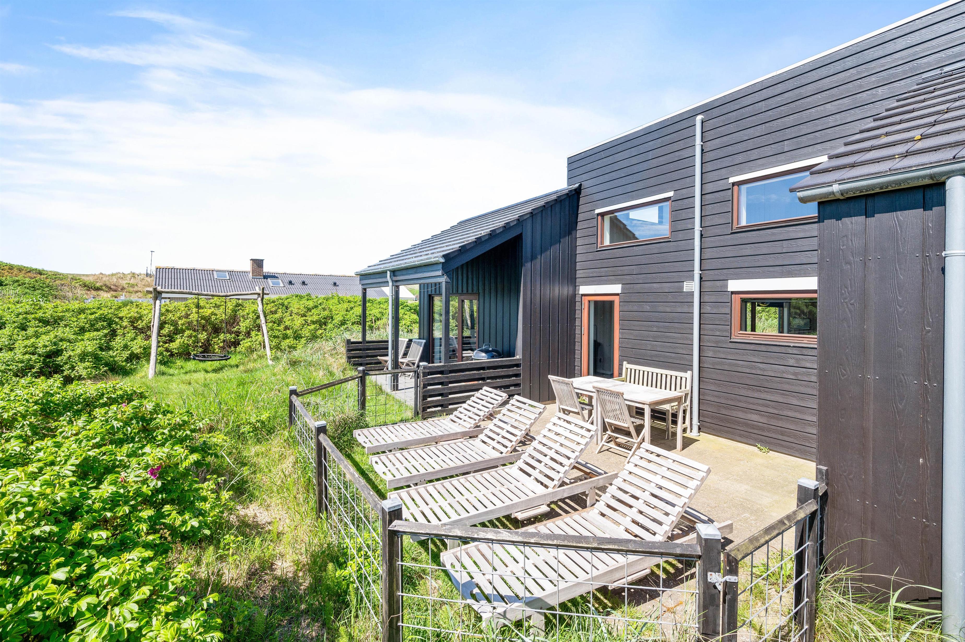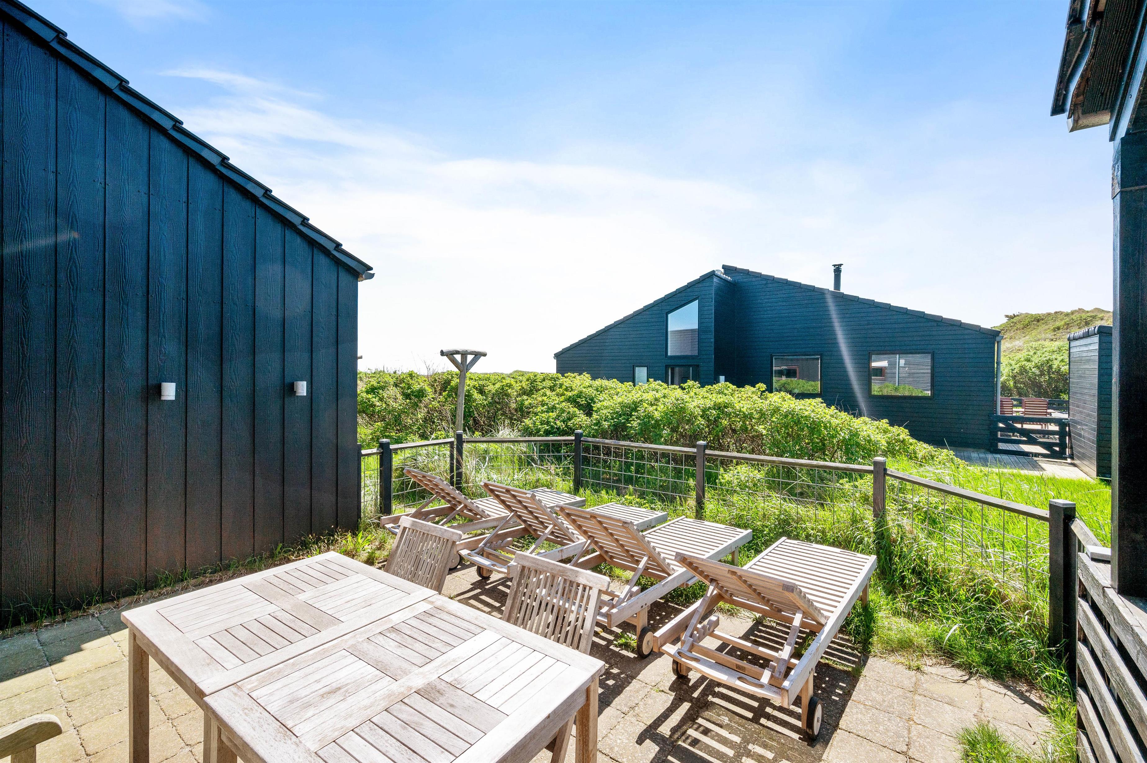 A beautifully unique luxury holiday home. Situated on a natural plot with a wonderful enclosed terrace – perfect for families with dogs or young children. This energy-efficient holiday home features a heat pump, covers 119 square metres, and accommodates up to 6 people and 2 dogs.