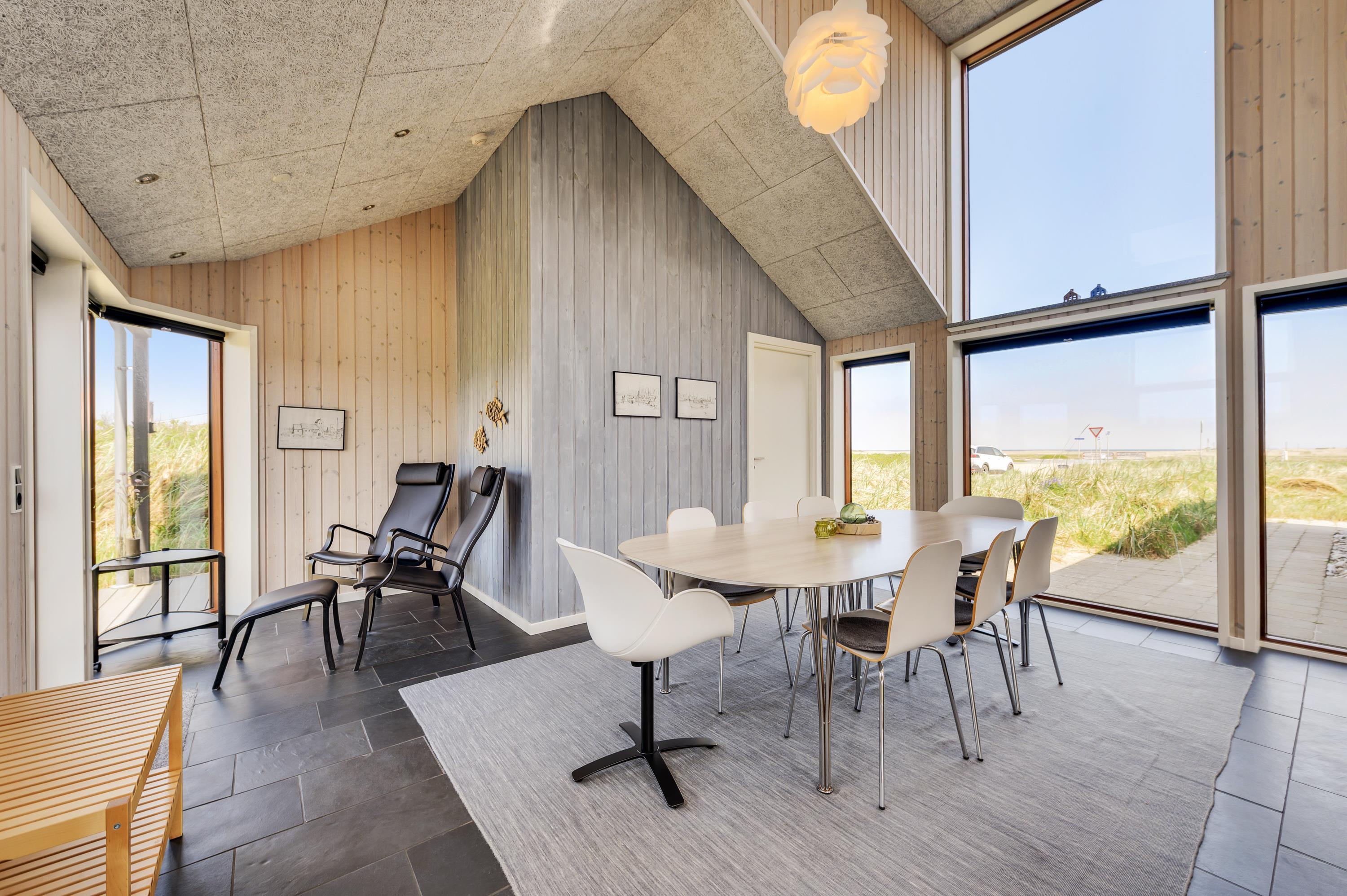 The house sits on a hillside natural plot offering beautiful views across Ringkøbing Fjord to the east, Mettes Bjerg (dune hill) to the south, and an unobstructed view towards the outermost dune line by the sea. The house design takes full advantage of the sun's path to maximise natural light during spring and autumn - hence the unique "tower" feature. Energy efficiency has been considered throughout, incorporating a heat pump, energy-efficient windows, appliances, television, light bulbs and more. This eco-friendly home has been constructed using quality materials sourced from Belgium, Brazil and Germany. Welcome to your North Sea coastal experience!