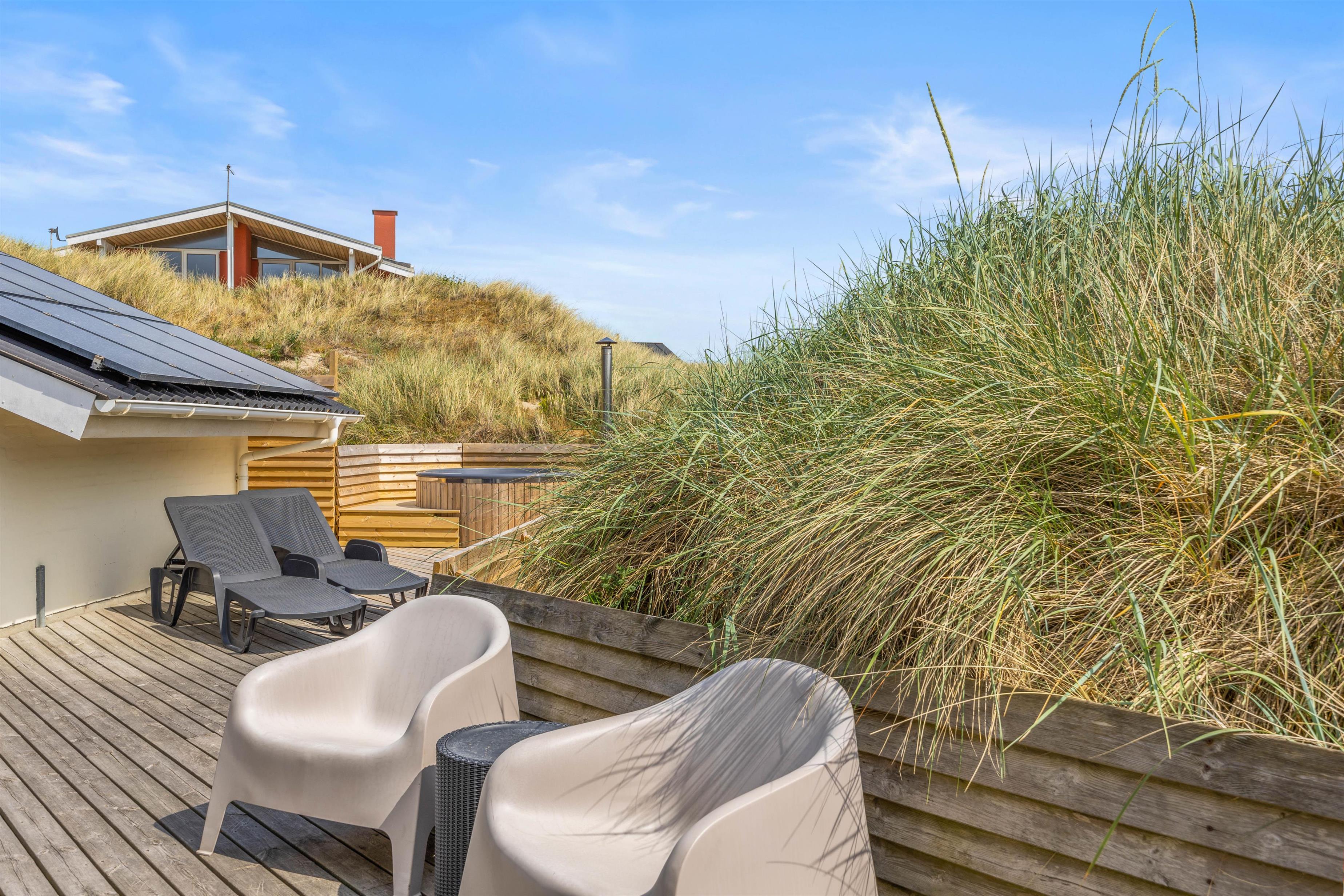 Outside, you'll find a spacious terrace perfect for relaxing, sunbathing, or enjoying barbecue evenings. The terrace is well-sheltered by the house and dunes, offering wind-protected spots. An outdoor shower is available from April to November.