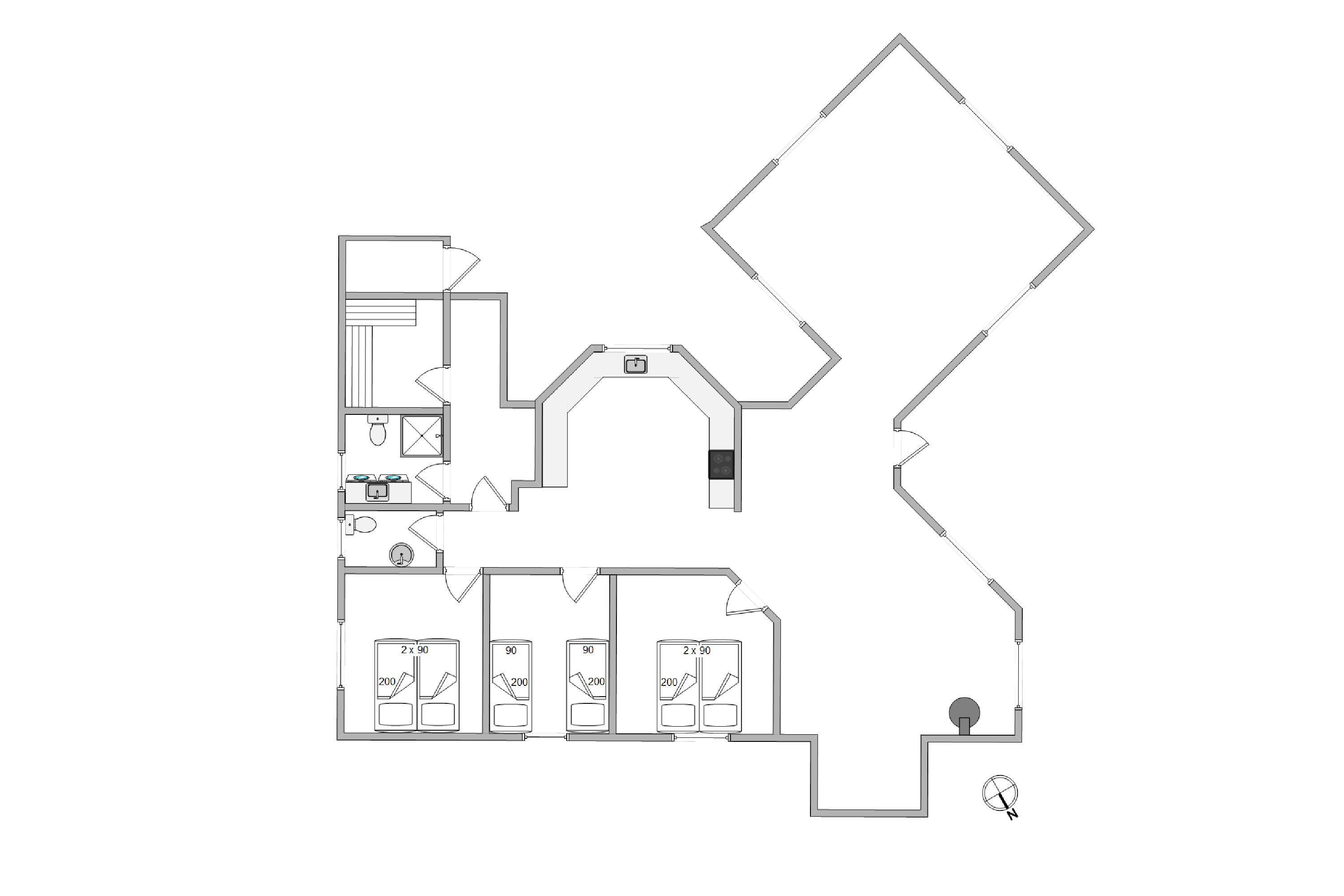 The bright and spacious kitchen is perfect for cooking meals or preparing side dishes for a barbecue evening. The living areas feature several cosy corners, ensuring you'll always find the perfect spot for watching films, playing games, or simply relaxing.