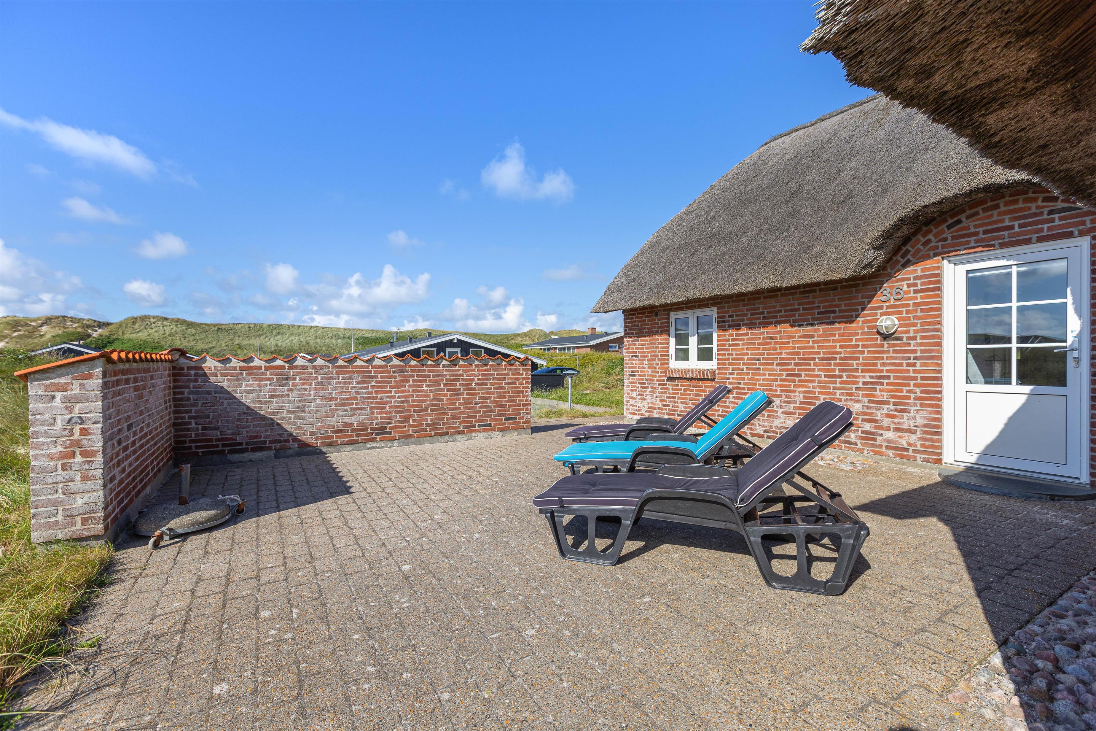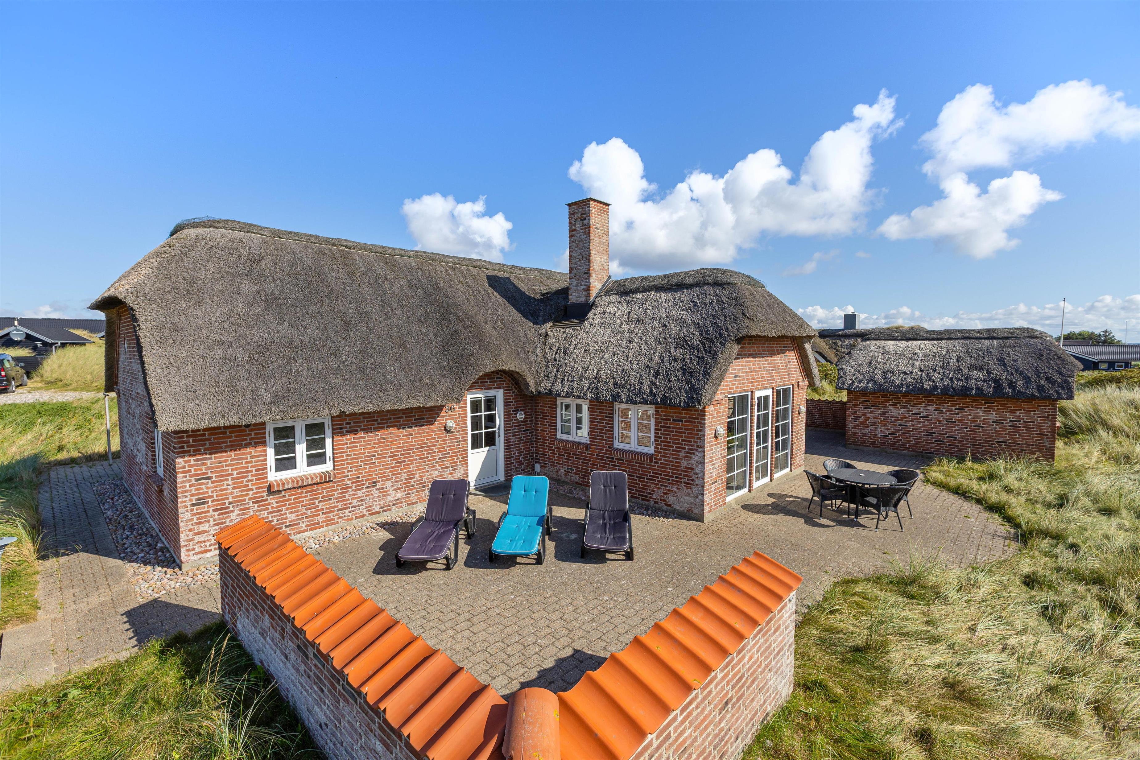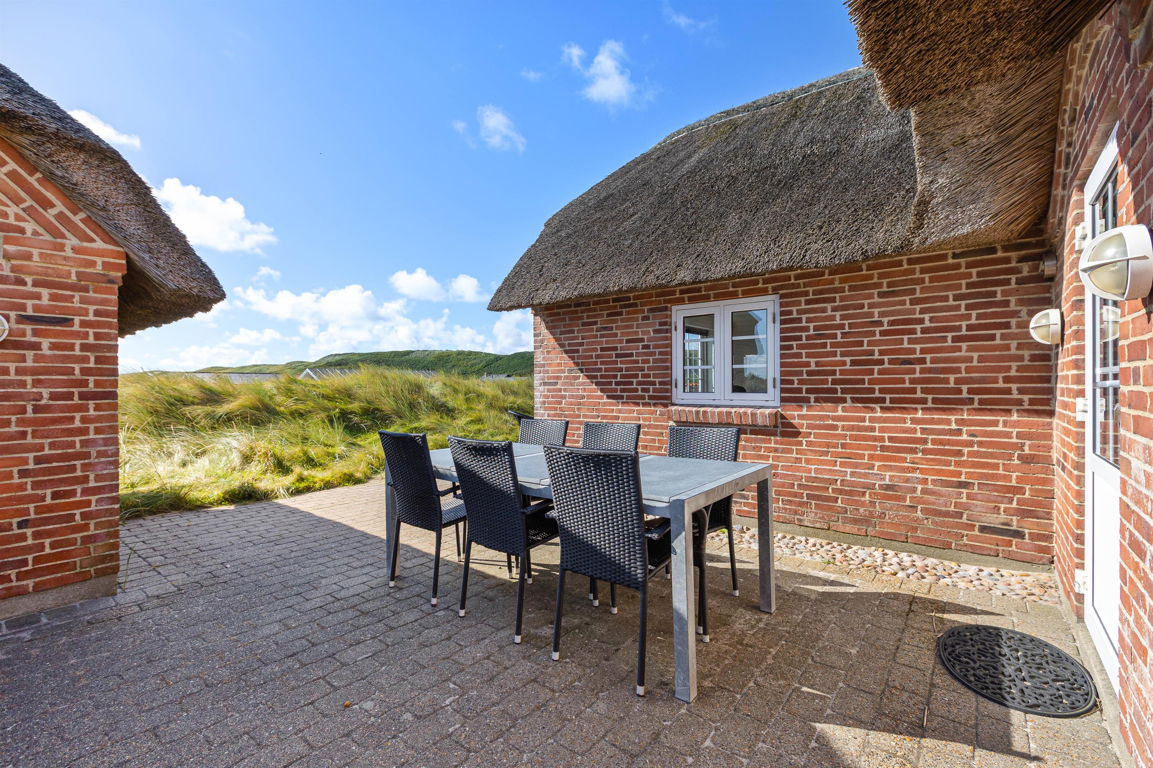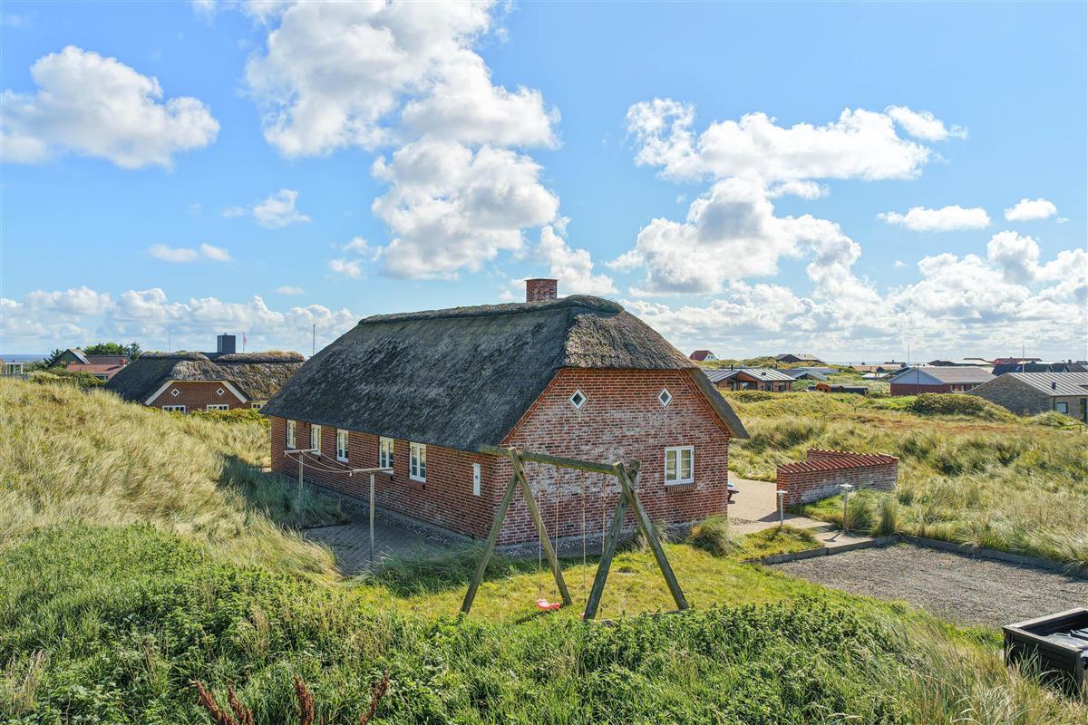 This well-maintained thatched holiday home is located on Strandkrogvejen in Årgab. The holiday home sits on a large natural plot just 150 metres from the beach and approximately 2 kilometres from Hvide Sande. The house accommodates up to 7 people and features both a sauna and a hot tub.