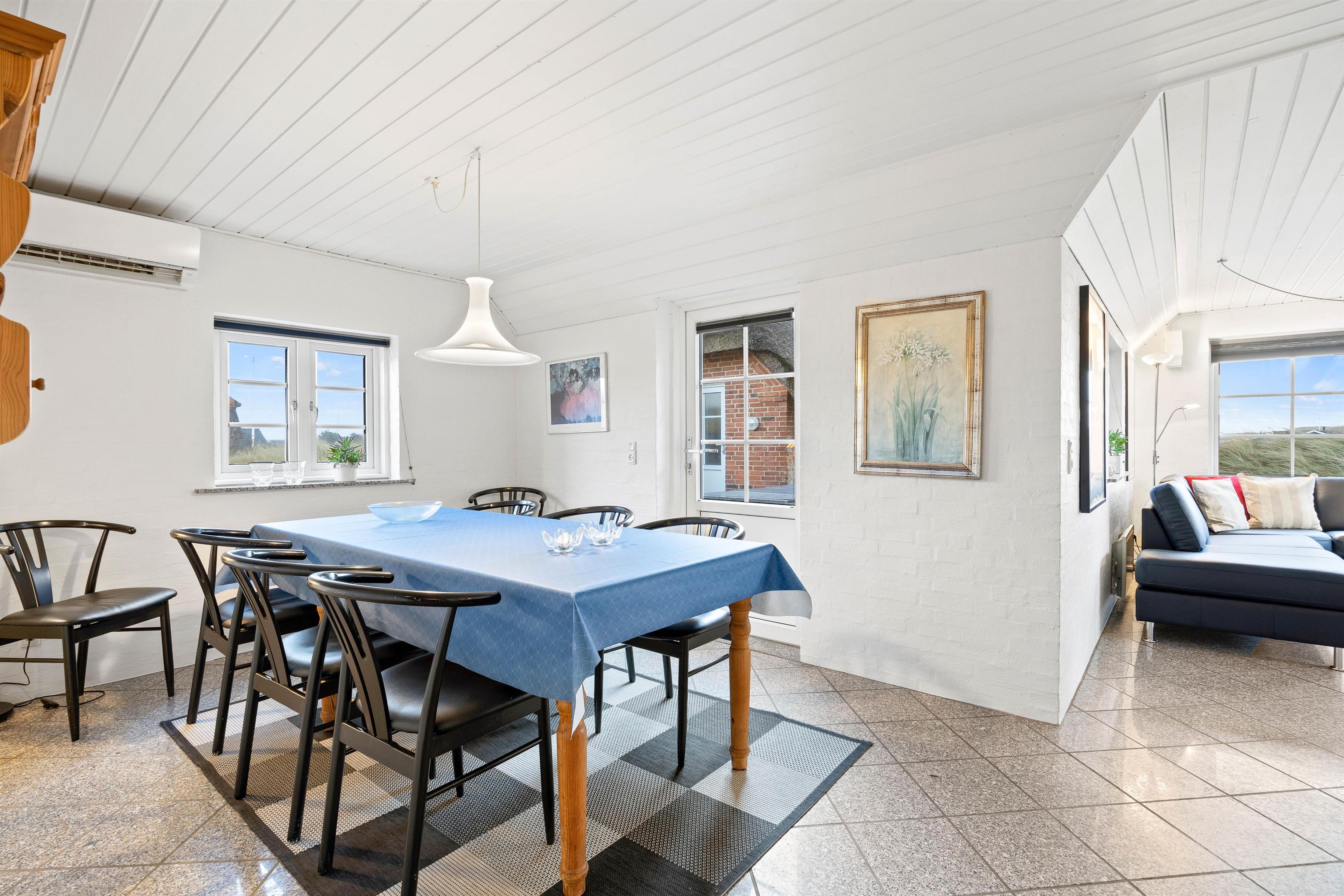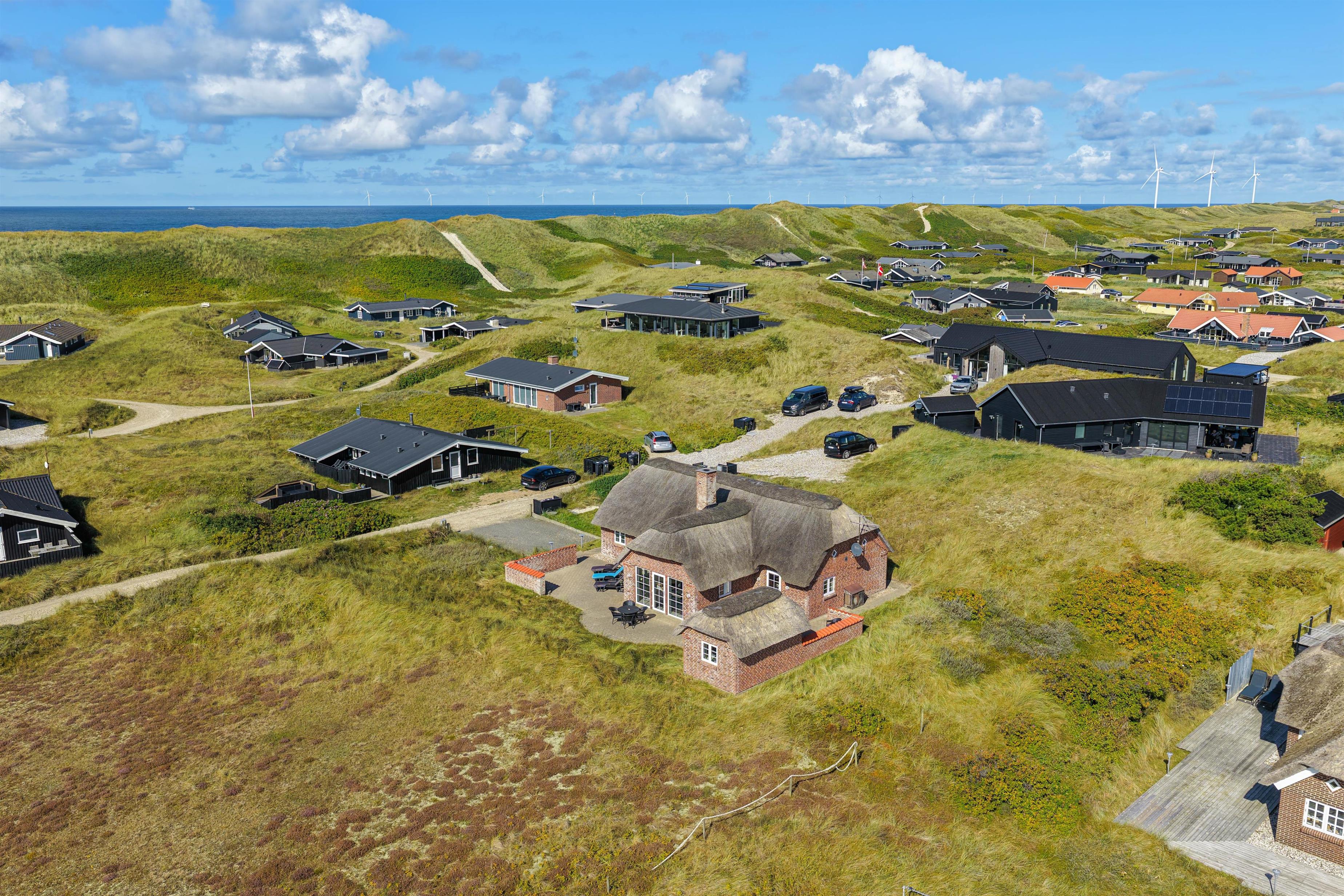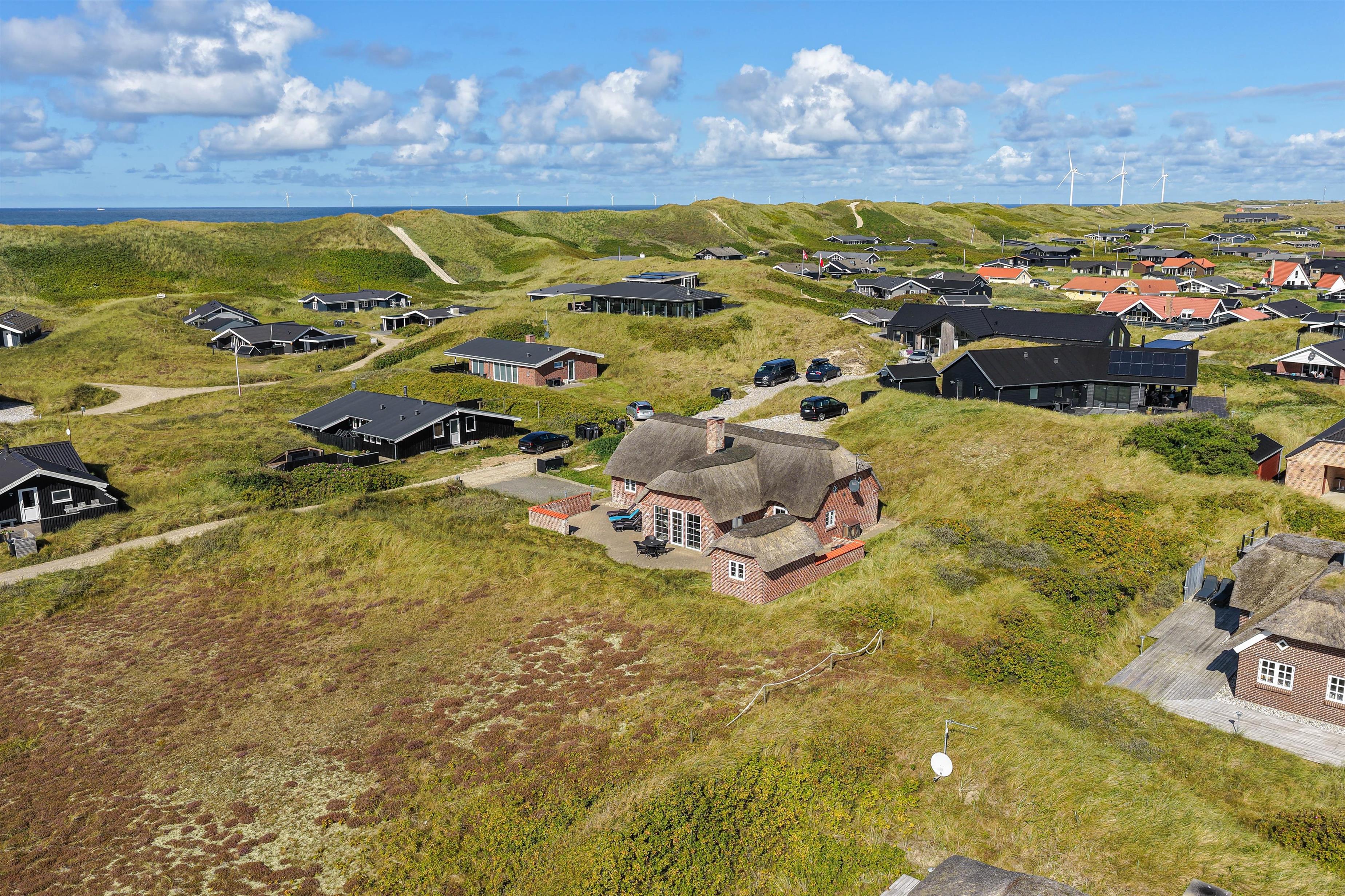 This well-maintained thatched holiday home is located on Strandkrogvejen in Årgab. The holiday home sits on a large natural plot just 150 metres from the beach and approximately 2 kilometres from Hvide Sande. The house accommodates up to 7 people and features both a sauna and a hot tub.