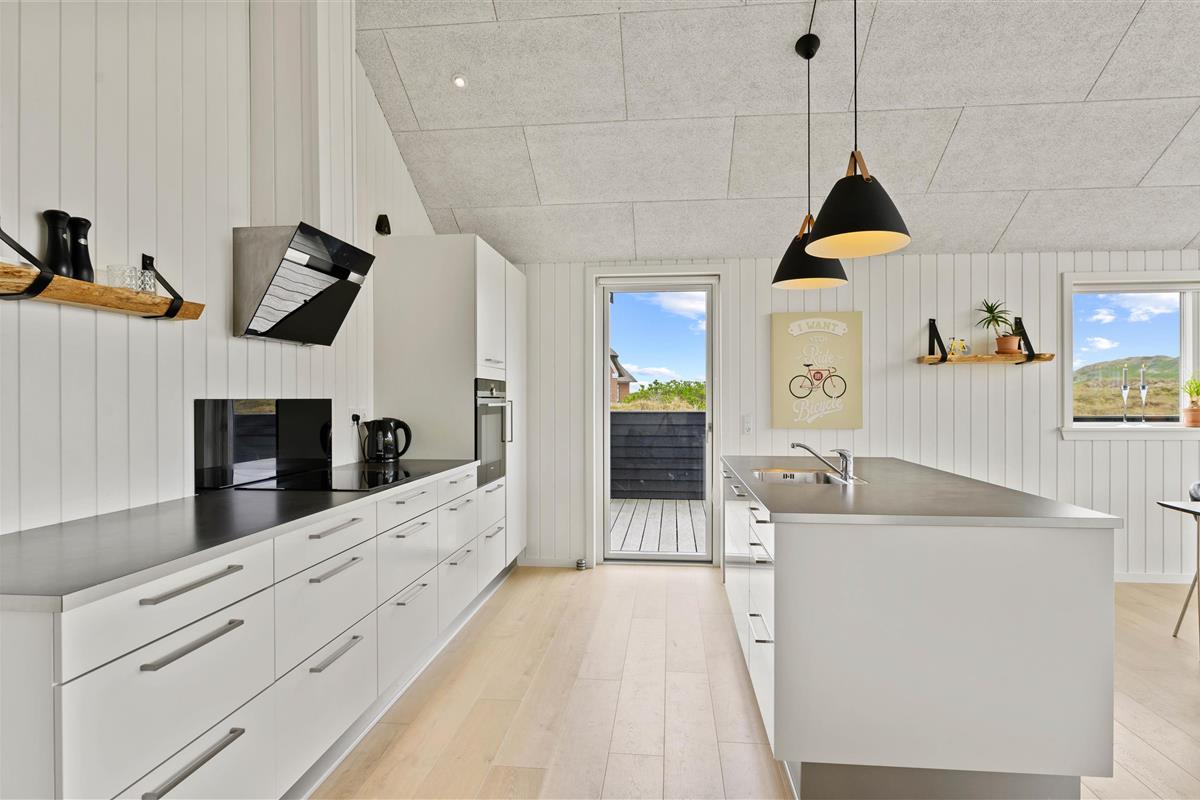A modern and welcoming holiday home in a fantastic location on the front row of dunes in the popular holiday region of Årgab. The house is well-arranged and optimally positioned on its plot - both for sunlight and wind protection. The holiday home offers an excellent terrace, with a large portion enclosed. The southwest-facing section is partially covered.