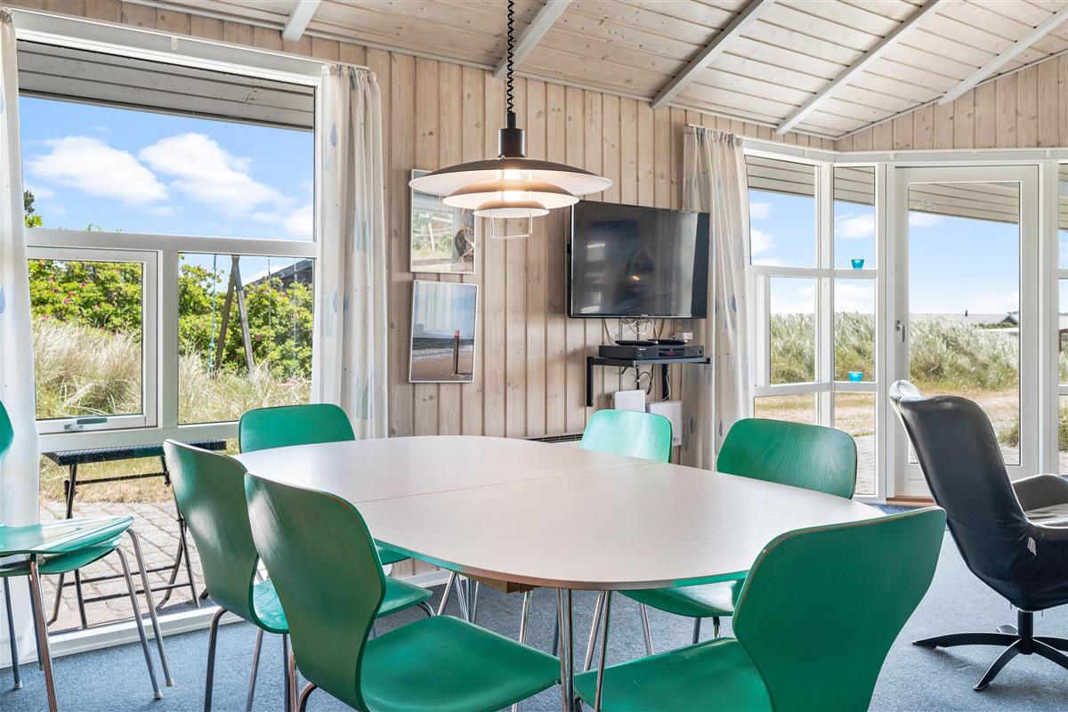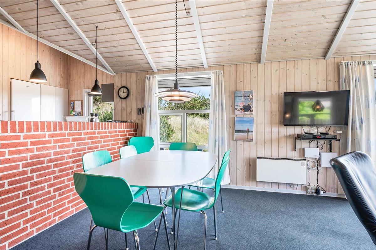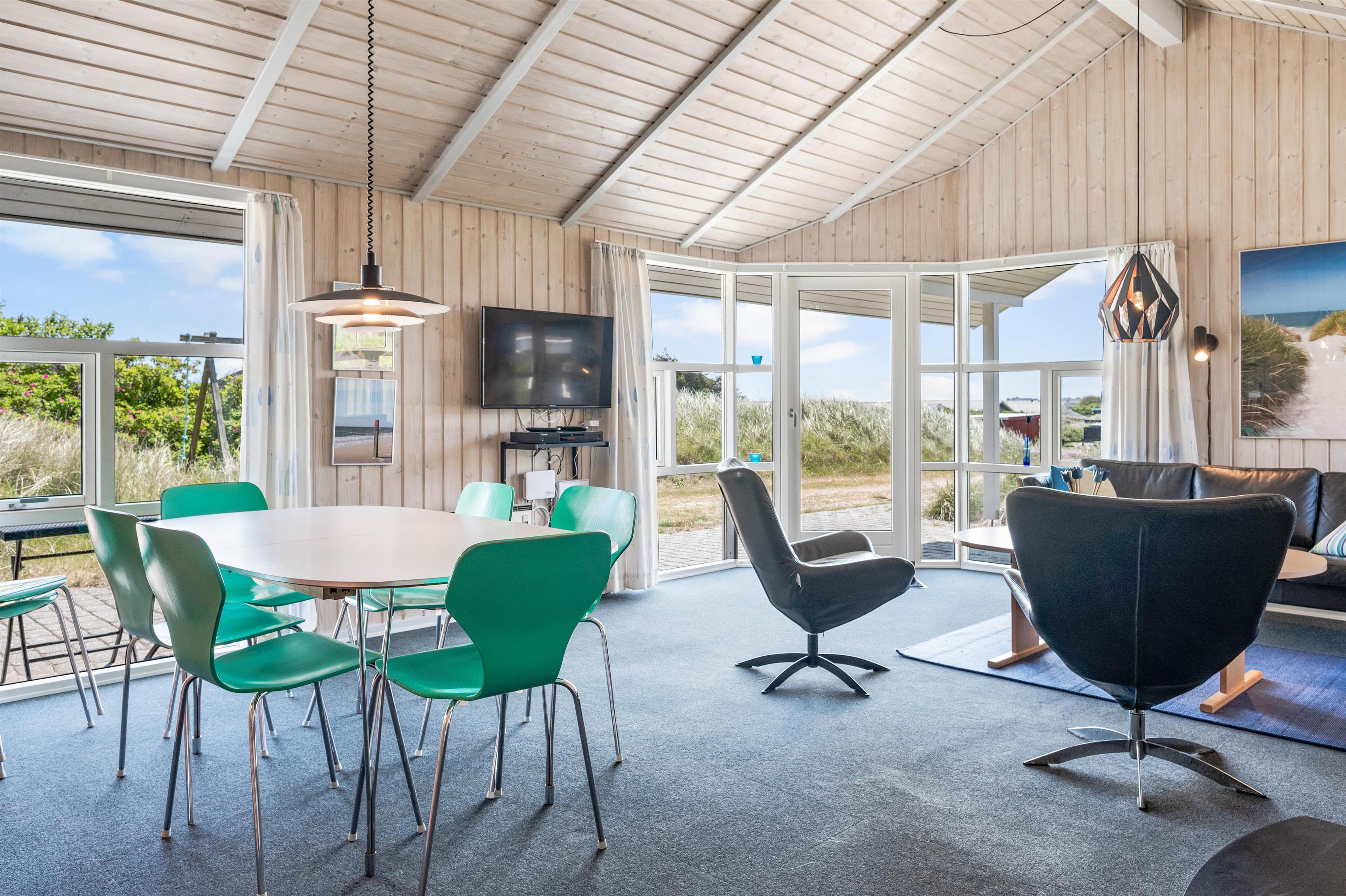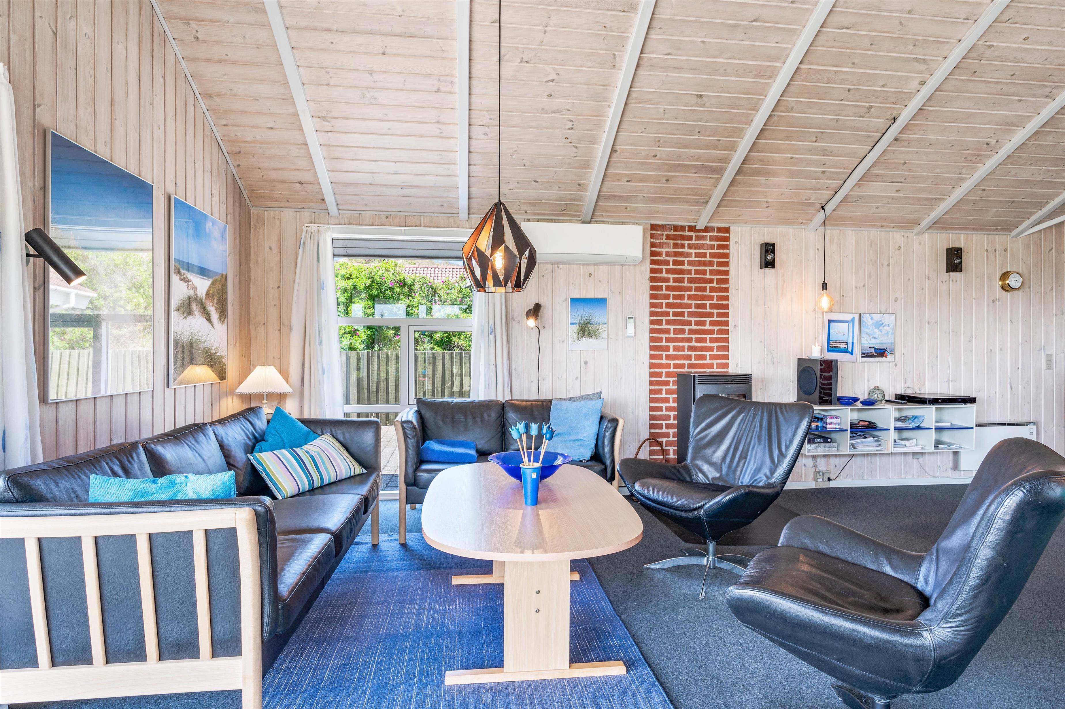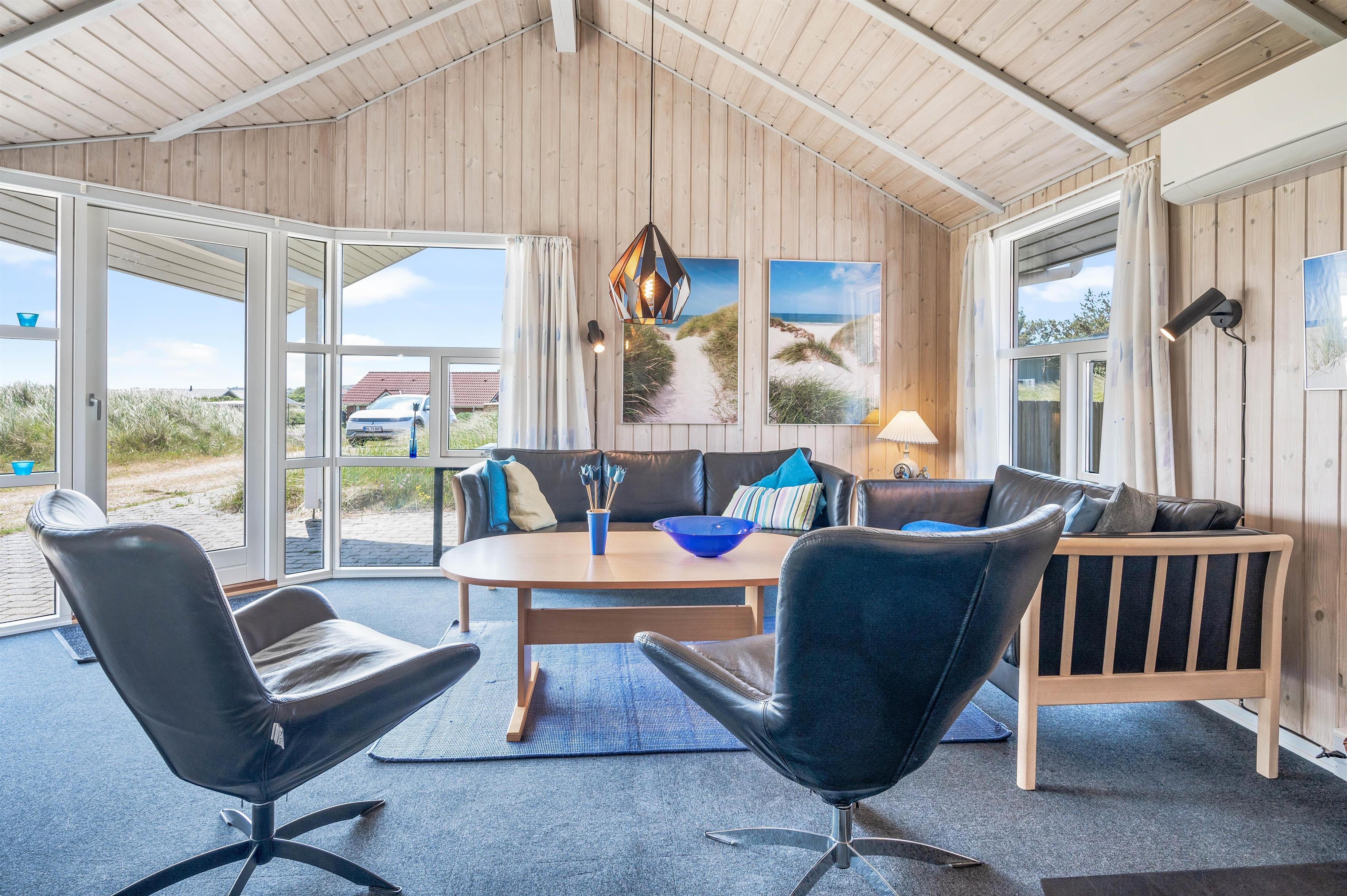 From the moment you arrive, you'll experience the beautiful natural surroundings that make Årgab such a wonderful holiday destination. The living room features large windows offering magnificent views across the dune landscape surrounding the holiday home.