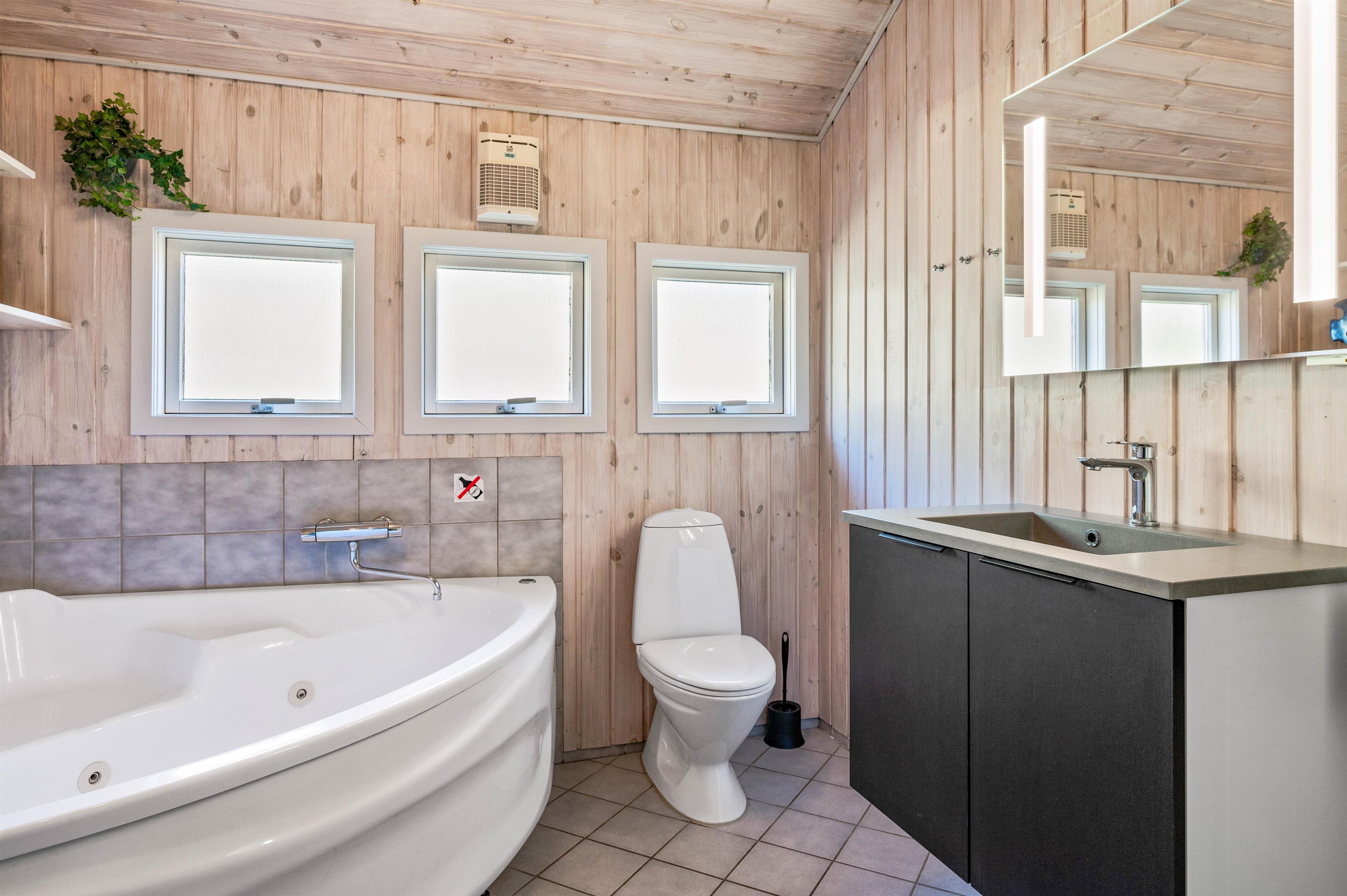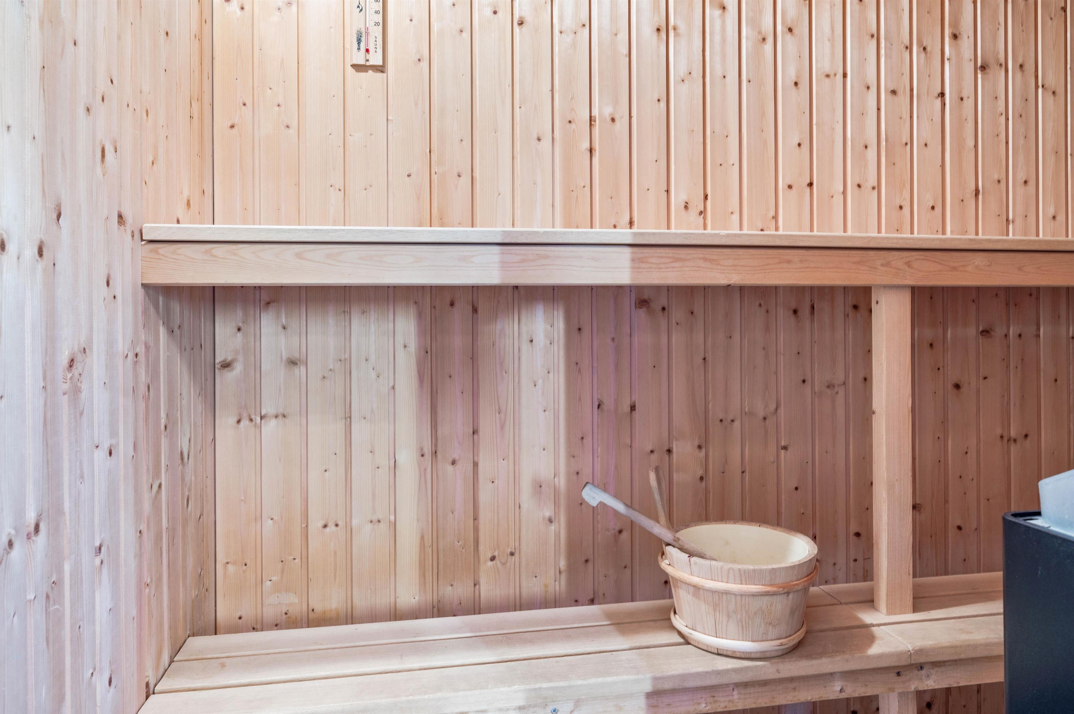 The holiday home also includes a sauna and whirlpool, perfect for unwinding after an active day. Four comfortable bedrooms with laminate flooring provide two double beds and three single beds.