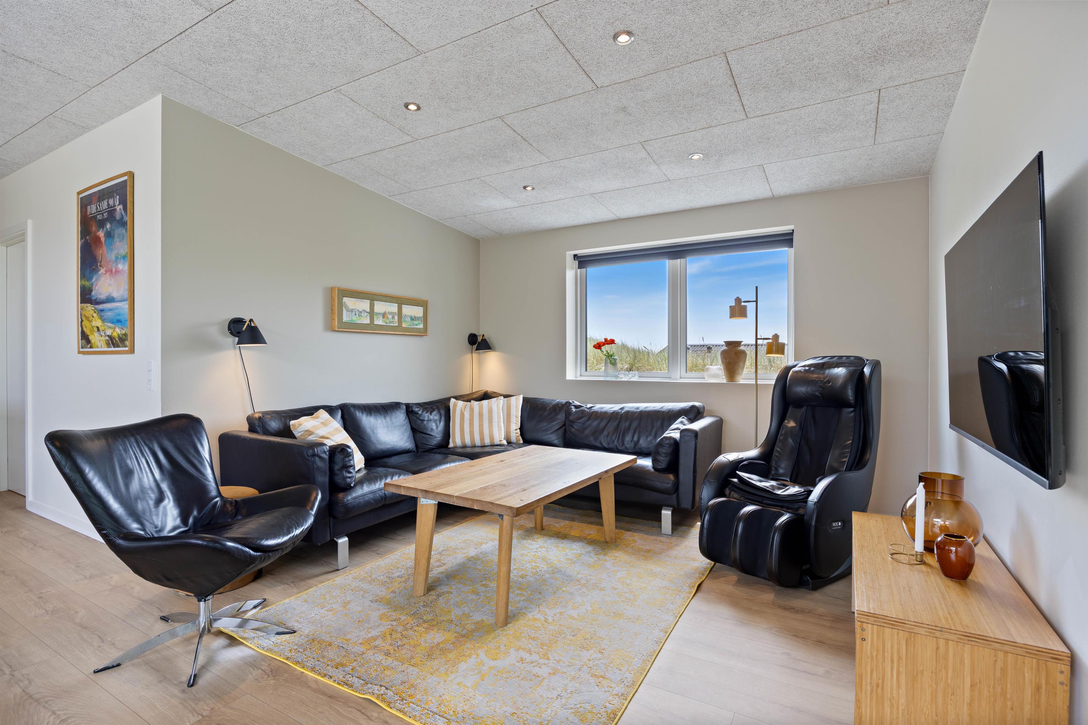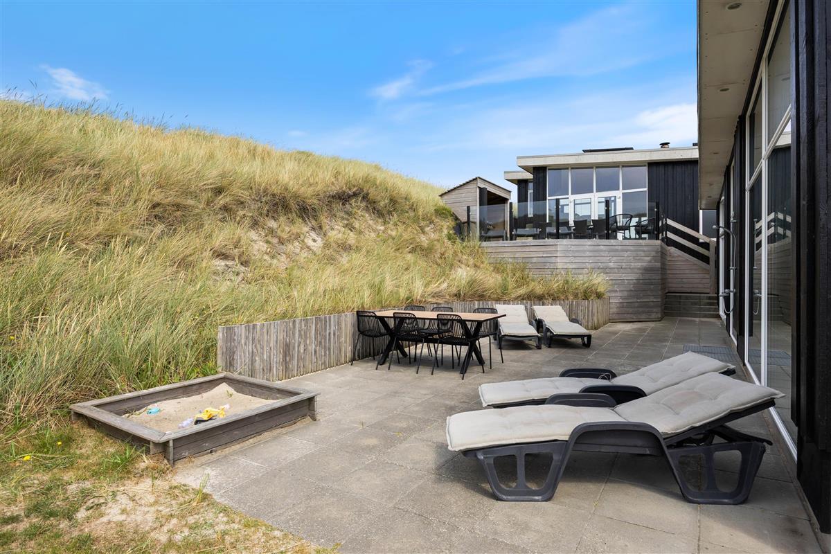 Children's entertainment is provided outdoors with both a slide and swing, and the vast sandy beach is just steps away. Let your gaze wander across the landscape to the fjord or watch the sunset directly from the dunes – pure relaxation.