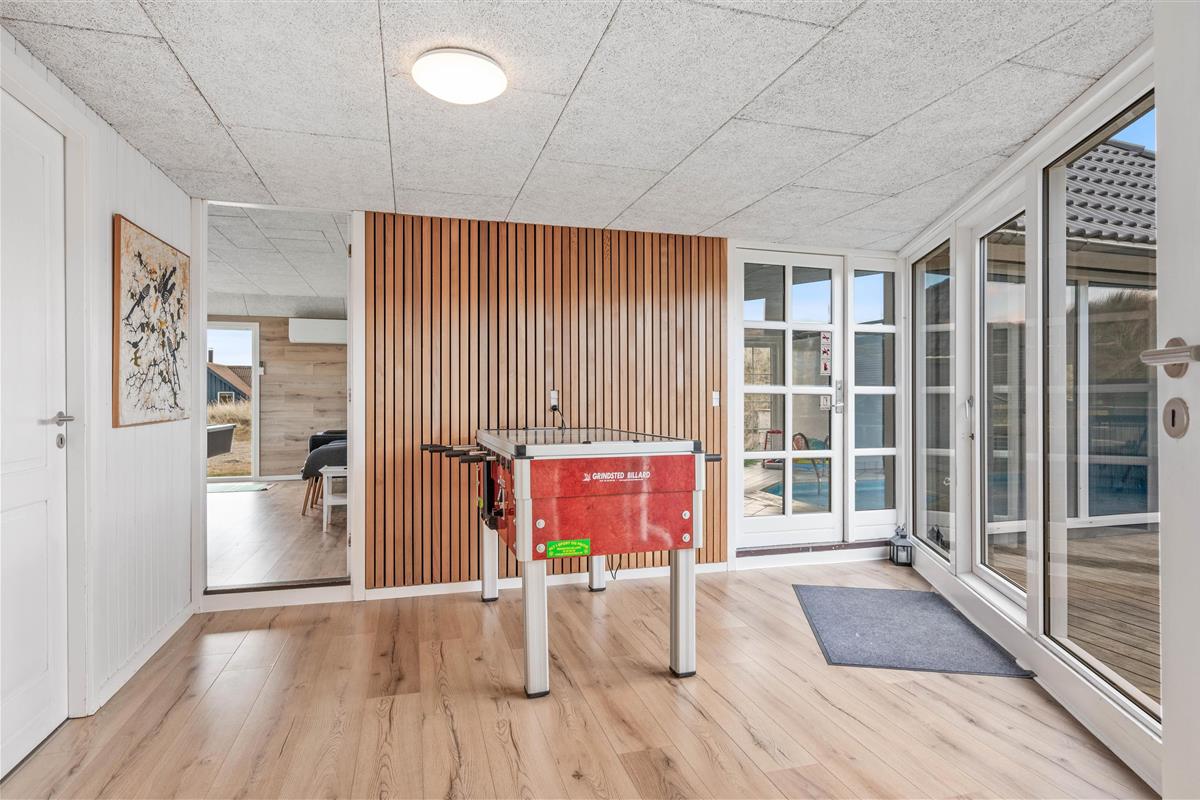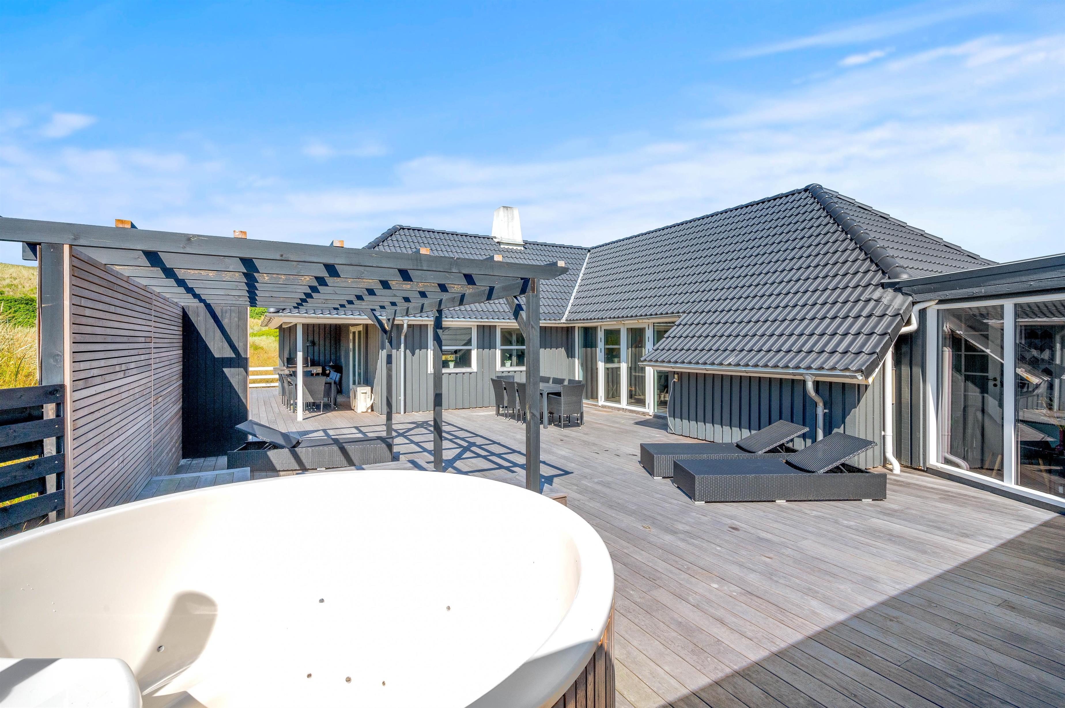 Welcome to this well-equipped, modern and beautiful holiday home at Tingodden 35, situated in the dunes. This splendid holiday home is perfect for those seeking a complete holiday experience with swimming pool, wellness area, outdoor hot tub and much more. Built in 1984 and completely renovated in 2023, the house now offers bright and modern facilities. It accommodates up to 10 people, ideal for large families or multiple families holidaying together.