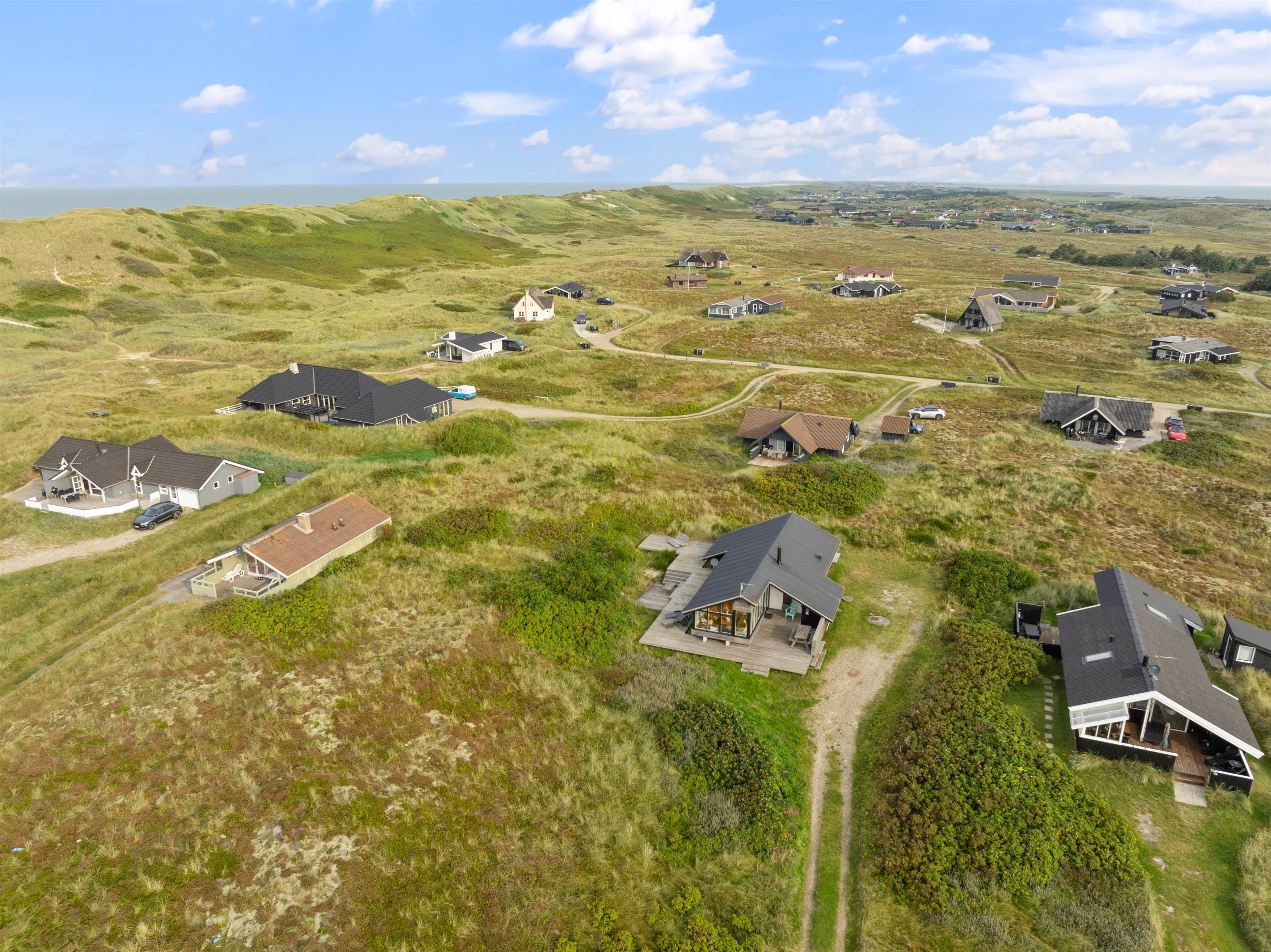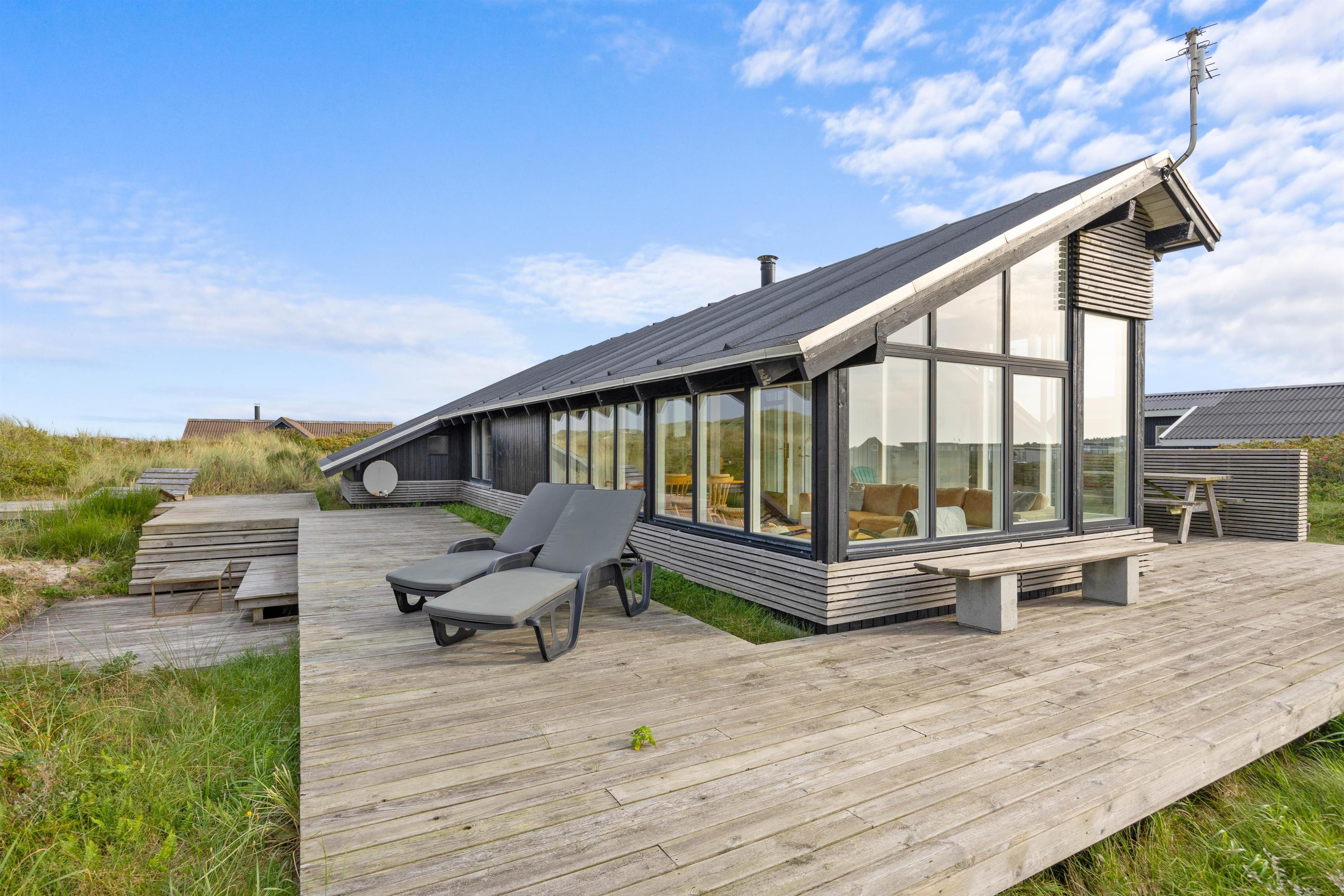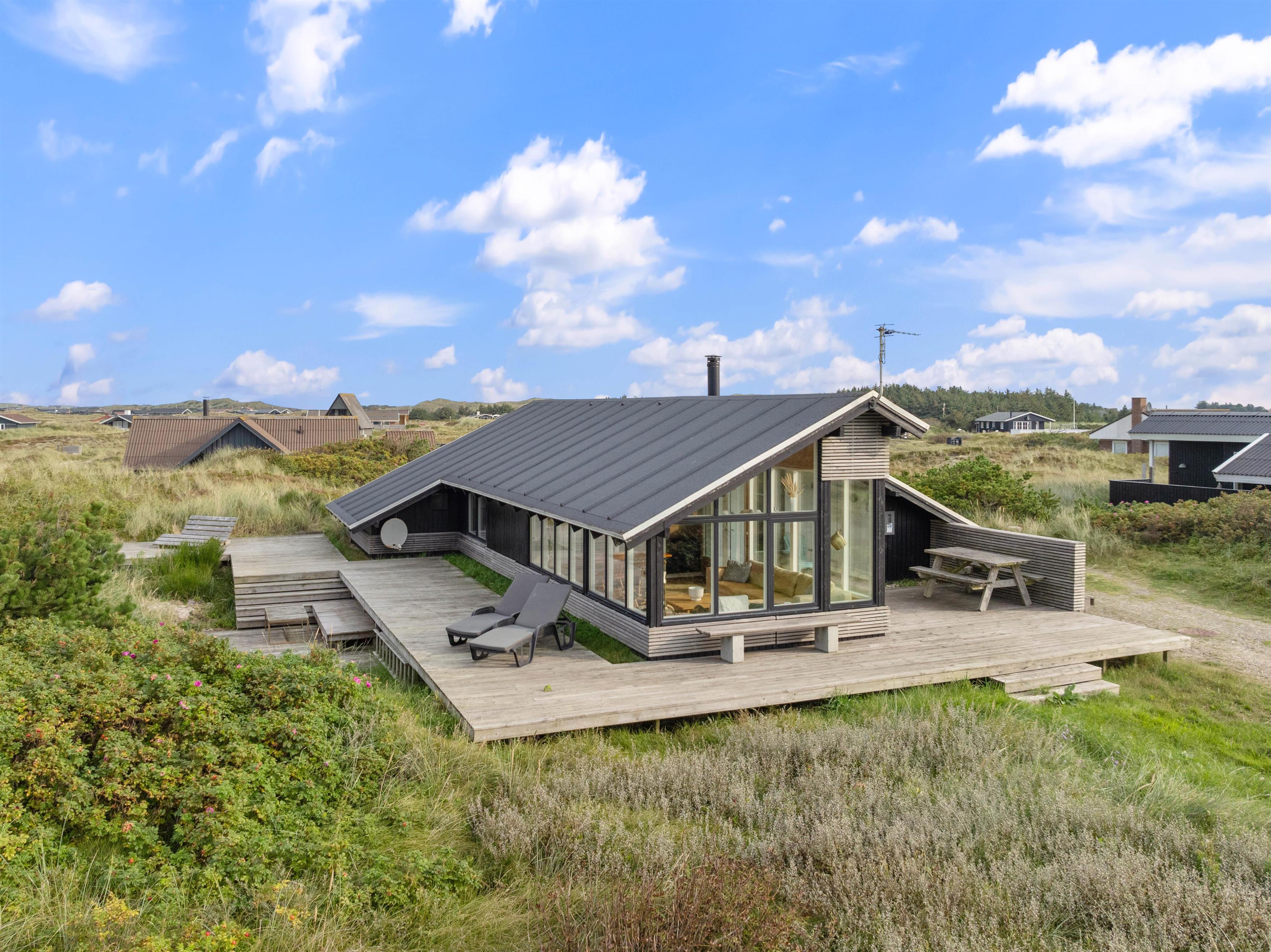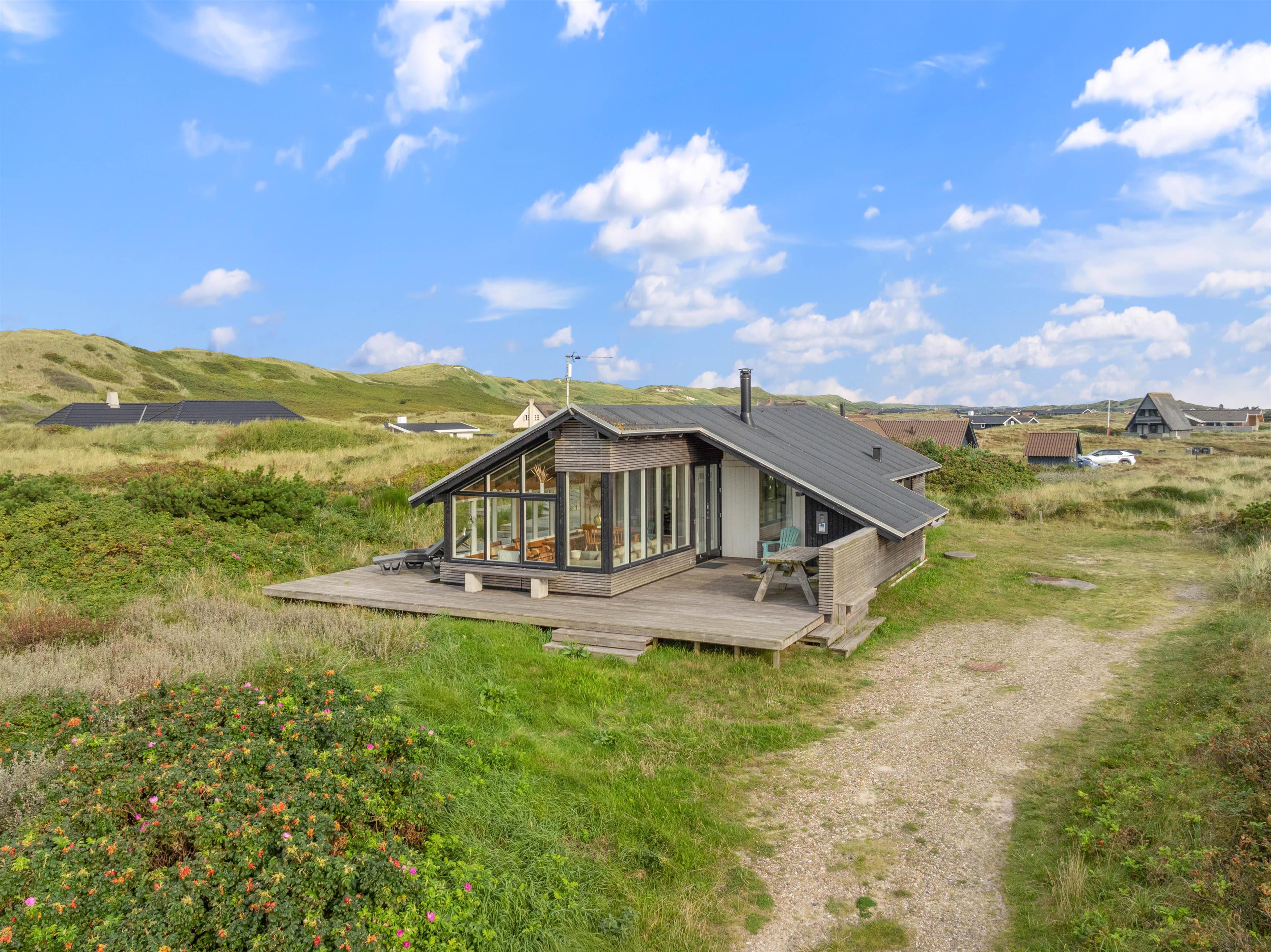 The summer house enjoys a fantastic position in the unique landscape of the Danish West Coast, just 200 metres from the beach. Along the miles of sandy shoreline, families can collect stones and shells, search for amber, or enjoy swimming in the sea.