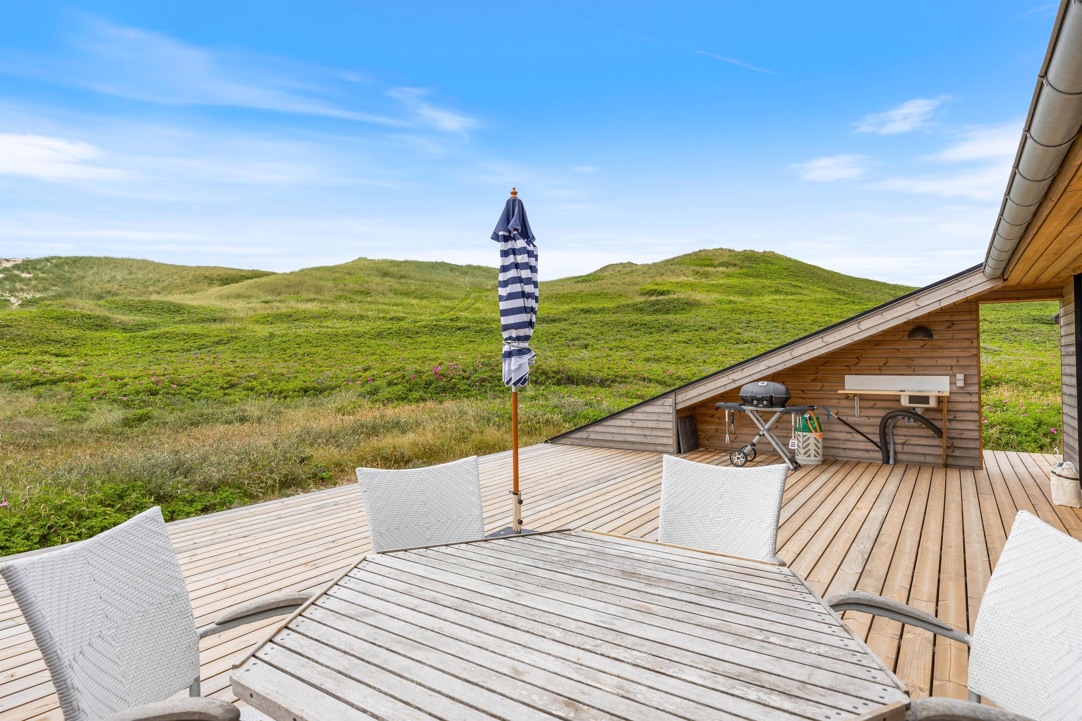 The holiday home is situated only 100 metres from the coast, allowing you to reach the beach quickly on foot. Enjoy the fresh sea air, take extended walks along the water's edge and let your cares drift away. The holiday home's location offers excellent opportunities for numerous outdoor activities, including water sports, cycling, and walking.