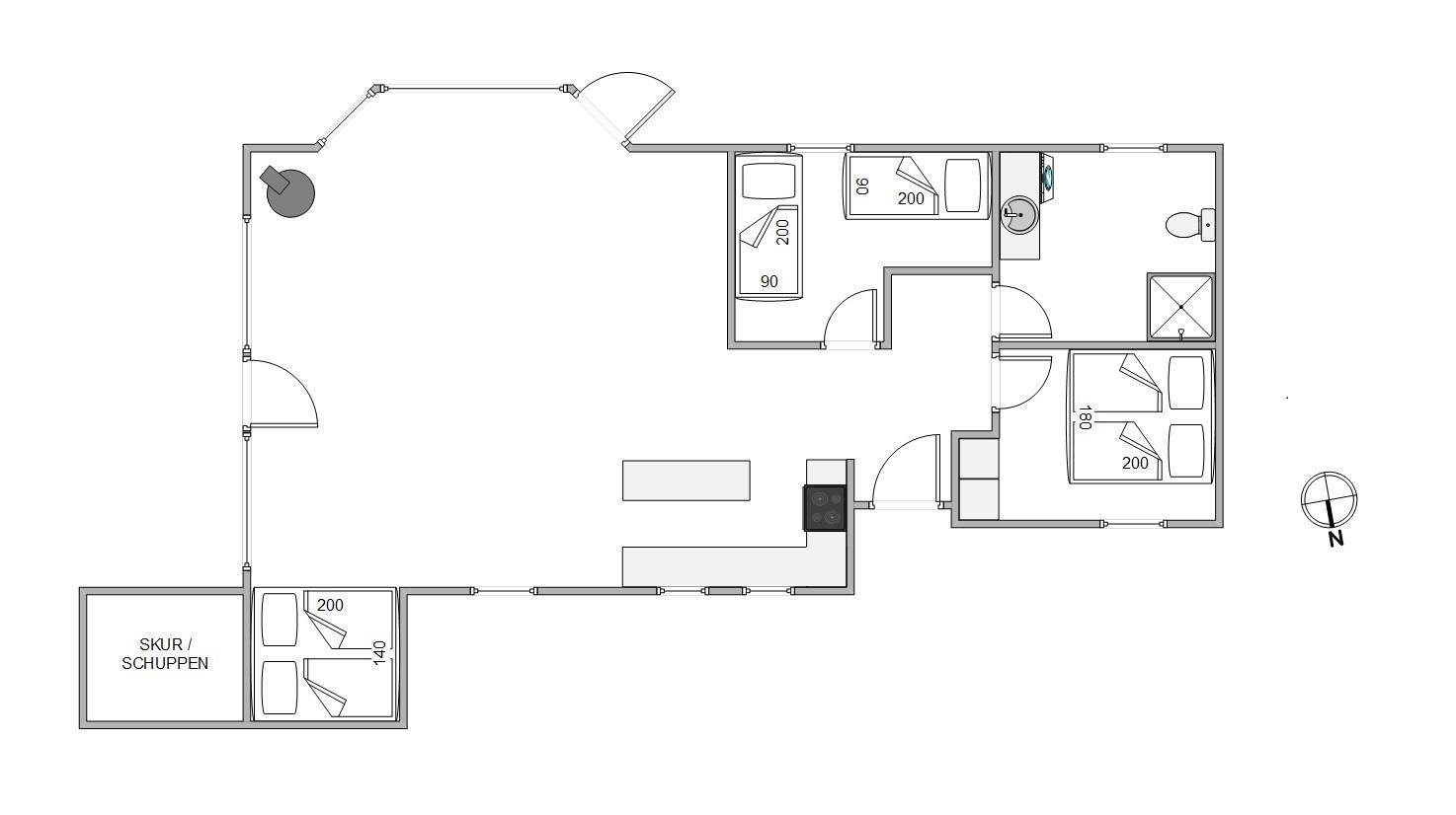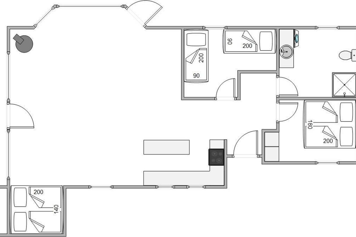 The two bedrooms each feature a double bed and two single beds, while the living room includes an alcove with two additional sleeping spaces. The bathroom comes with underfloor heating and houses both a washing machine and tumble dryer. The holiday home is heated by an energy-efficient heat pump, ensuring comfortable warmth throughout. For extra cosiness, light up the wood-burning stove, which creates a wonderful atmosphere.