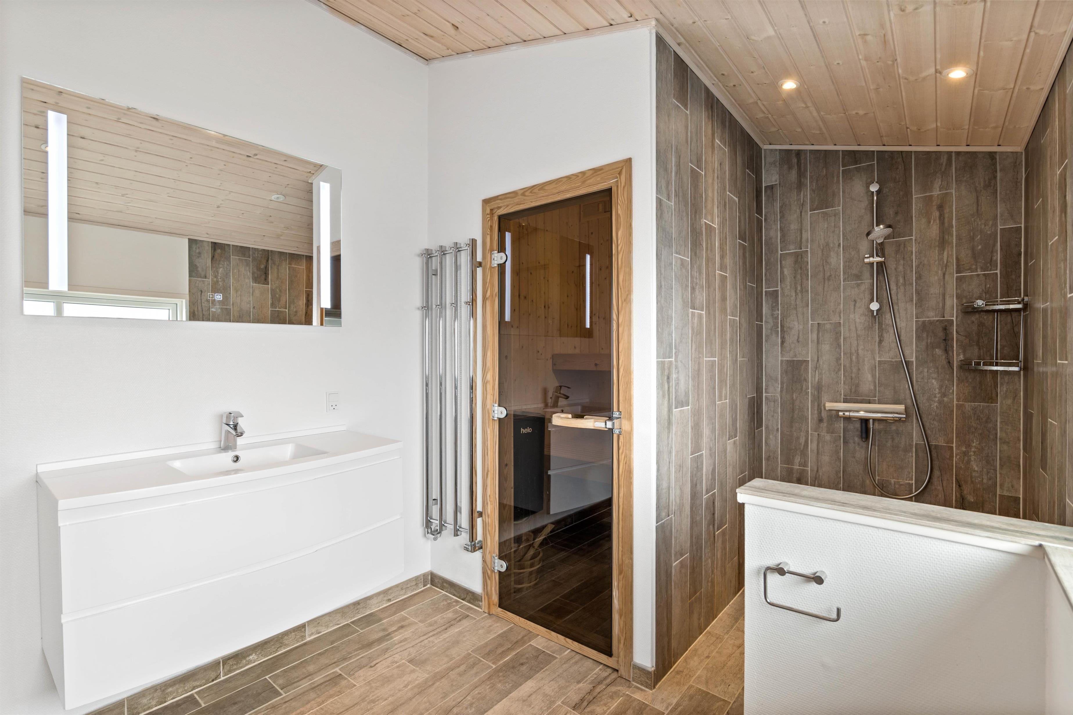This luxury holiday home at Tingodden 397 offers four spacious bedrooms with direct bathroom access, one featuring a sauna. All bathrooms are equipped with underfloor heating, so there's no need to queue for the facilities.