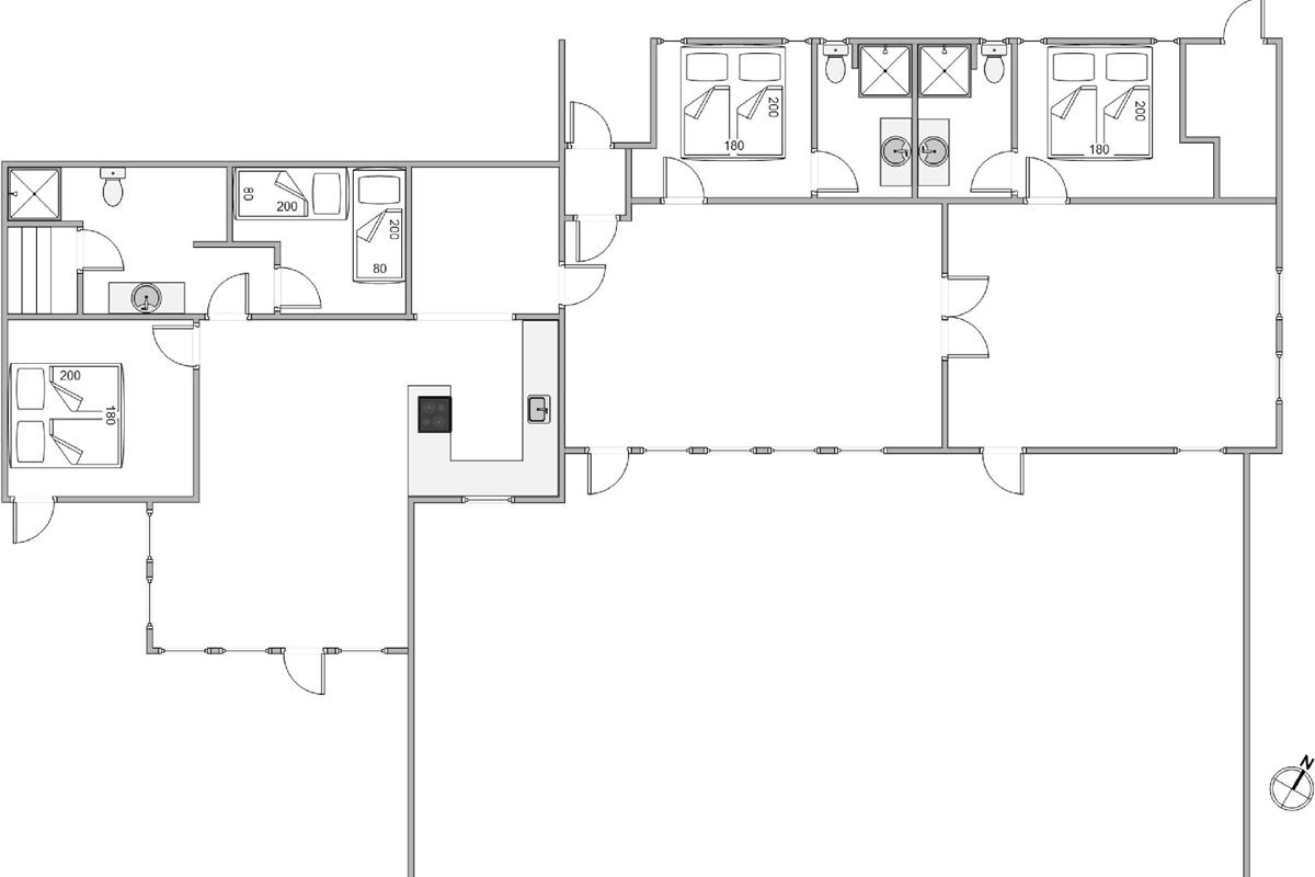 The holiday home stands out for its unique location and fantastic wooden terraces. Both open and covered terraces are available, allowing outdoor living throughout the day – from eastern sunrise with coffee in hand to western sunset whilst the barbecue prepares dinner and you reflect on the day's experiences together.