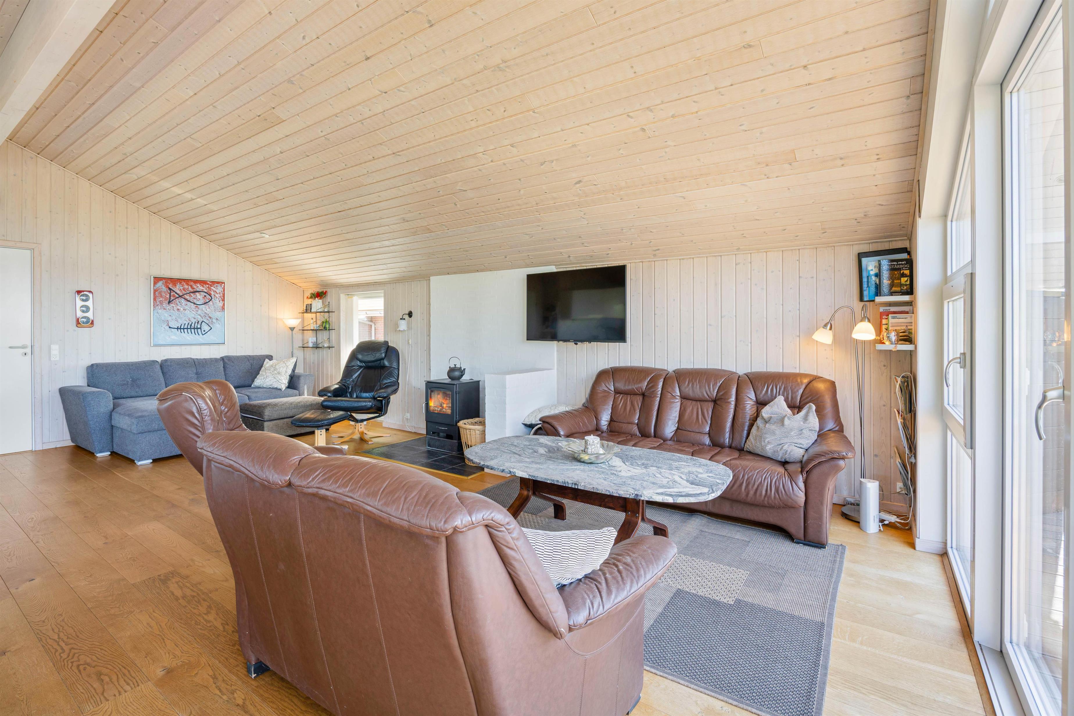 In diesem traditionellen Ferienhaus in Årgab fühlt ihr euch sofort im Urlaub. Der behagliche Kaminofen sorgt nicht nur für eine wohlige Atmosphäre an kühleren Abenden, sondern lädt auch zu gemütlichen Stunden bei einem guten Buch oder einem Glas Wein ein. Macht es euch auf den komfortablen Polstermöbeln bequem und genießt die Ferienhausstimmung. Kulinarische Abenteuer könnt ihr in der vollausgestatteten Küche mit Spülmaschine erleben. Vorräte oder frischgeangelten Fisch könnt ihr in einem 80L separaten Gefrierschrank sicher aufbewahren. Der Haushalt wird durch die im Ferienhaus verfügbare Waschmaschine und Trockner wesentlich erleichtert, so dass ihr euch ausschließlich auf das Entspannen konzentrieren könnt.