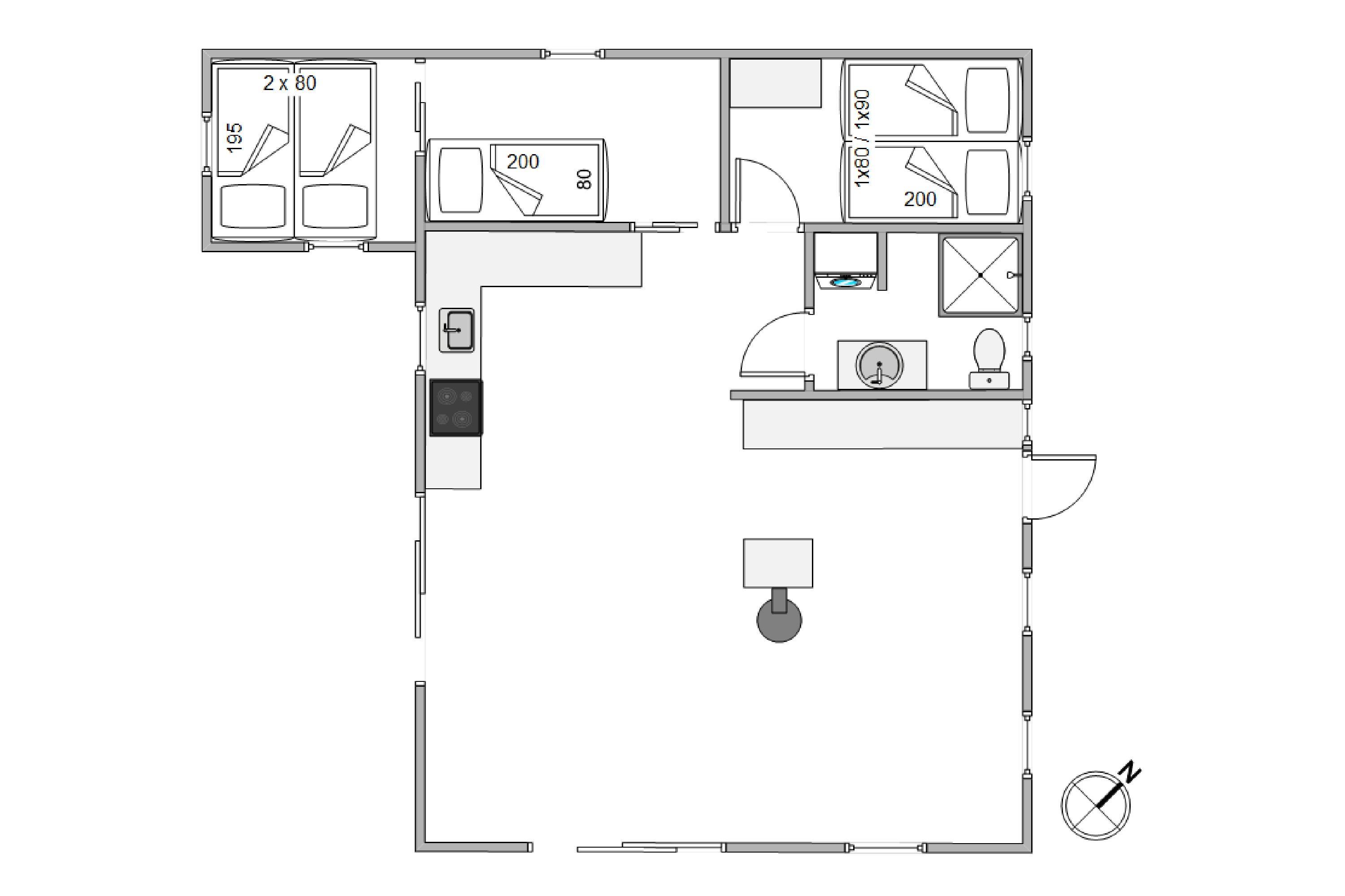 The heart of the house is the open-plan space combining the living room, dining area and kitchen. You'll find a dishwasher for convenience, while the wood-burning stove ensures comfortable temperatures and a wonderful holiday atmosphere throughout the year. The living room also features underfloor heating to keep your feet warm.