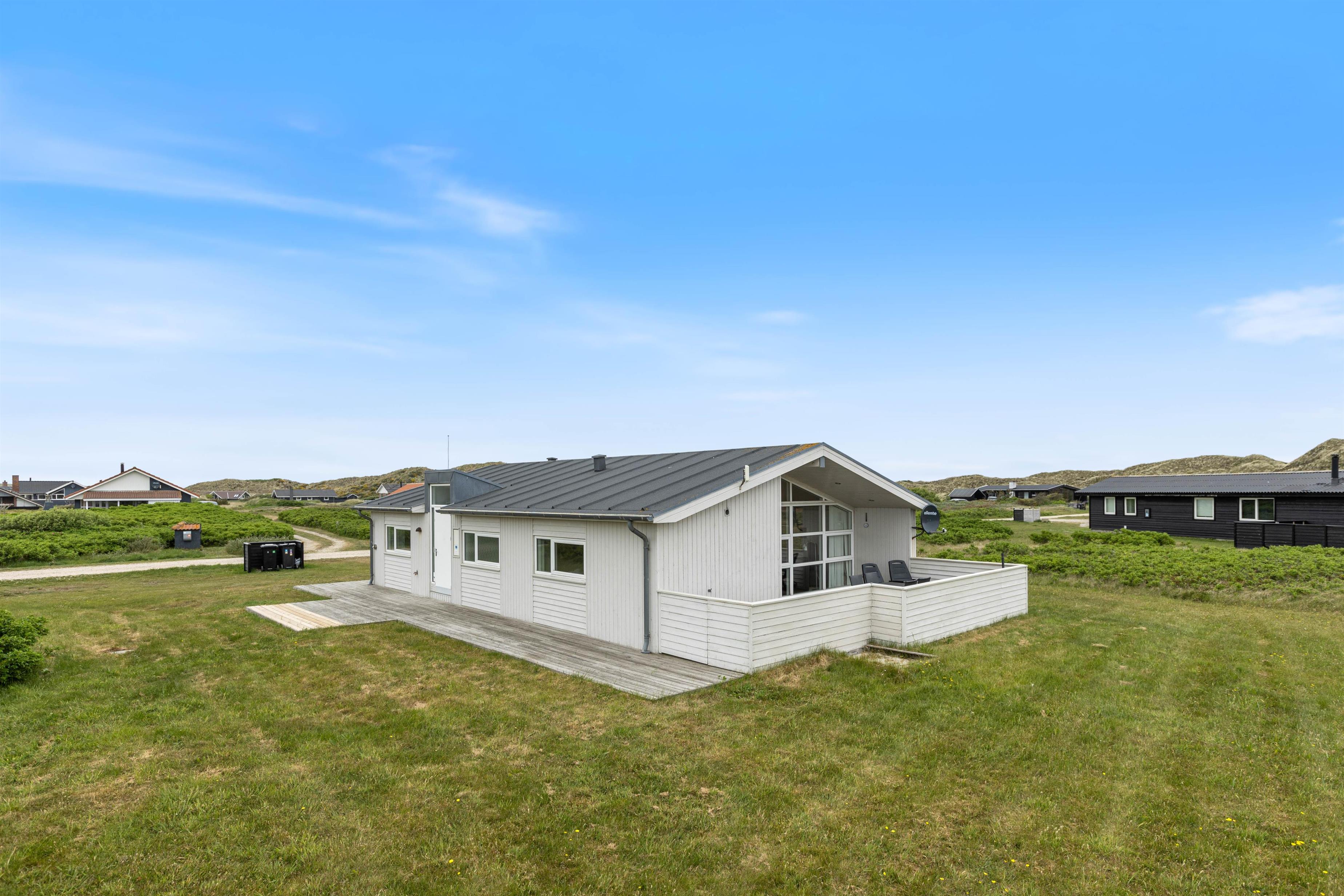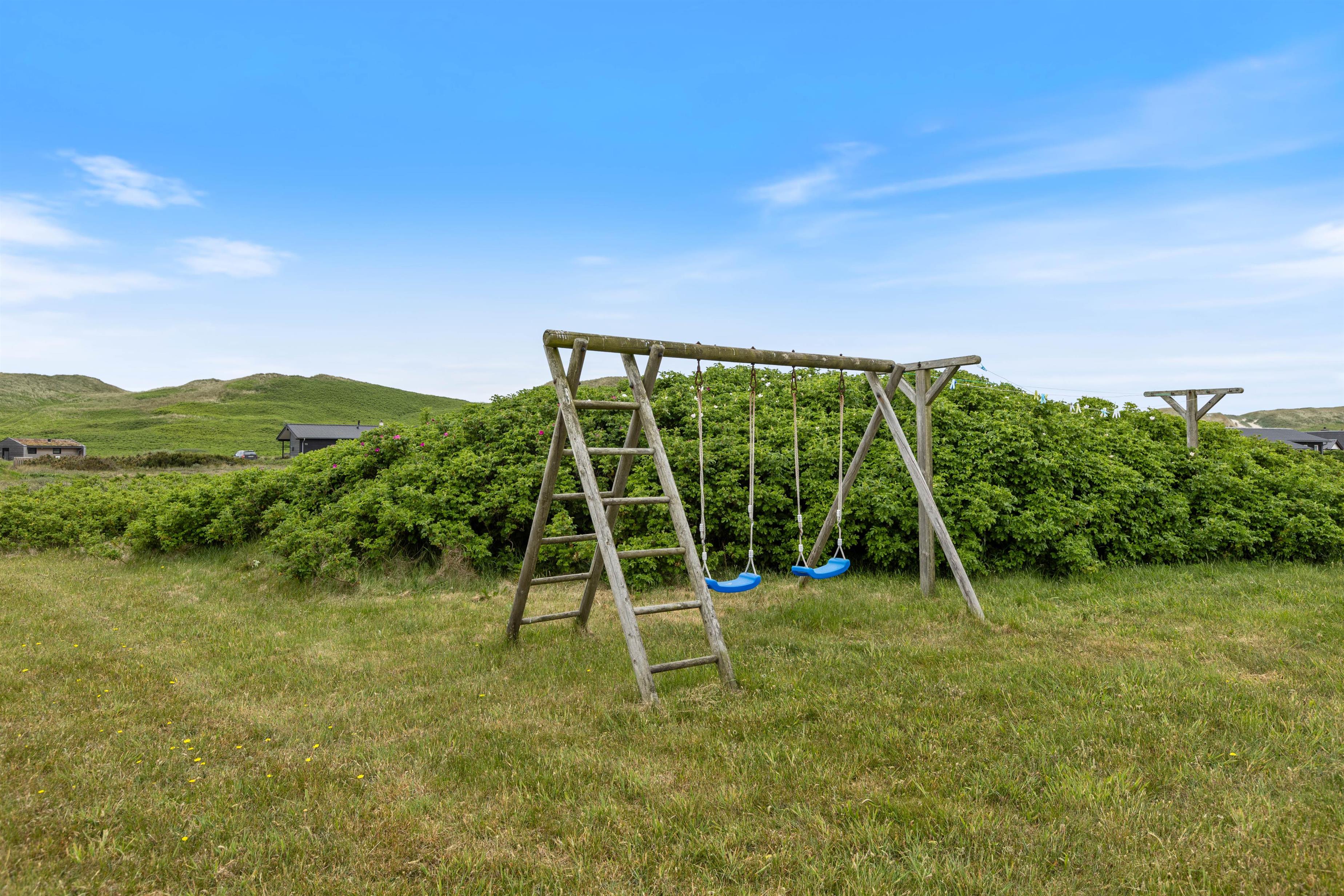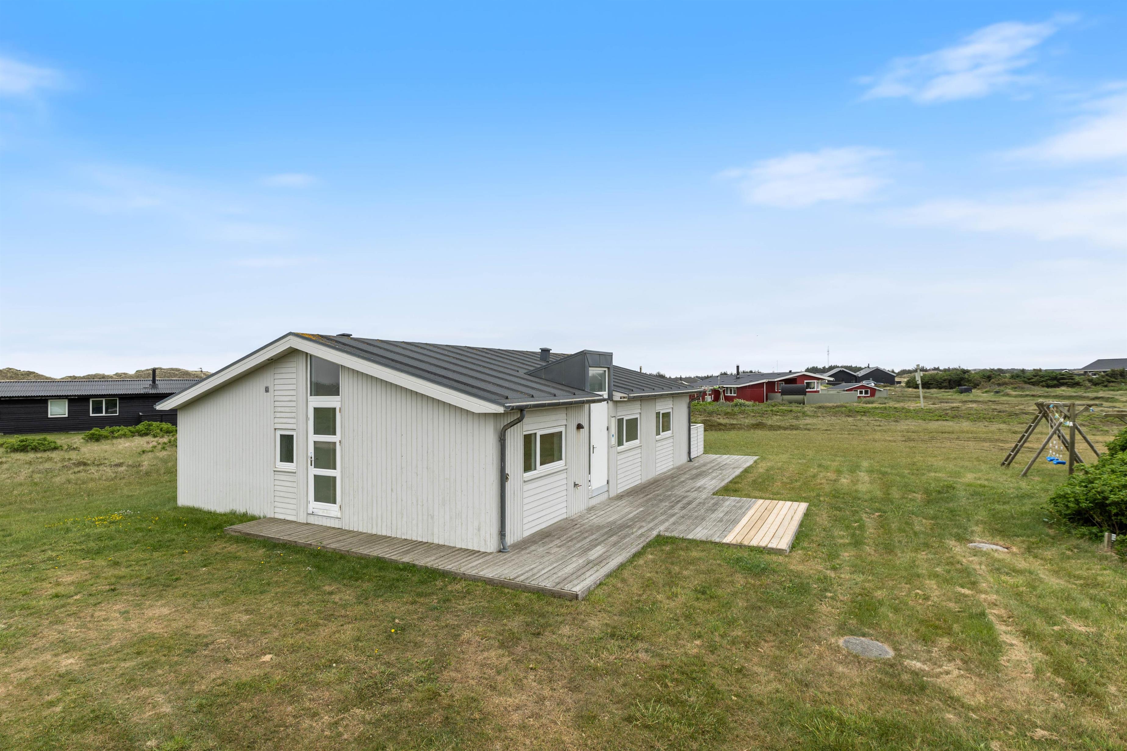 This attractive and welcoming holiday home sits on a large lawn in Årgab, just minutes south of Hvide Sande. The beautiful sandy beach and North Sea are only 250 metres away. During summer, you can buy groceries and fresh bread at the nearby campsite, just a few hundred metres from the house. Children can play football on the spacious lawn, complete with goals. There's also a swing and sandpit for younger children.