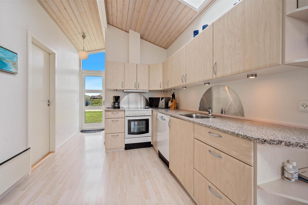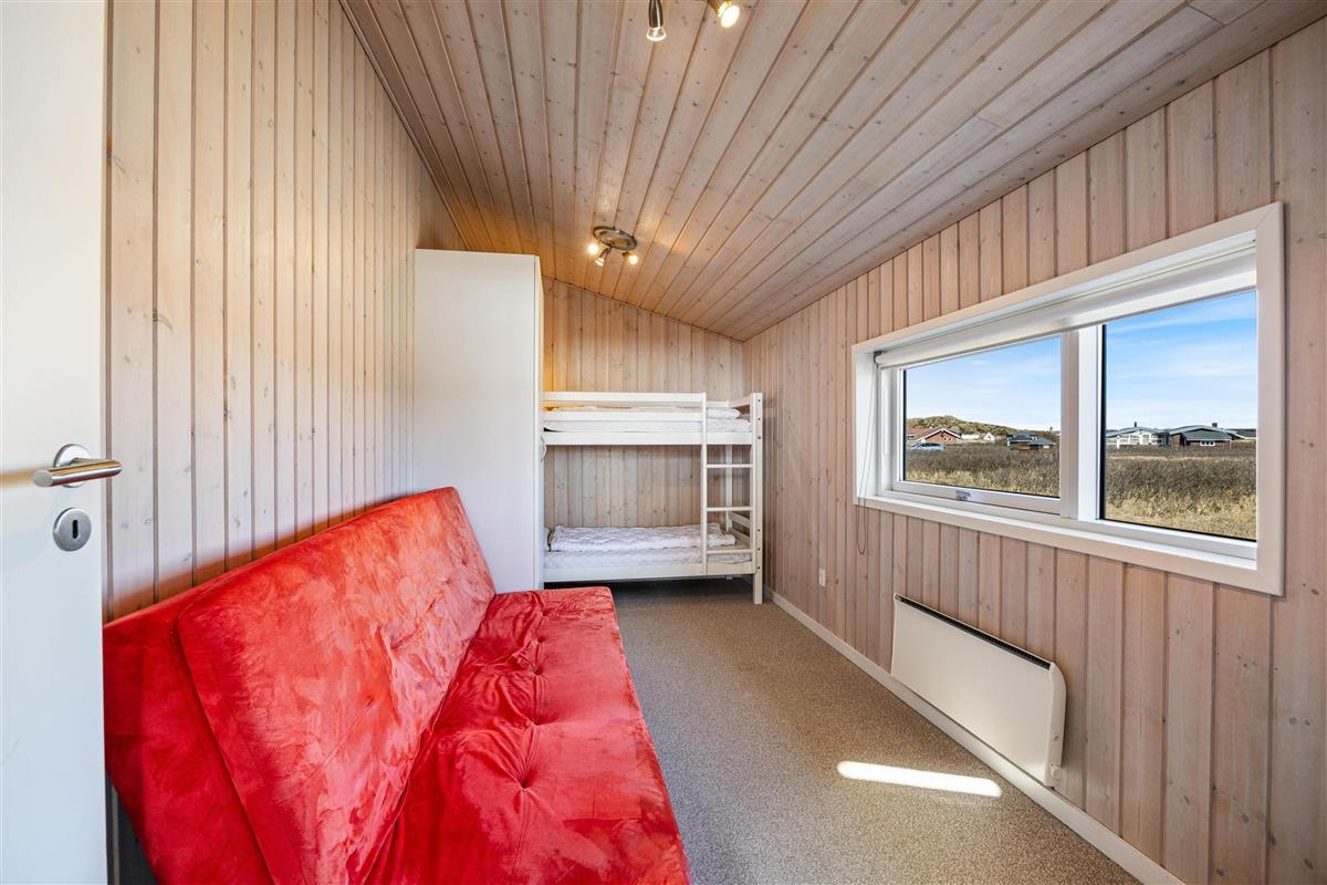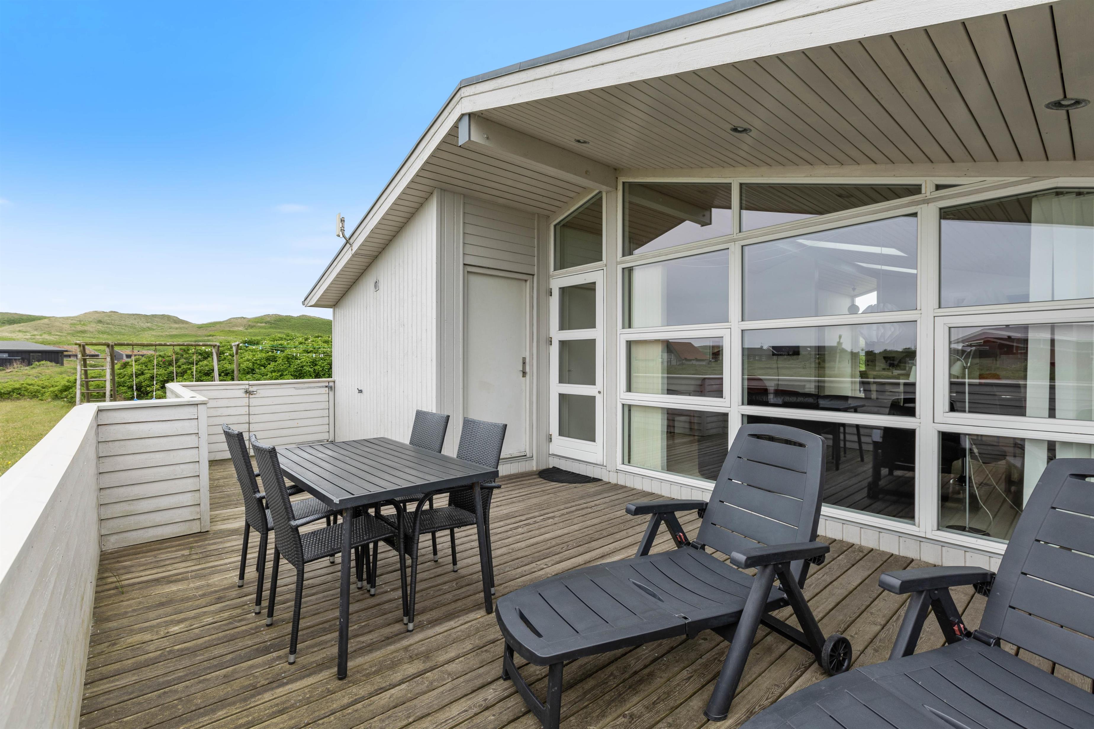 This attractive and welcoming holiday home sits on a large lawn in Årgab, just minutes south of Hvide Sande. The beautiful sandy beach and North Sea are only 250 metres away. During summer, you can buy groceries and fresh bread at the nearby campsite, just a few hundred metres from the house. Children can play football on the spacious lawn, complete with goals. There's also a swing and sandpit for younger children.