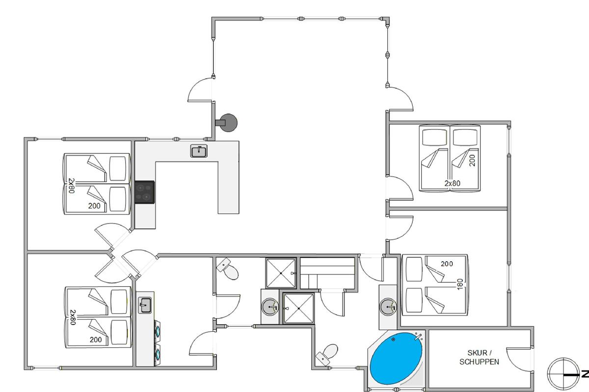 At Mettes Bjerg 12E, great care has been taken to ensure you can enjoy a restful holiday and wonderful escape from busy everyday life. The 118 square metres offer beautiful furnishings with light wooden elements that make the surroundings even more inviting, and this spacious house accommodates up to 8 people.