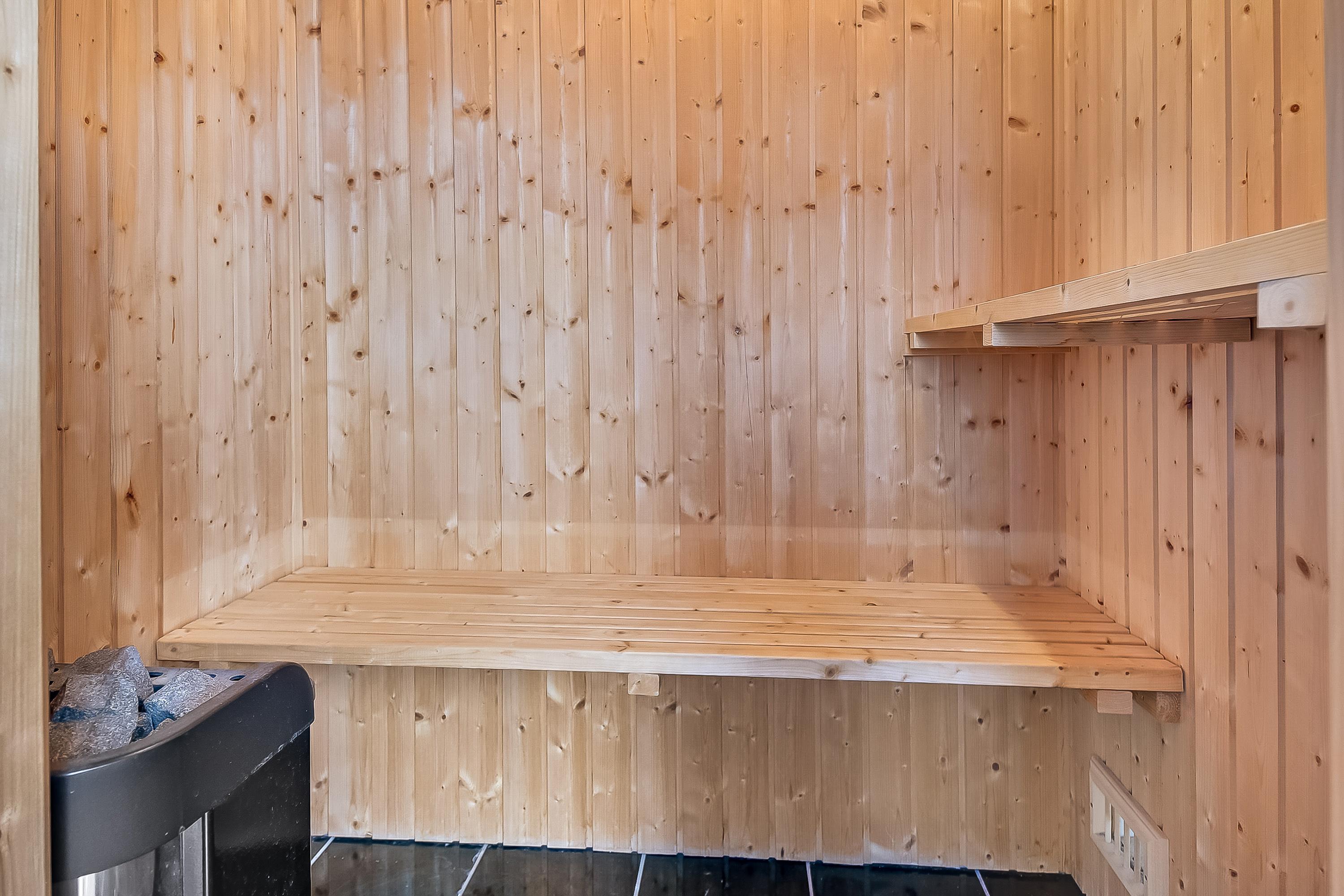 For your well-deserved holiday, the house reveals another wellness secret: the larger of the 2 bathrooms features both a hot tub and sauna. After an eventful day, unwind in the warm water or sauna to restore your energy. Round off the evening with a glass of red wine by the wood-burning stove before heading to bed.