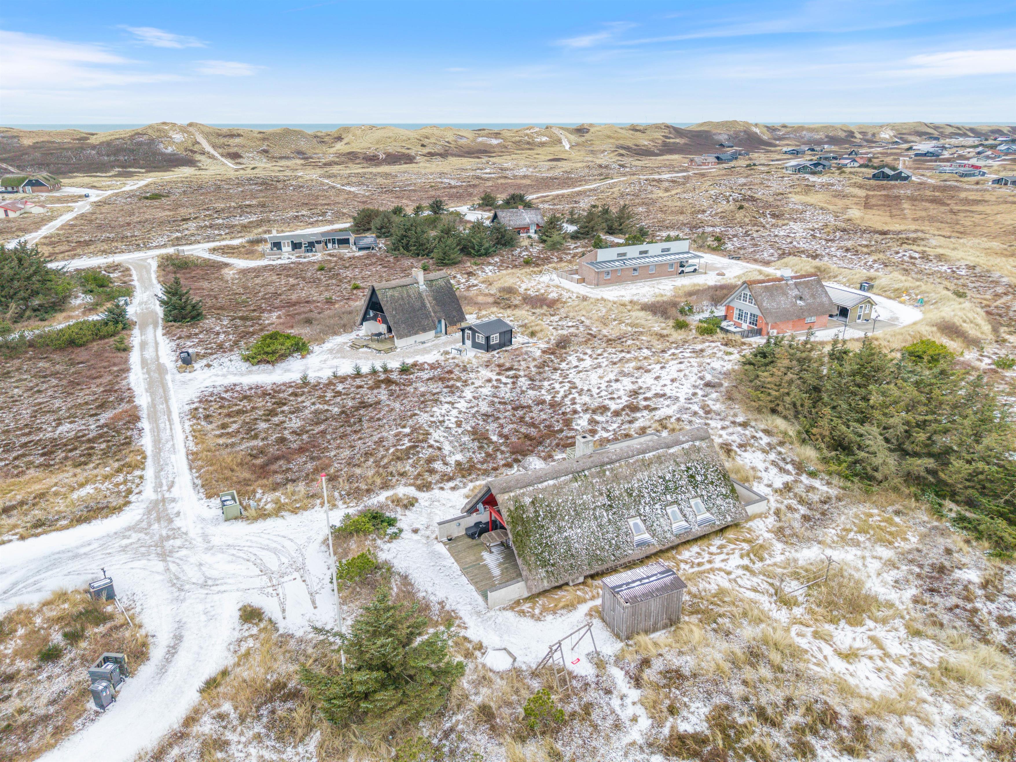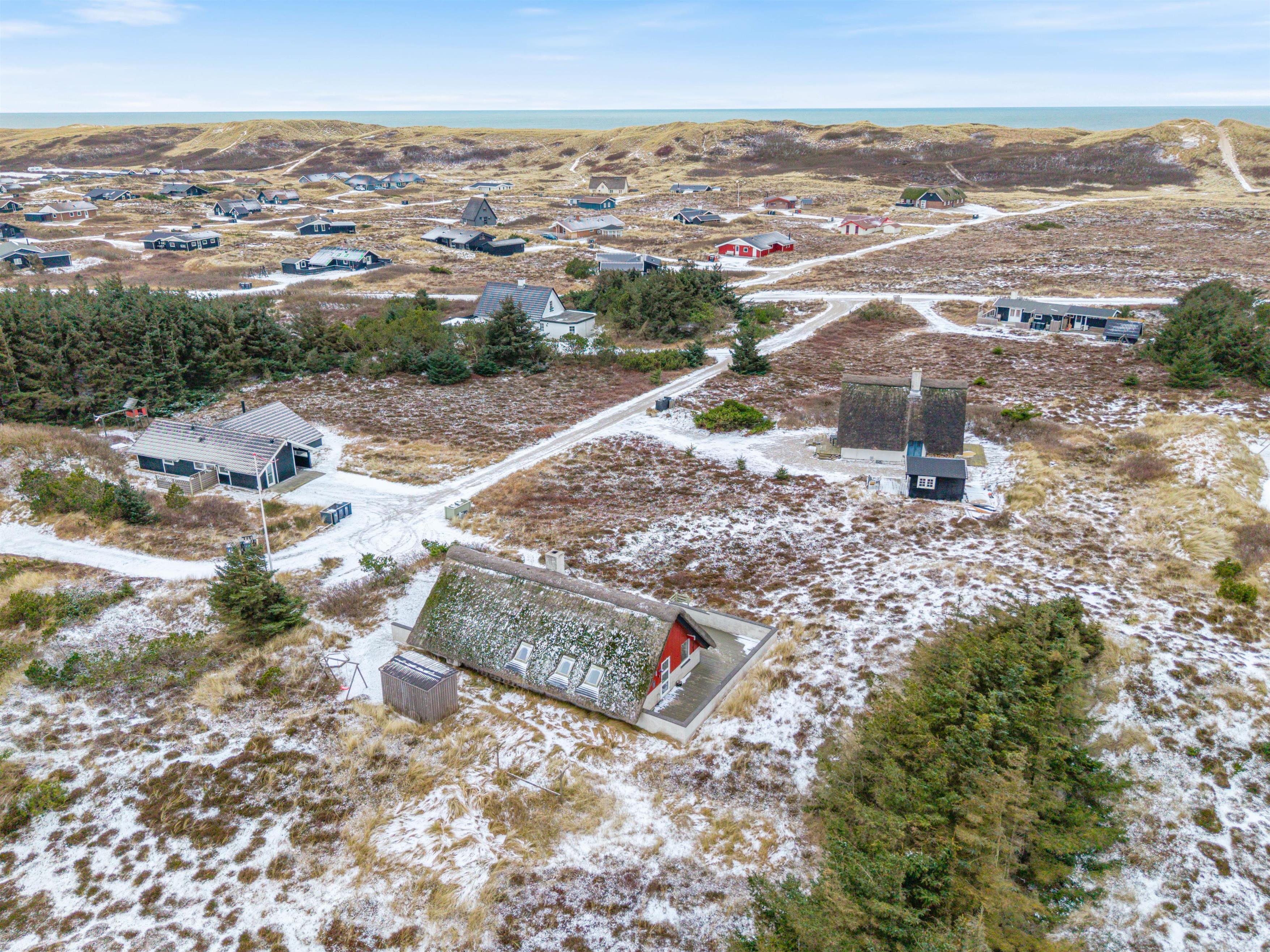 Fra terrassen kan I nyde synet af klitterne og den lyngklædte grund, da sommerhuset ligger på en natur- og klitgrund. Huset ligger med en passende afstand til de omkringliggende huse, så der er skærmet om jeres privatliv.