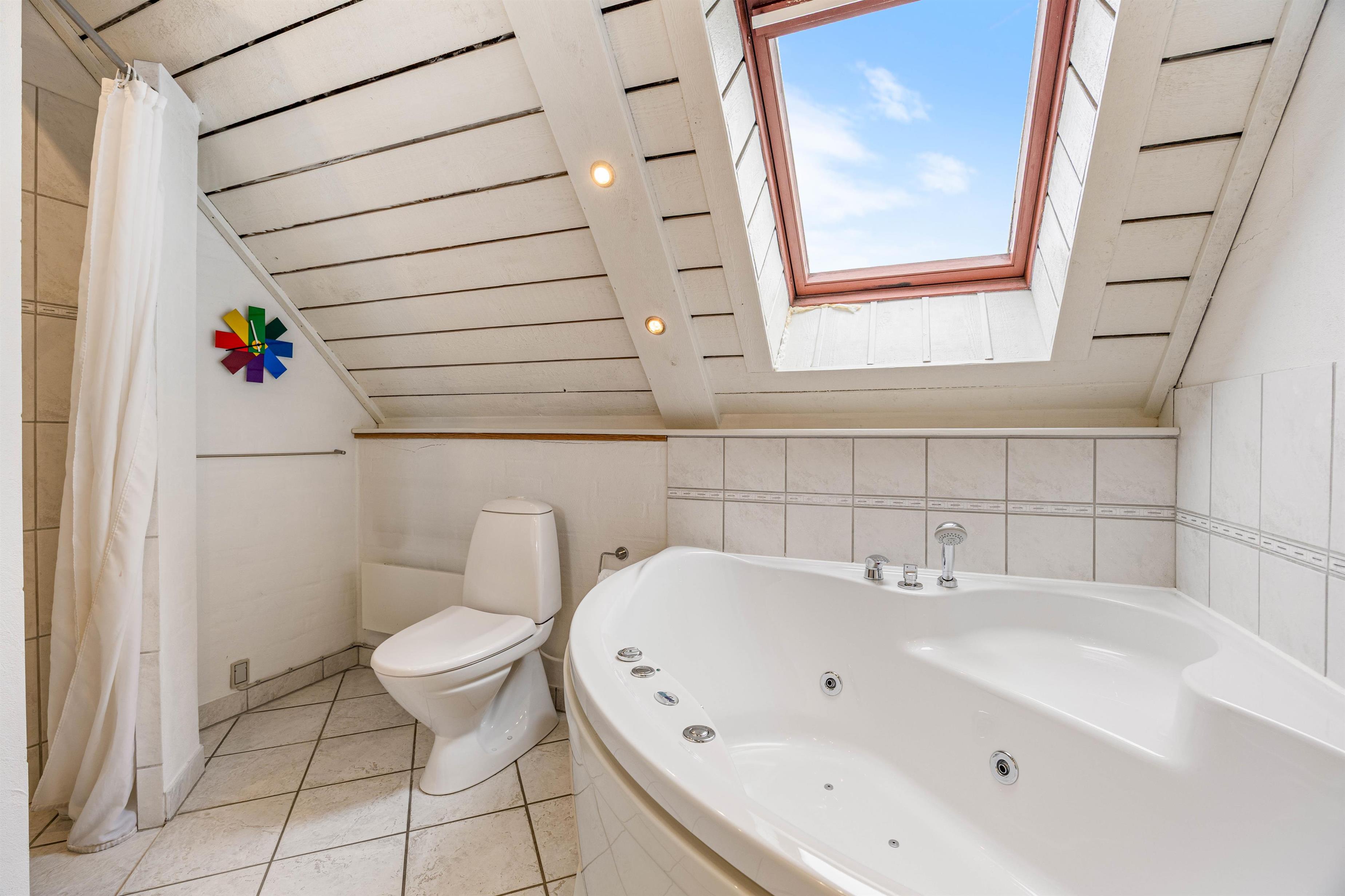 Til stuens fladskærms-TV er der både Chromecast og Apple TV, så I har mulighed for at streame de film og serier, I ønsker – perfekt til fede filmaftener. Lænestolen er det perfekte sted at slå sig ned med sin morgenkaffe, da man herfra kan nyde den varmen fra brændeovnen. Udover varmen fra brændeovnen er der også en luft til luft varmepumpe i huset, som hjælper med at fordele varmen rundt i huset. Badeværelset i huset har gulvvarme, så dagen kan starte lunt og godt.