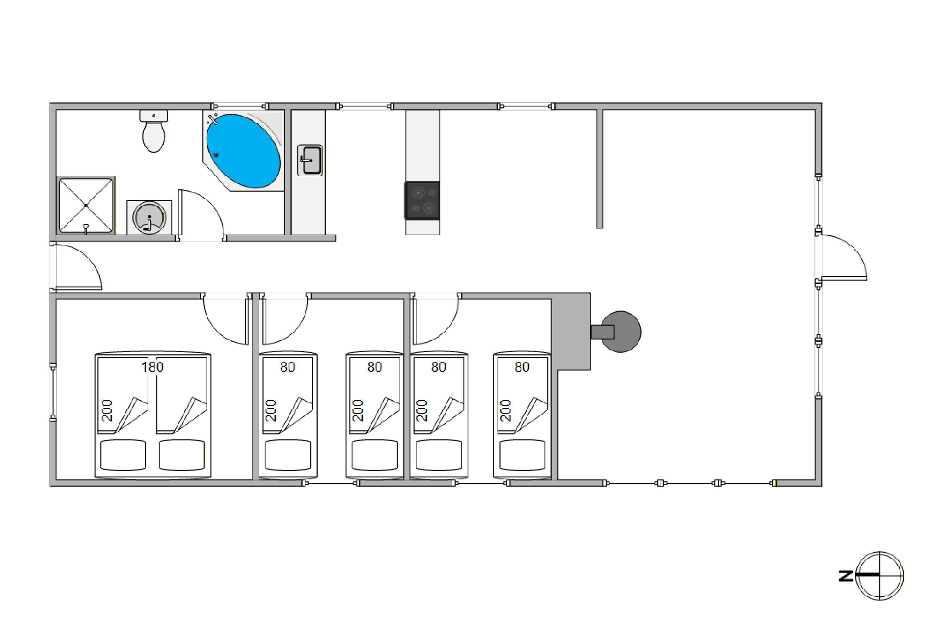 I sommerhuset er der plads til 6 personer. Sovepladserne er fordelt på 3 soverum, 1 med en dobbeltseng og 2 med enkeltsenge. Og I kan medbringe jeres firbenede venner – her i huset er op til 2 husdyr .