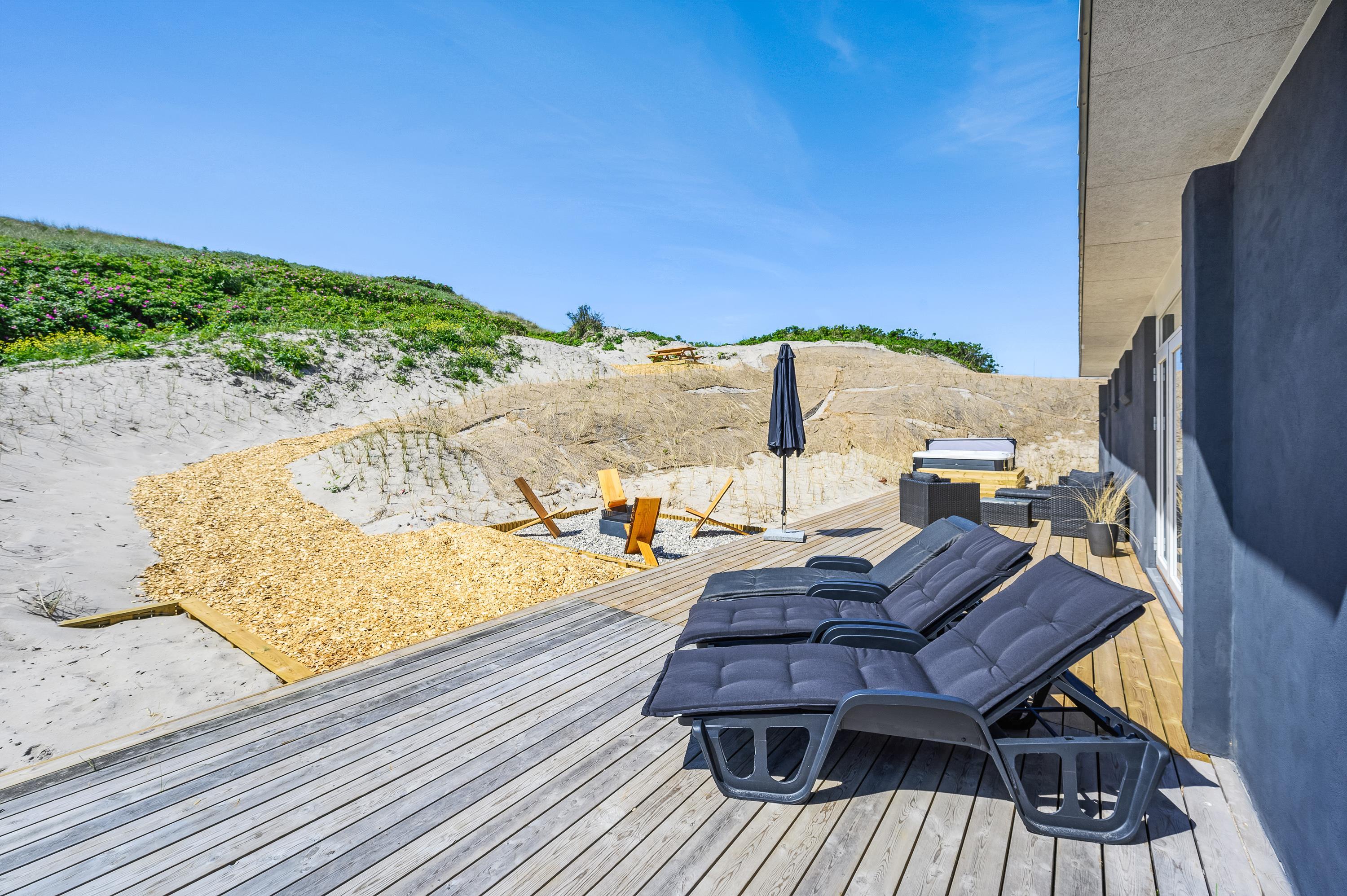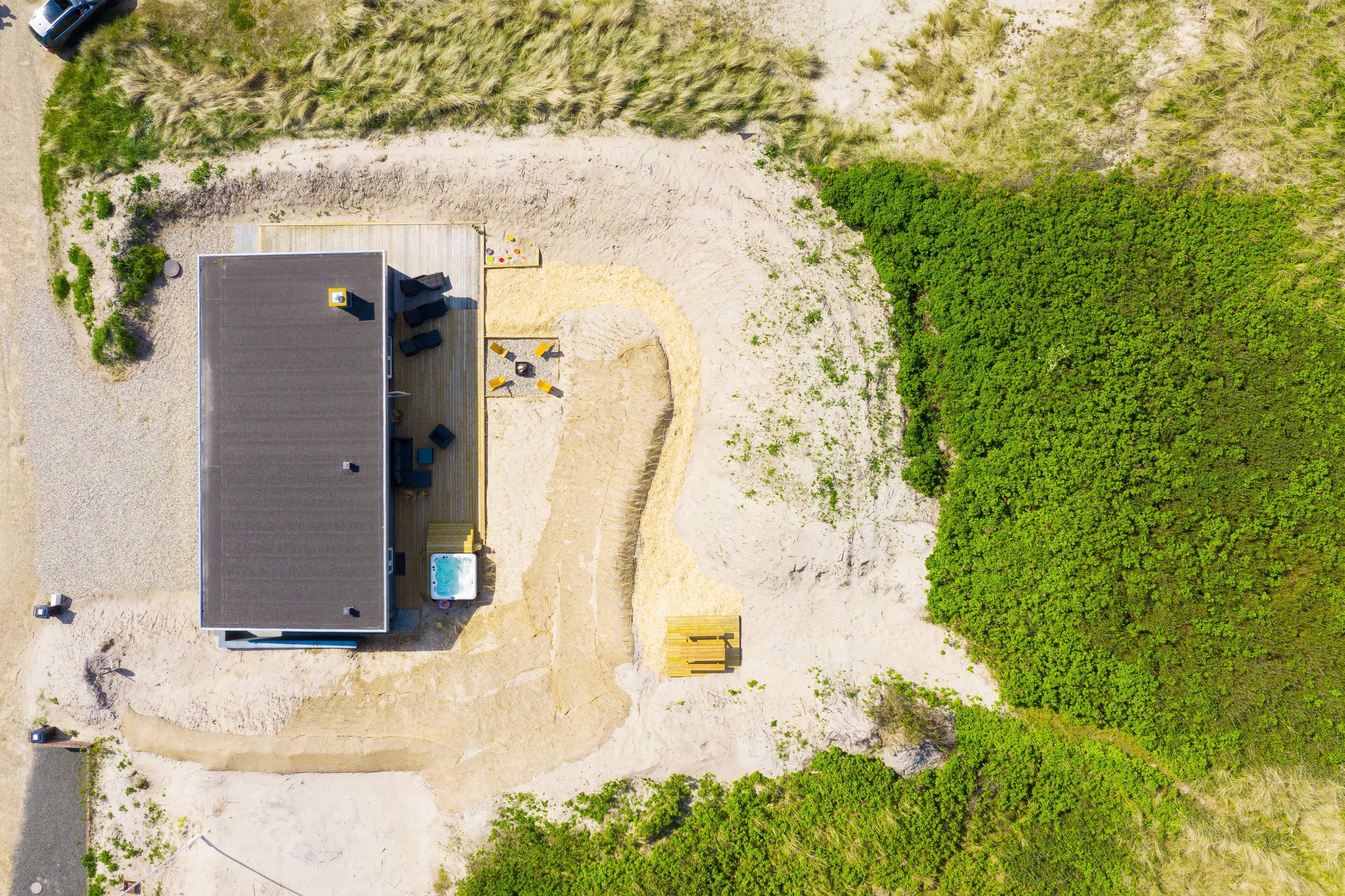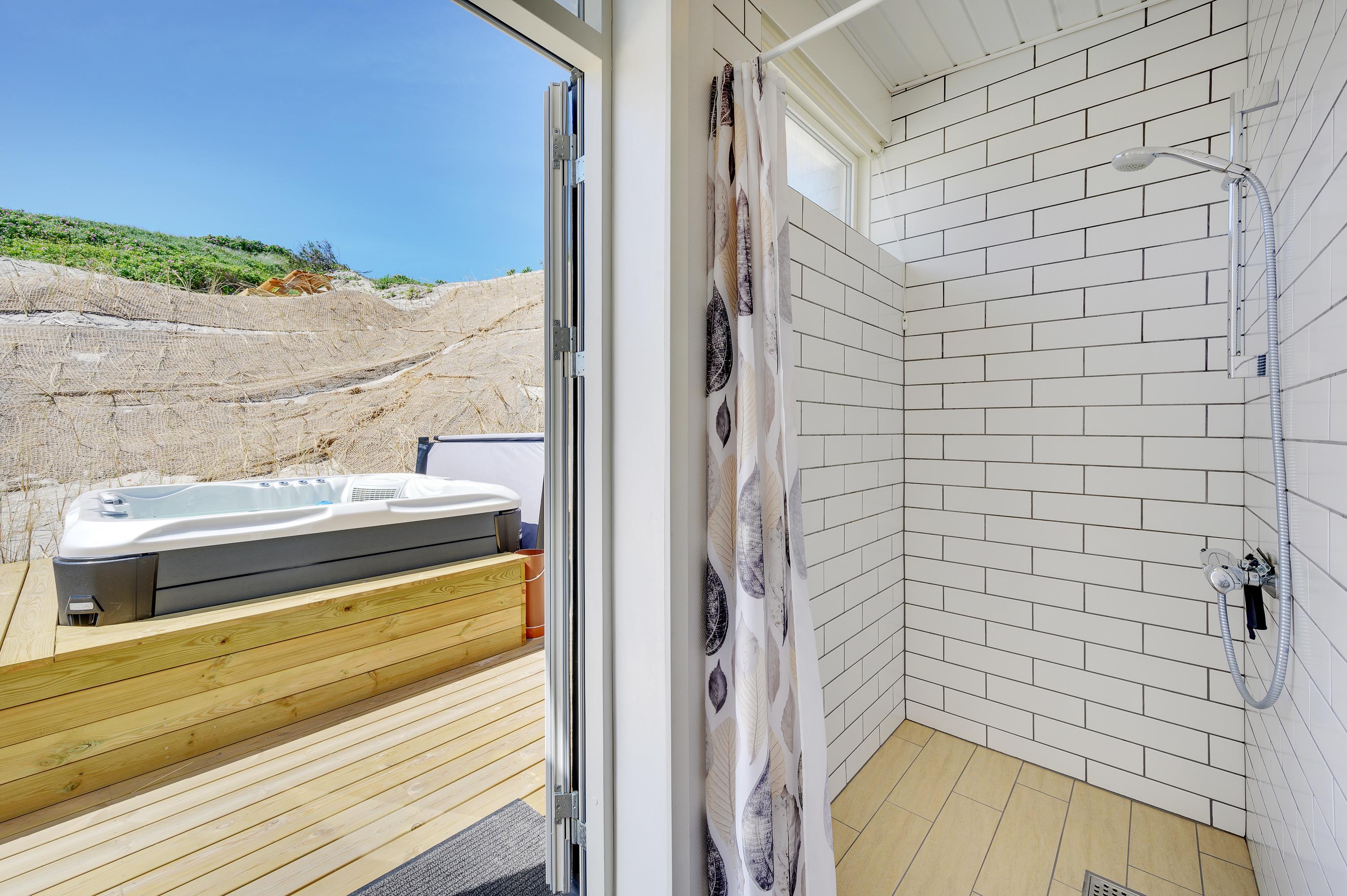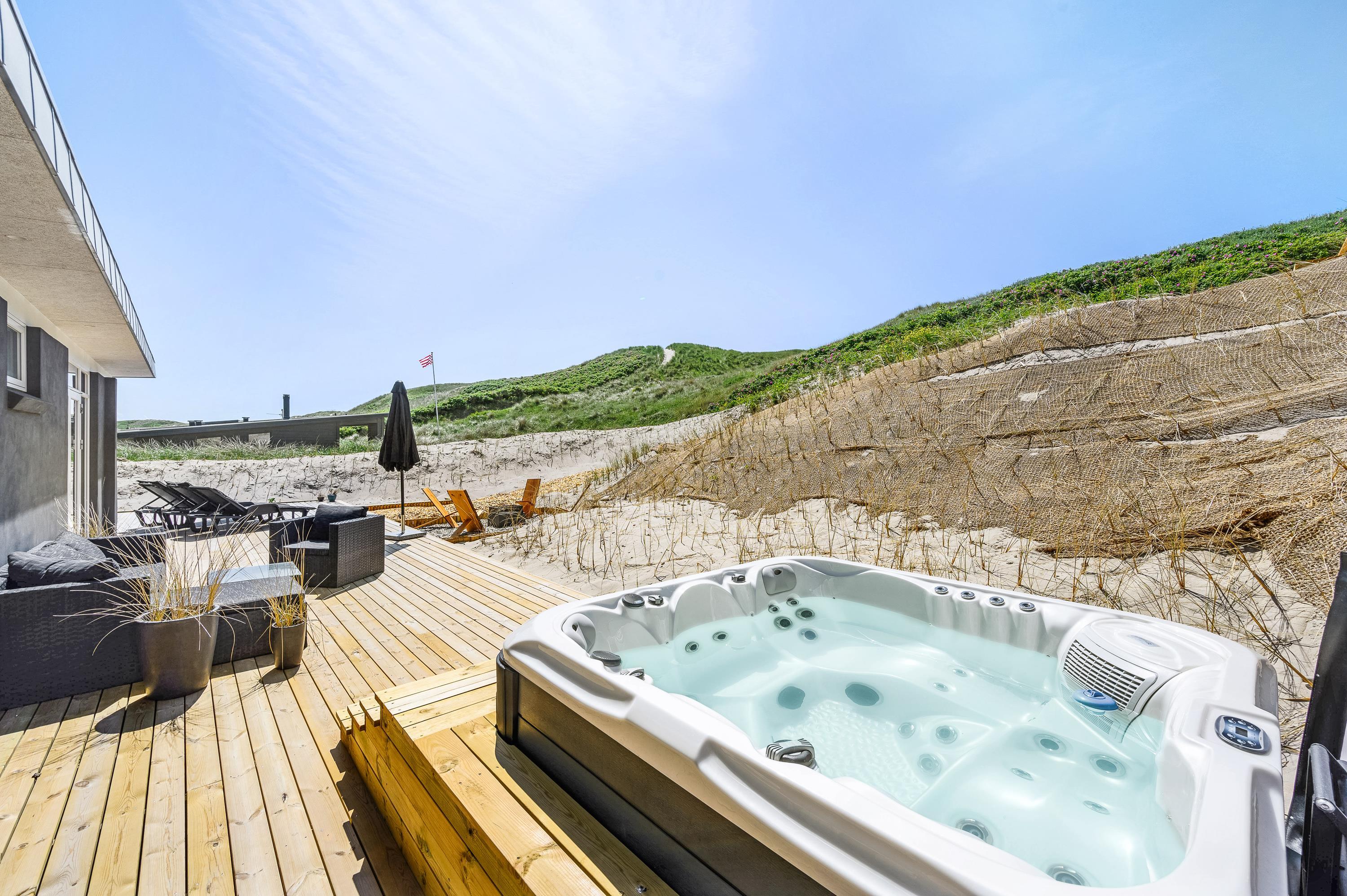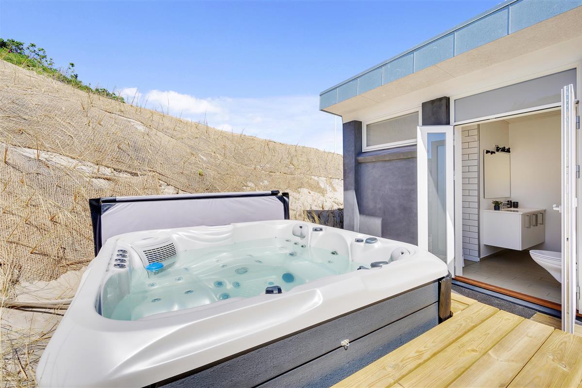 The wonderful south-west facing wooden terrace is accessed directly from the living area. You'll also find an outdoor hot tub with direct access from the bathroom, perfect for relaxing wellness evenings under the stars. Thanks to its unique location on a natural plot right by the dunes, you can enjoy uninterrupted views of the beautiful dune landscape while listening to the sound of the sea.
