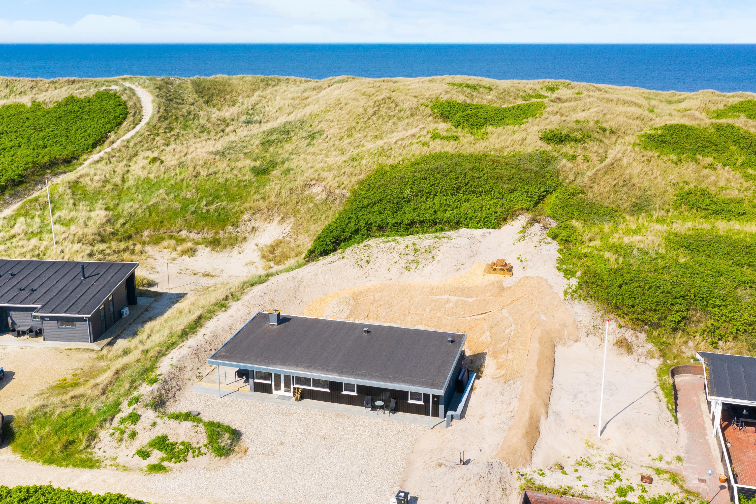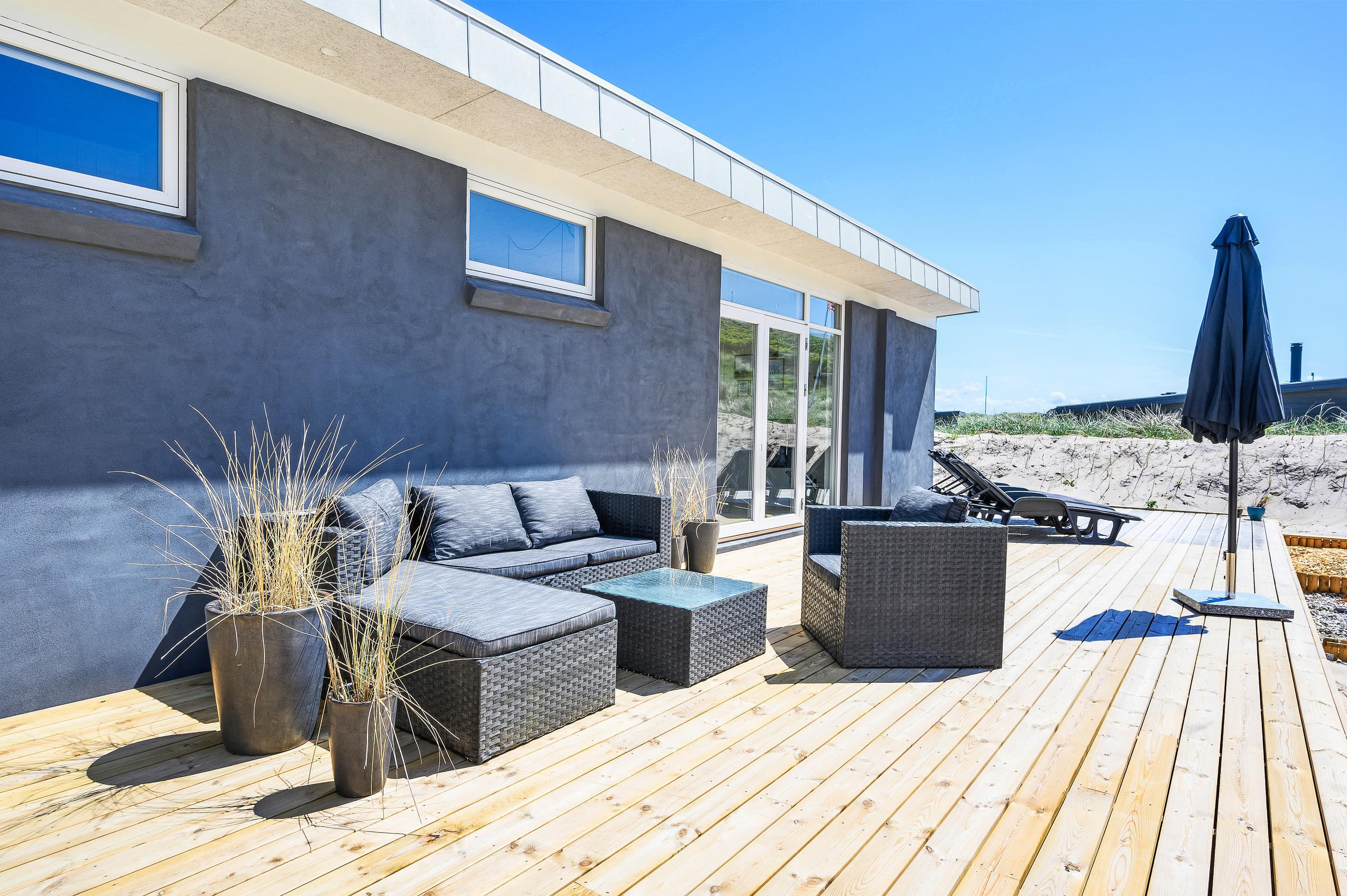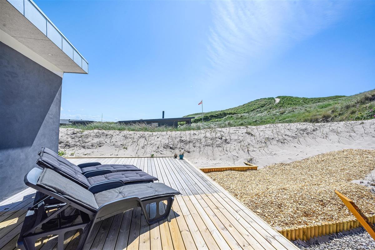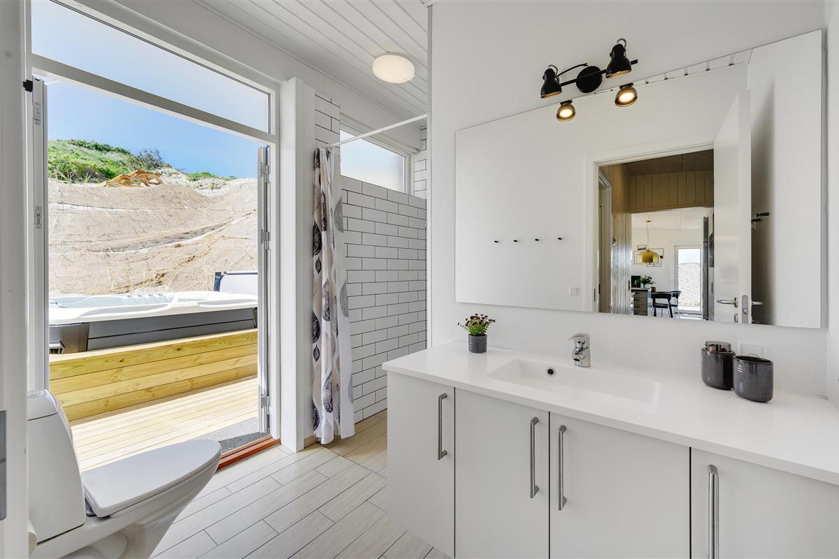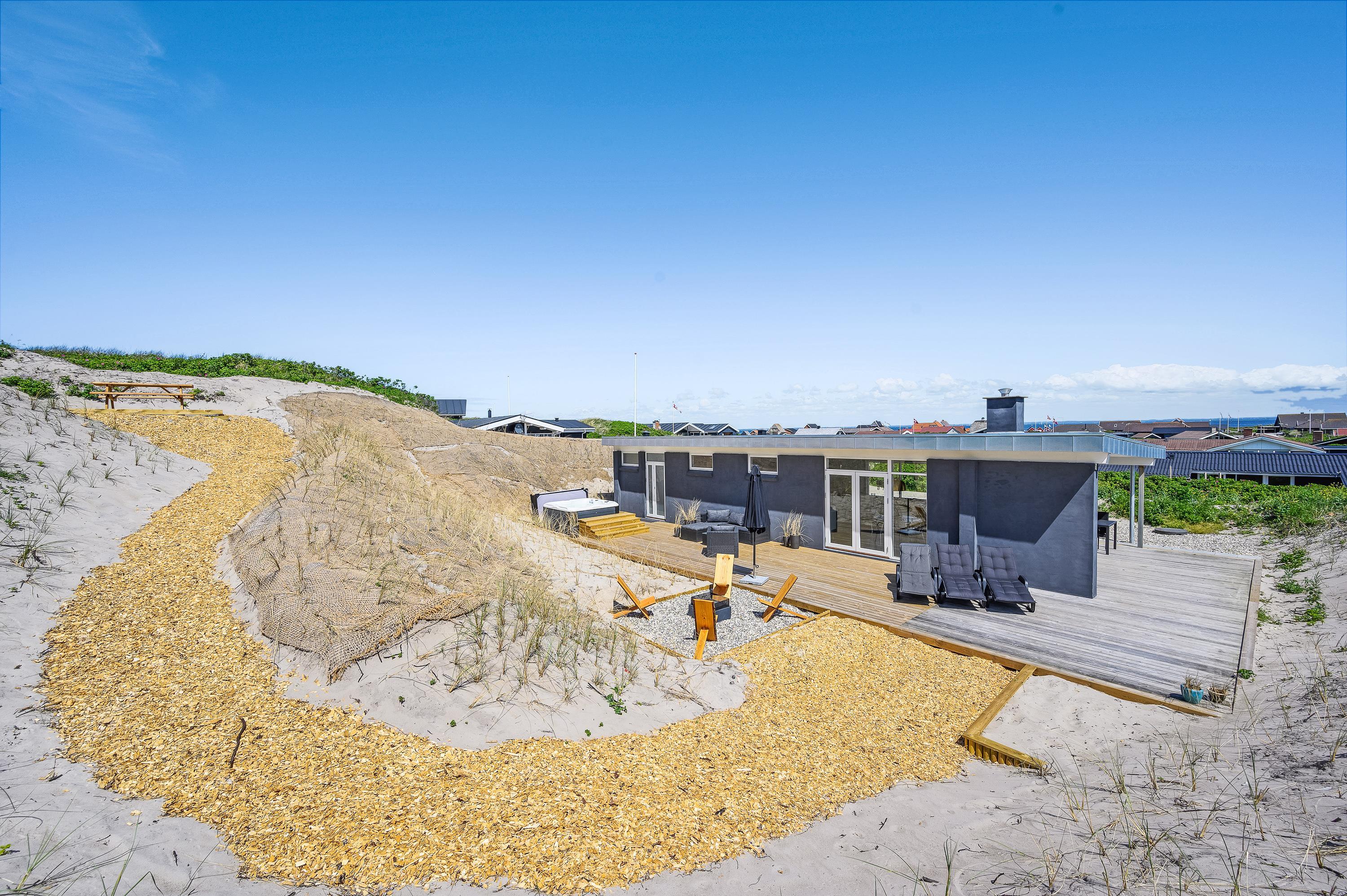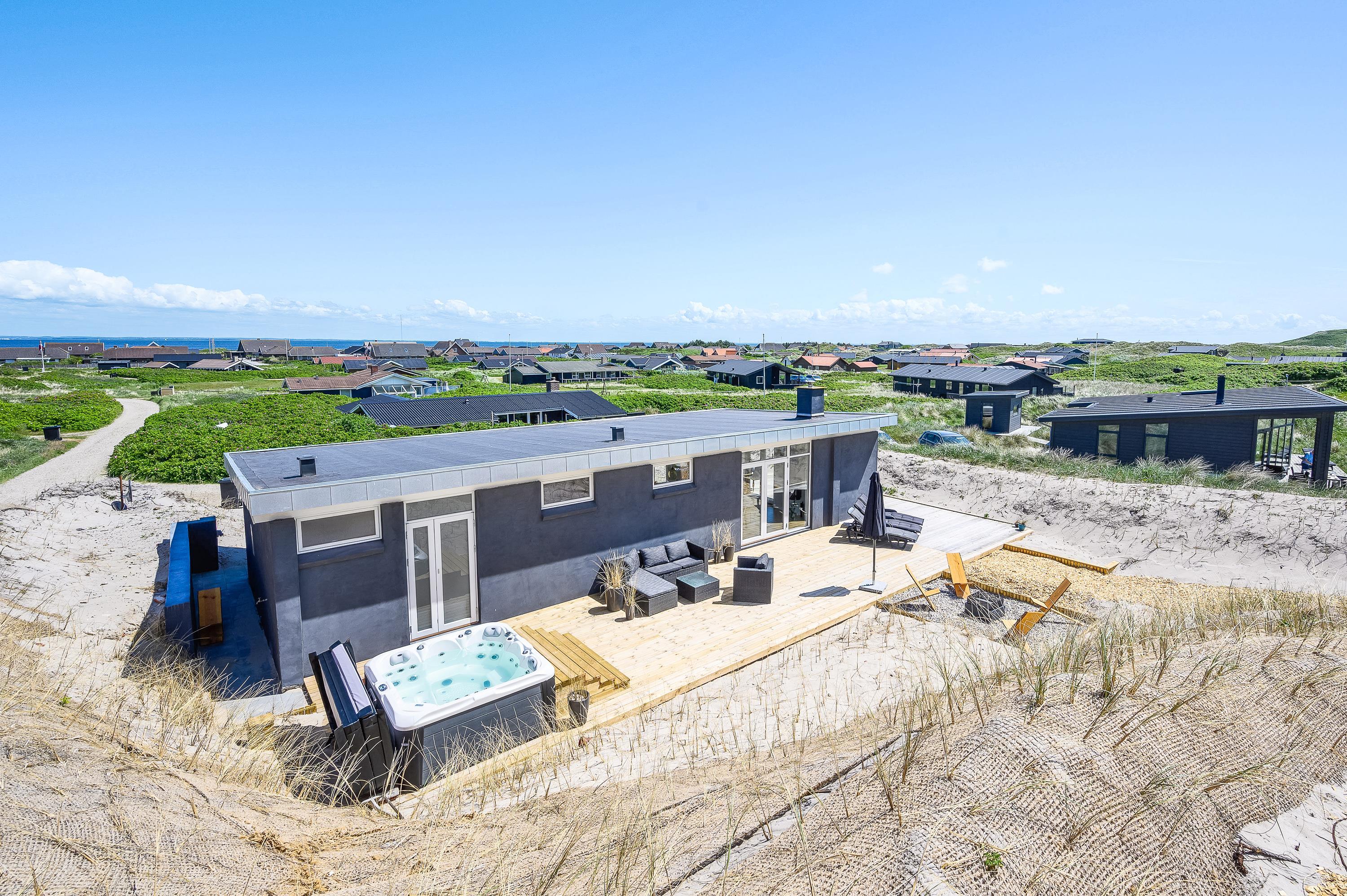 The wonderful south-west facing wooden terrace is accessed directly from the living area. You'll also find an outdoor hot tub with direct access from the bathroom, perfect for relaxing wellness evenings under the stars. Thanks to its unique location on a natural plot right by the dunes, you can enjoy uninterrupted views of the beautiful dune landscape while listening to the sound of the sea.