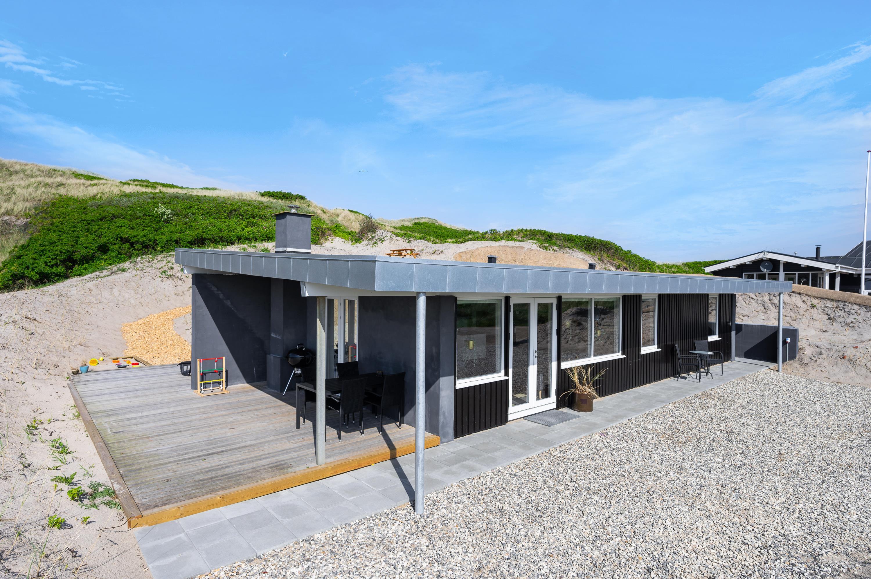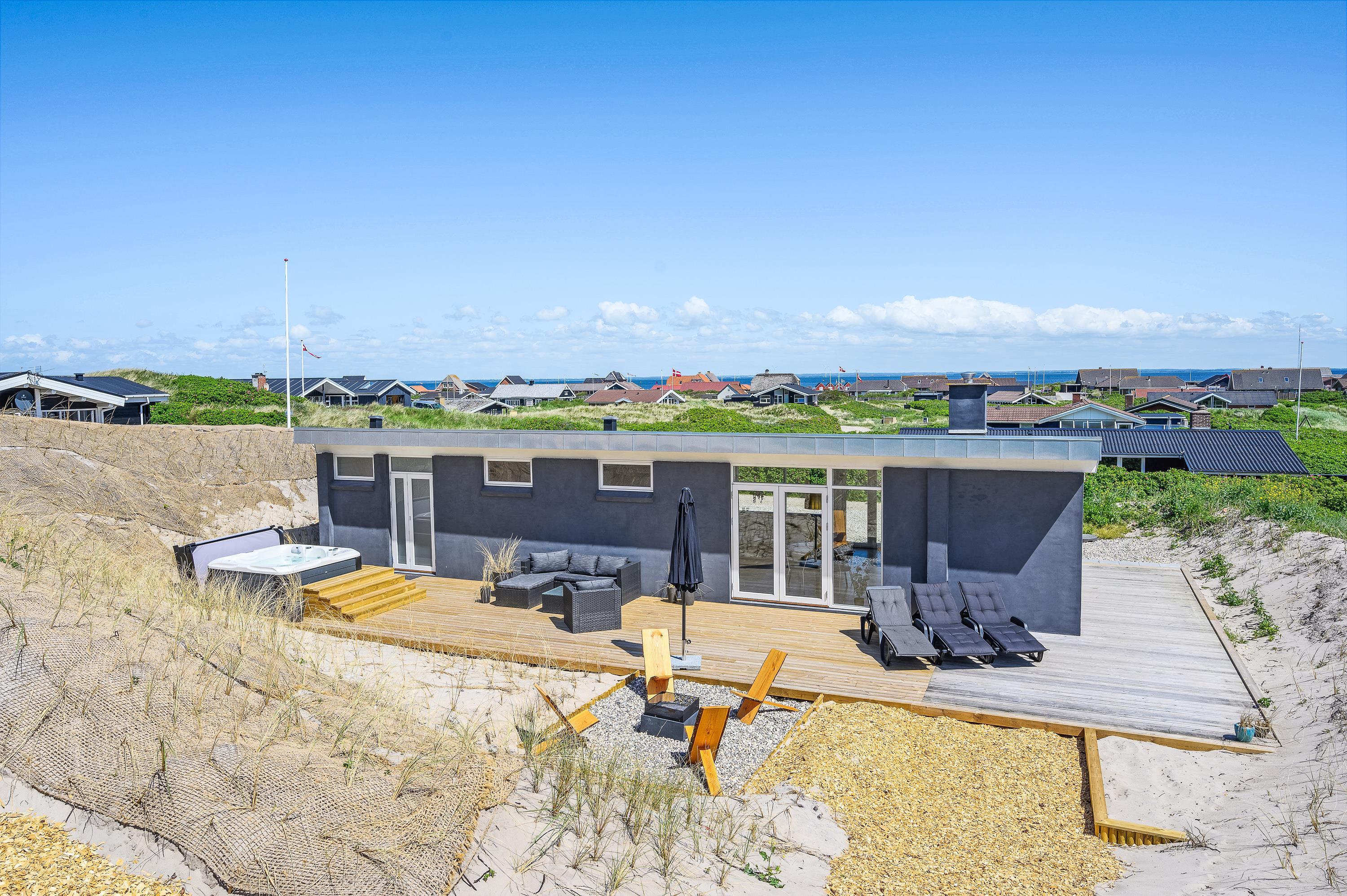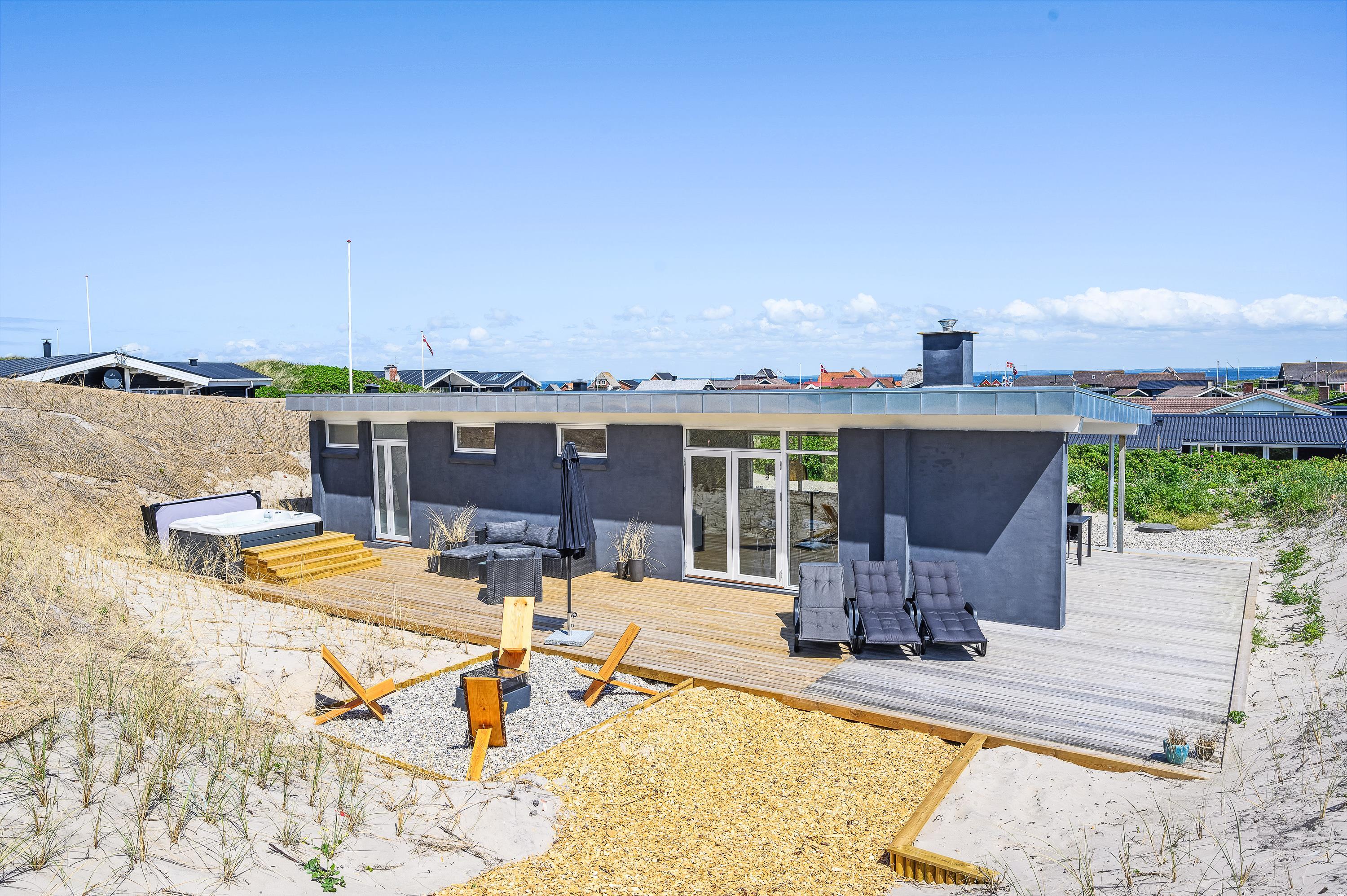 This beautiful holiday home with outdoor hot tub is perfectly located just 50 metres from the Danish West Coast beach at Karen Brands Vej 187. Renovated in 2021, this coastal retreat accommodates up to 5 people. Your dog is also warmly welcome.