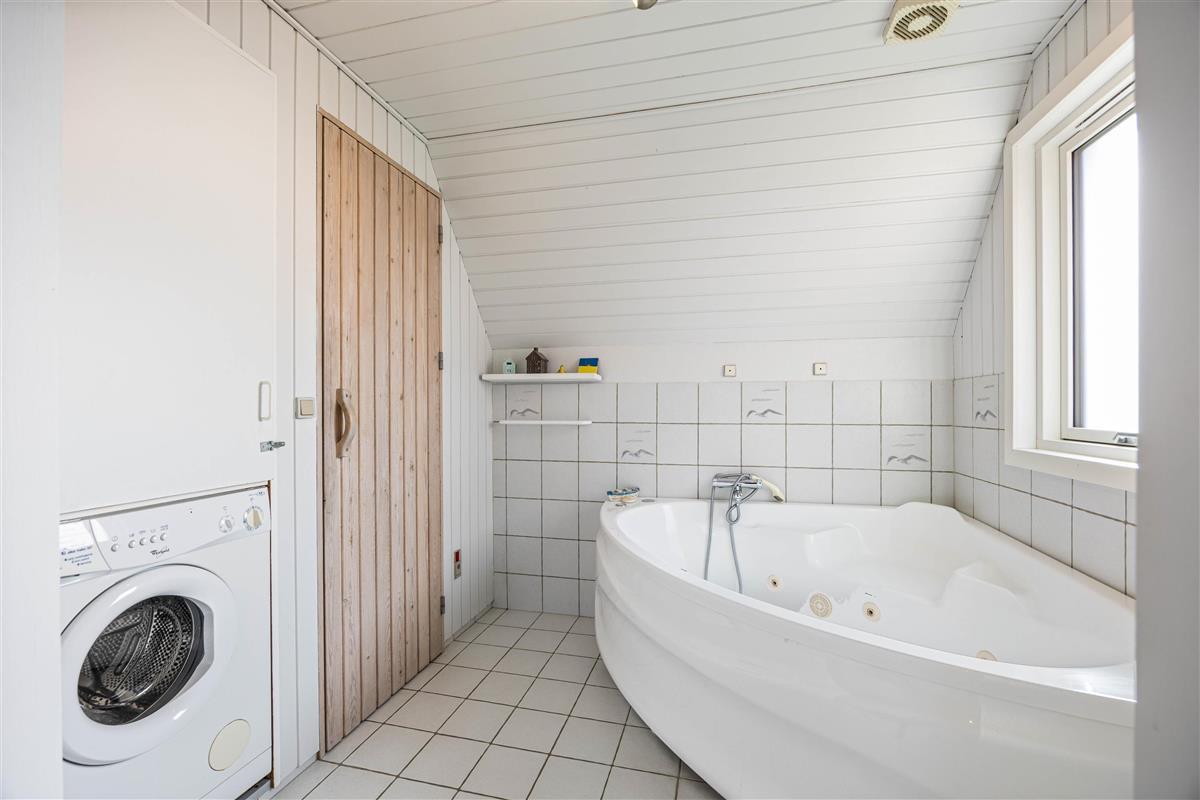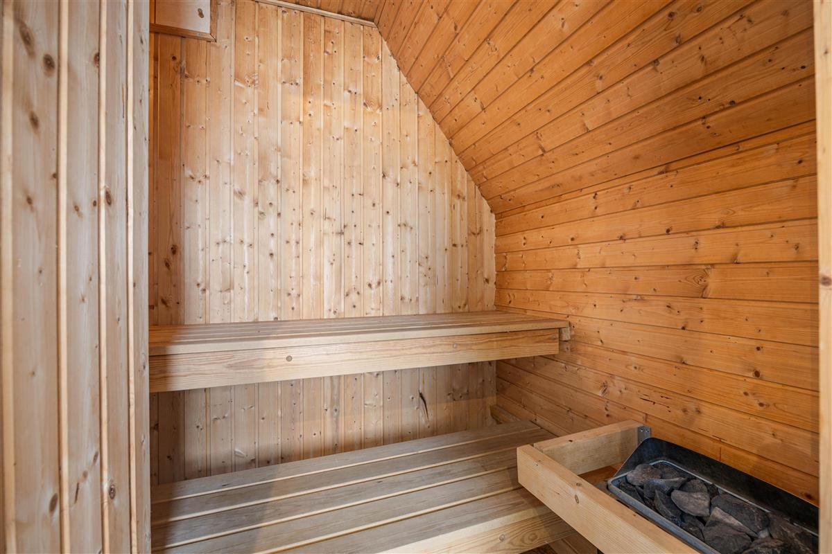 The spacious bathroom features both a sauna and a whirlpool, perfect for unwinding and truly enjoying your holiday.