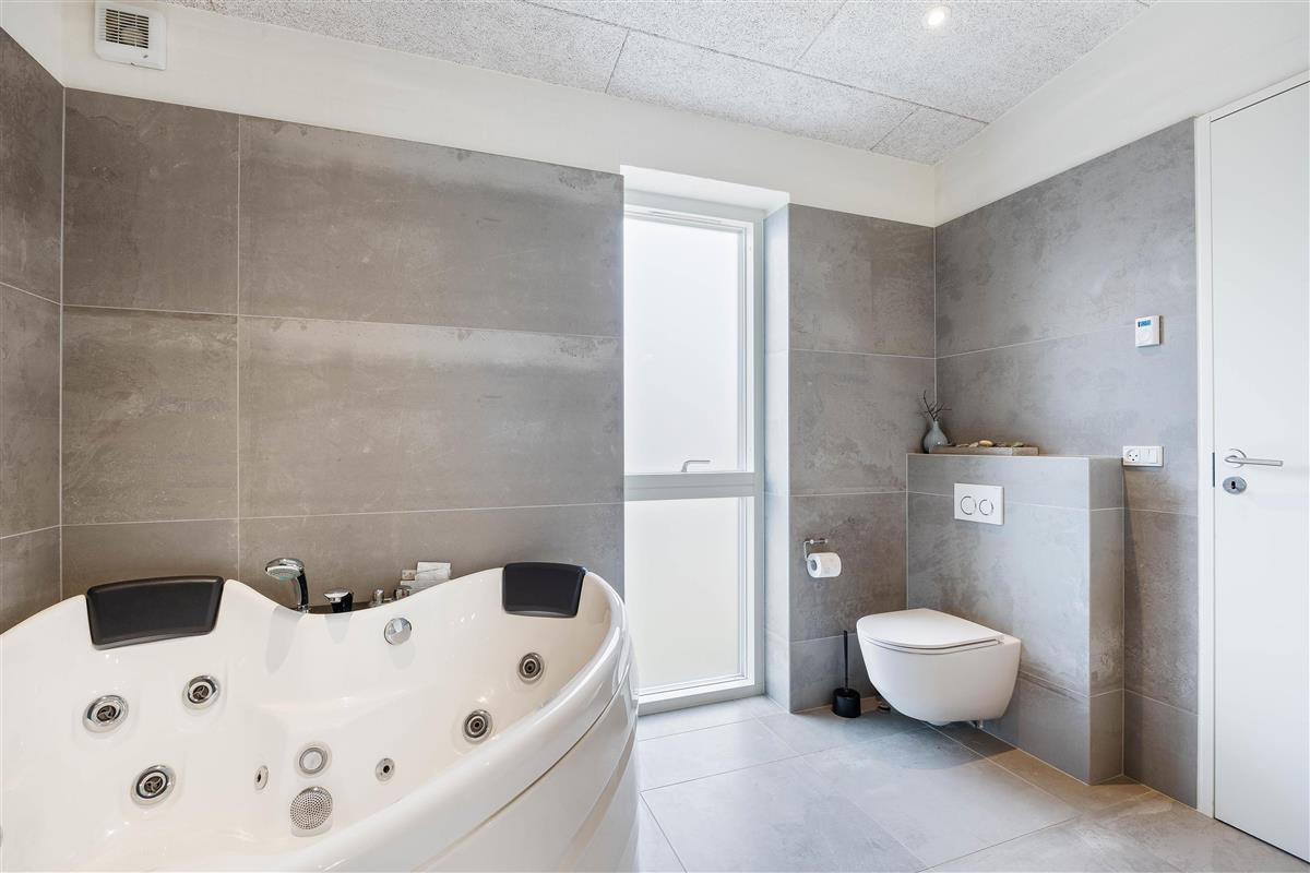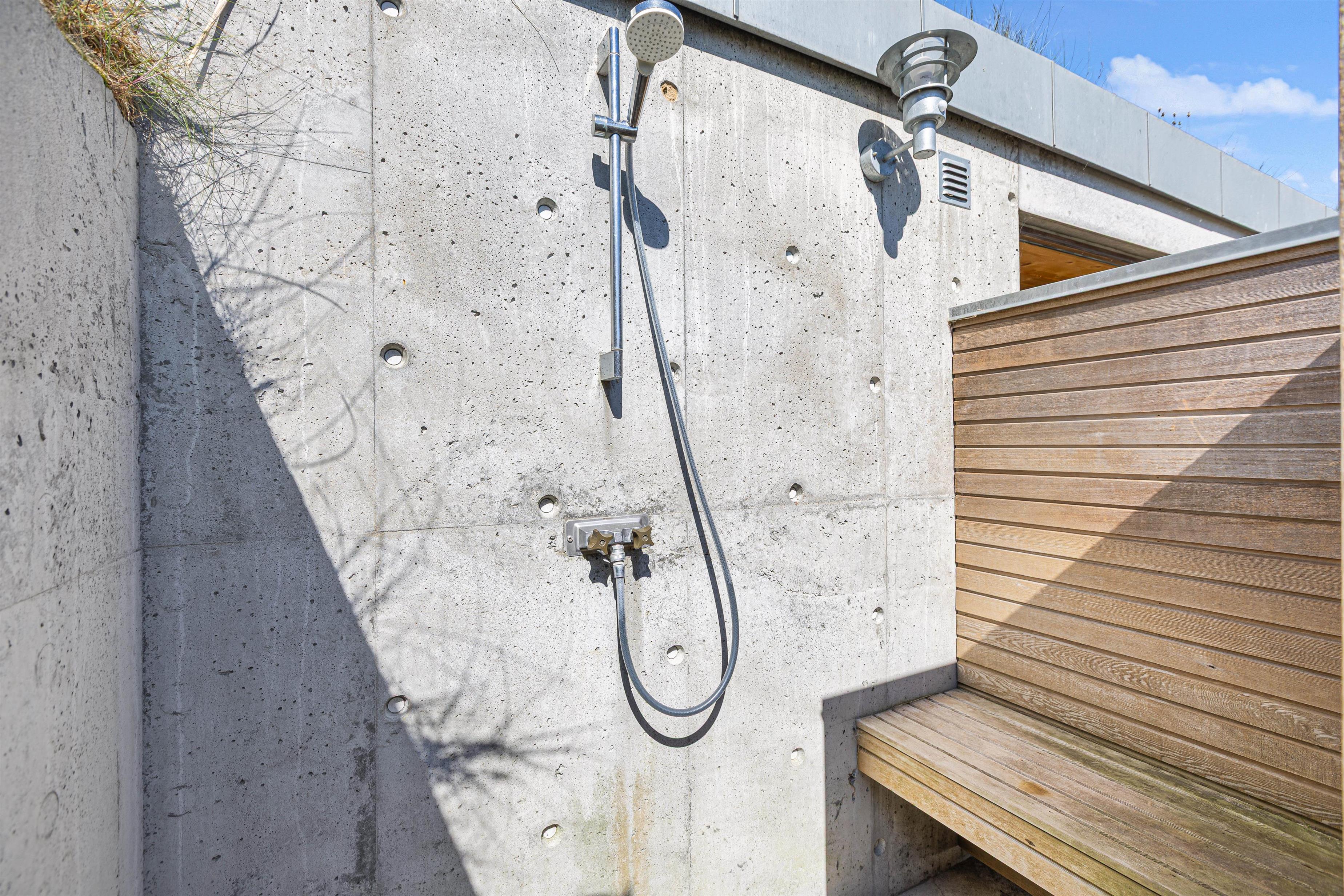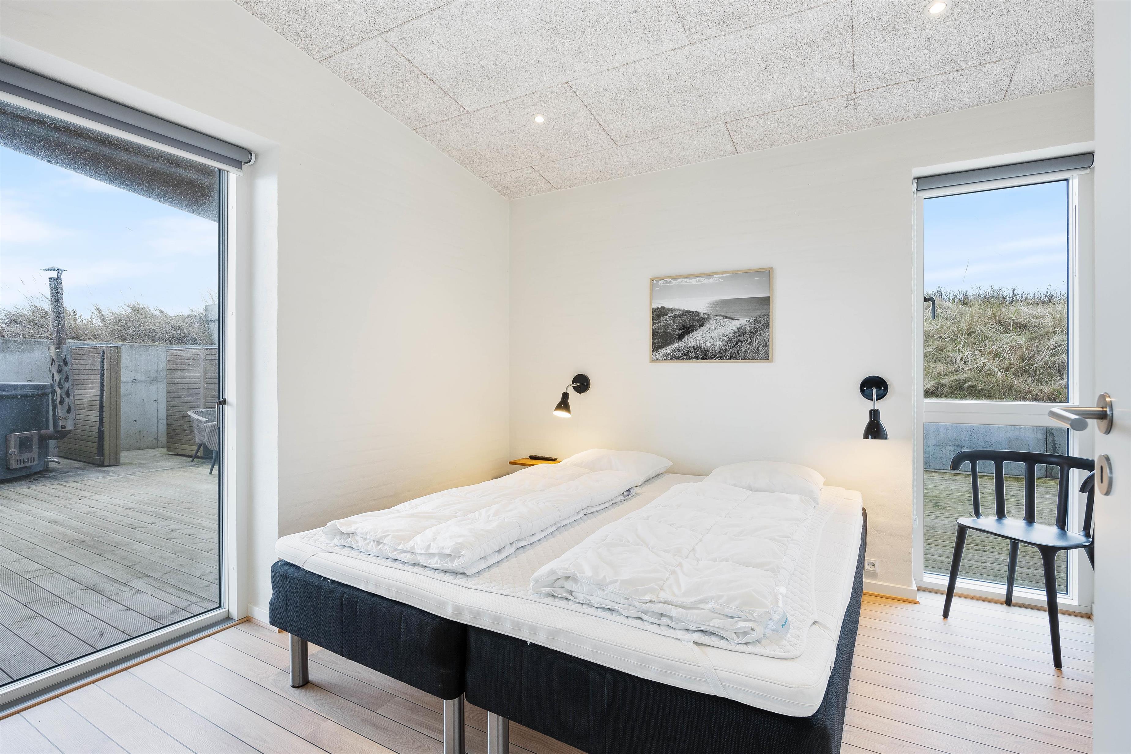 The holiday home has two stylish bathrooms with underfloor heating, one featuring a whirlpool where you can relax after an eventful day. Outside, you'll find a heated bathing barrel and outdoor shower. For windsurfers and anyone looking to soothe tired muscles, the sauna offers panoramic views over the fjord.