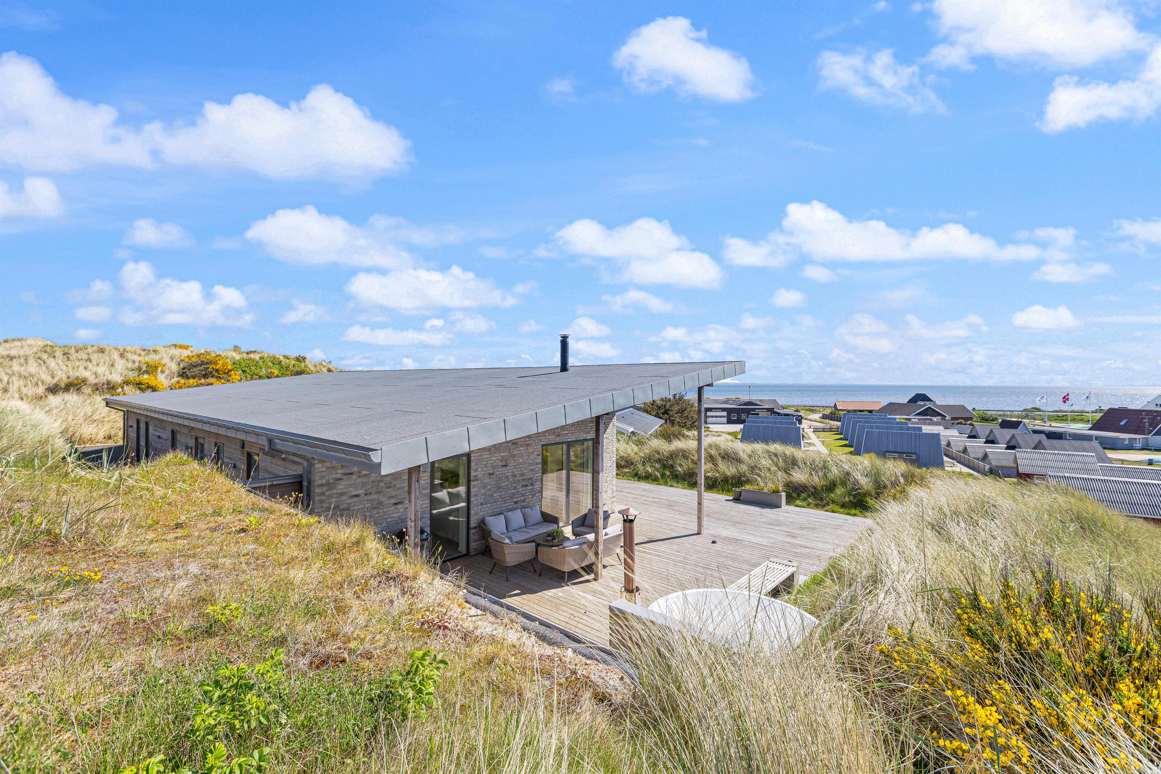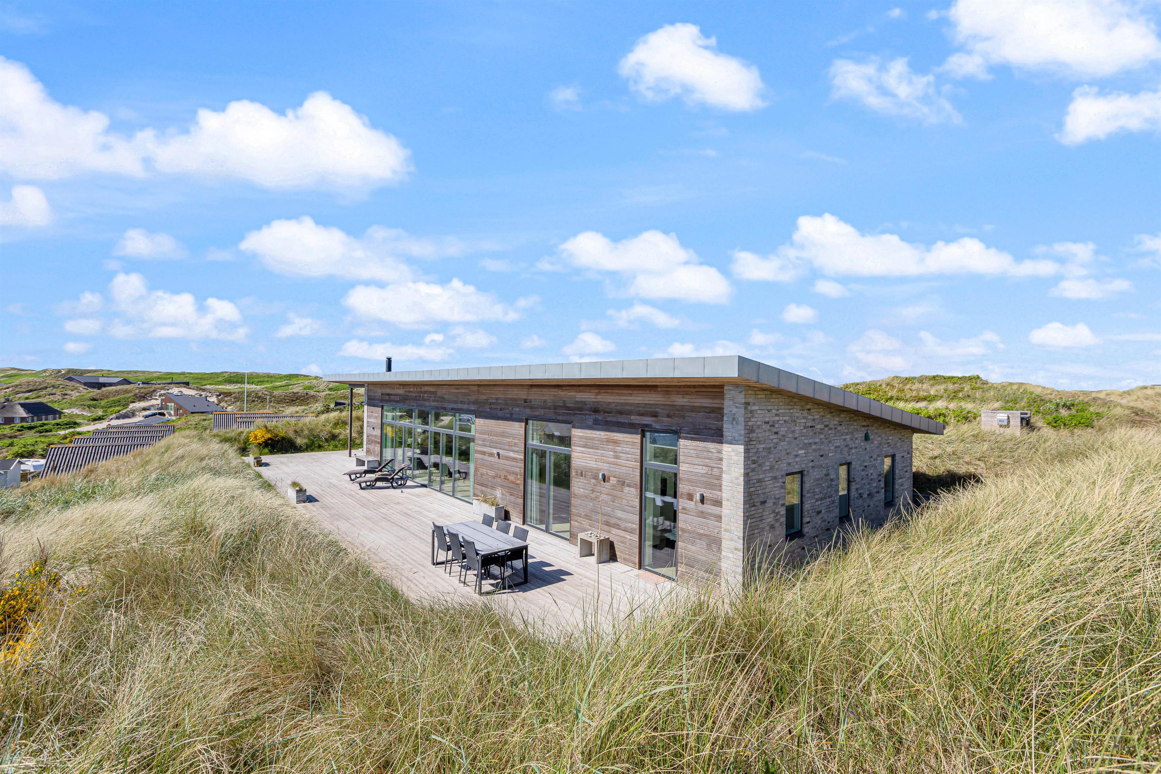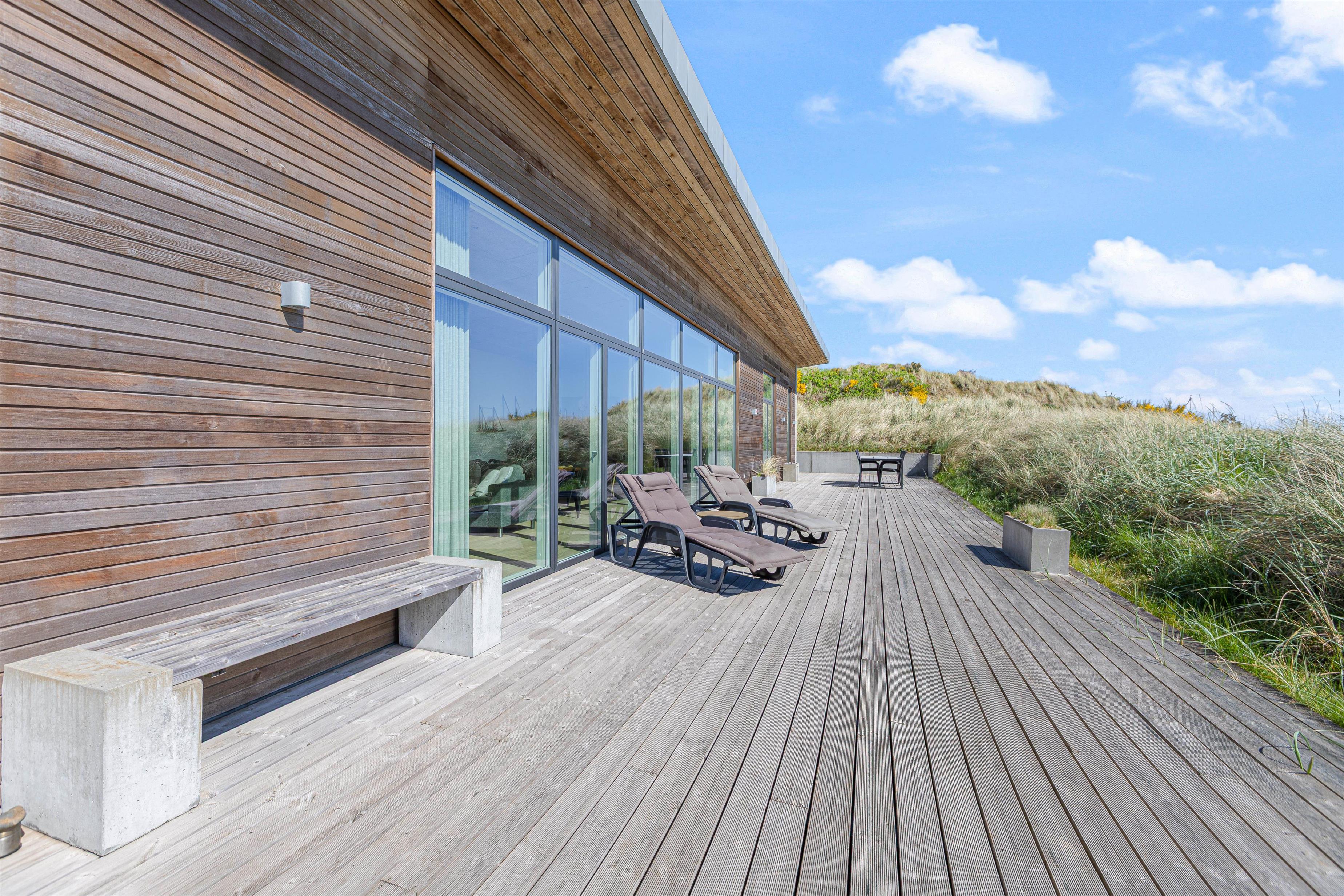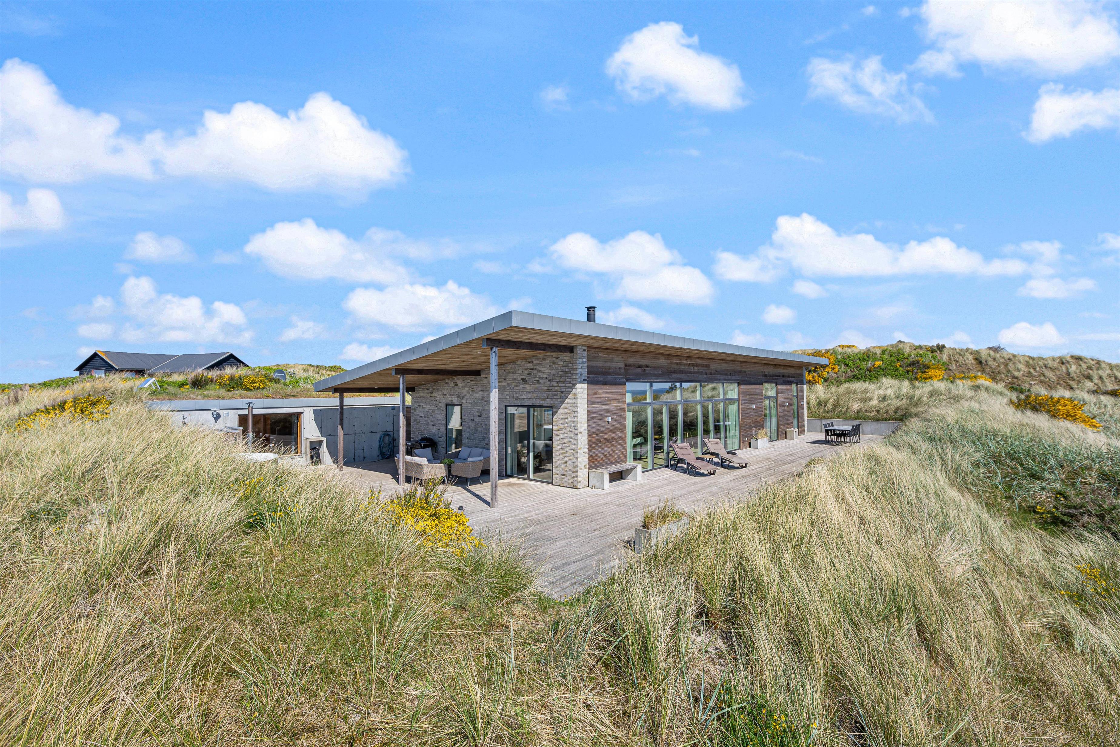 Your modern holiday home is situated between Ringkøbing Fjord and the North Sea, just 1.2 miles (2 km) south of Hvide Sande. The fine North Sea beach is only 150 metres away, perfect for swimming or building sandcastles. The location is also ideal for water sports enthusiasts, with a popular windsurfing spot and playground just a few minutes' walk away. You can walk or cycle to the centre of Hvide Sande for delicious soft ice cream or fresh plaice at one of the restaurants. Hvide Sande offers numerous shops, supermarkets, bakeries and restaurants, plus a pharmacy and medical facilities in this charming harbour town.