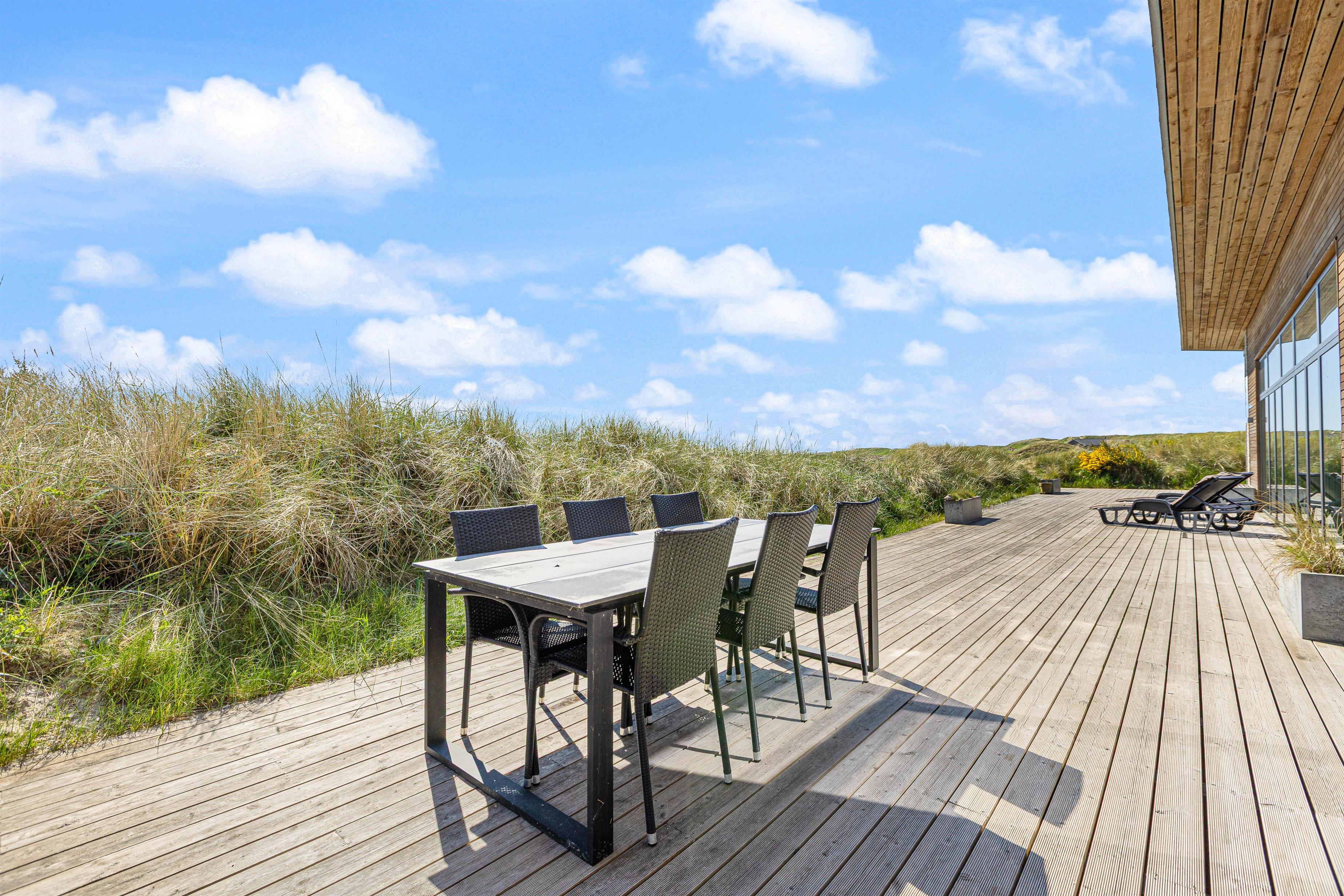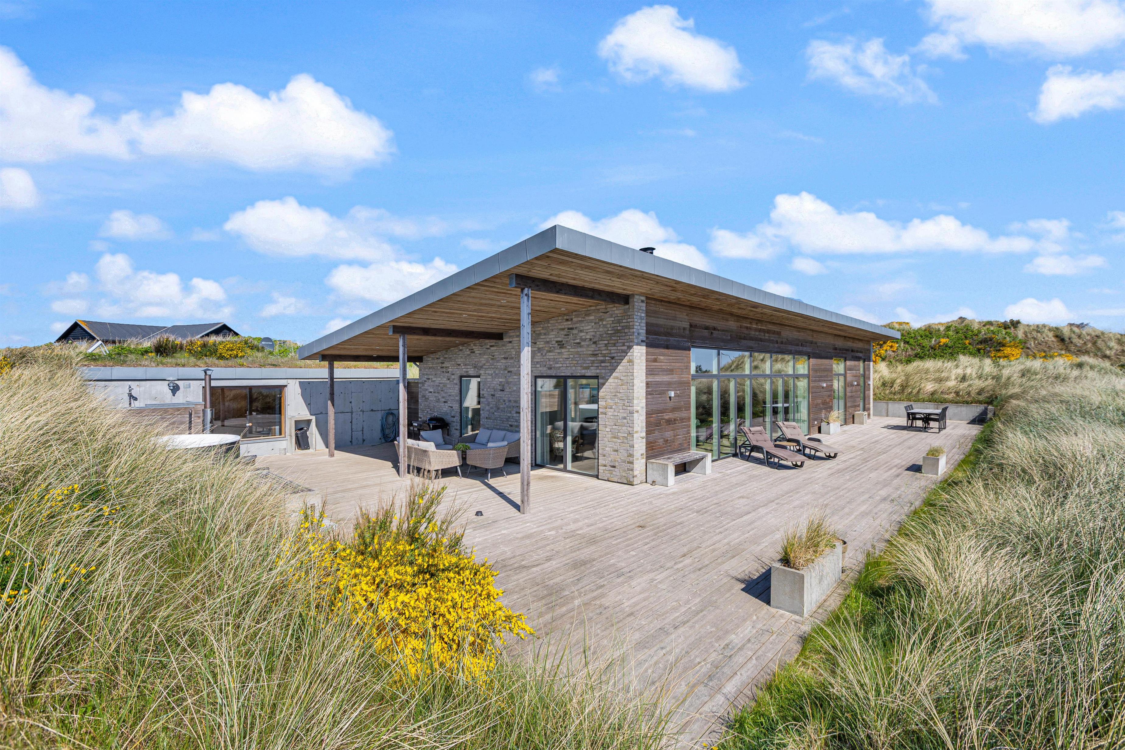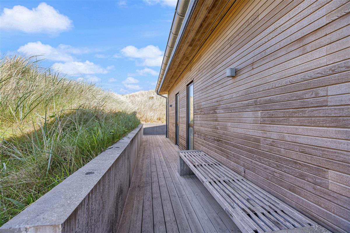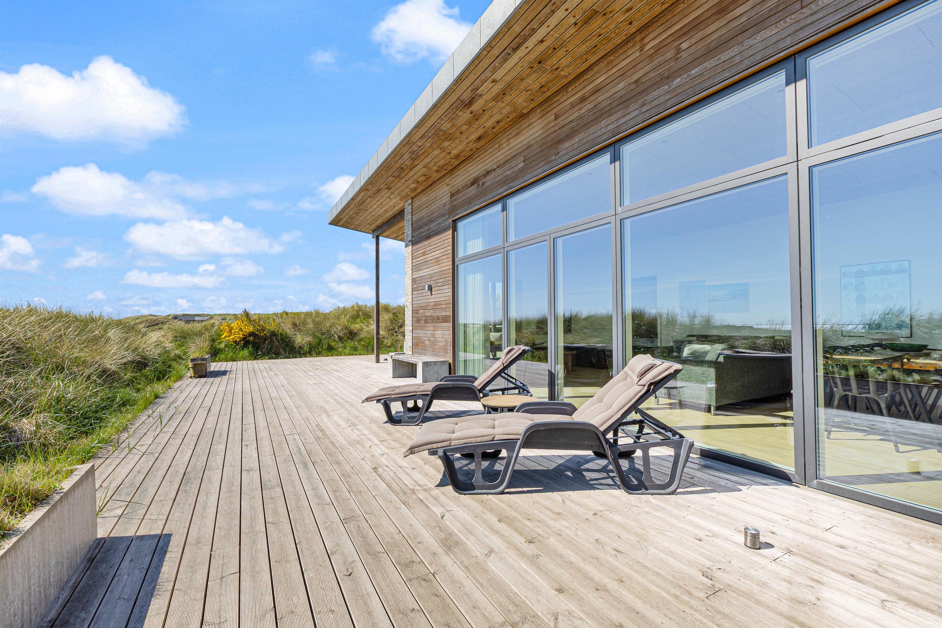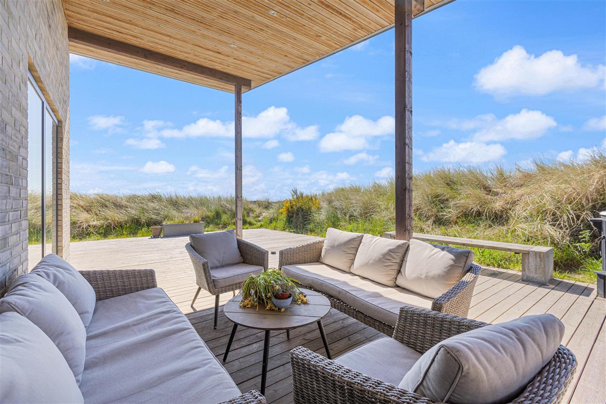 Your modern holiday home is situated between Ringkøbing Fjord and the North Sea, just 1.2 miles (2 km) south of Hvide Sande. The fine North Sea beach is only 150 metres away, perfect for swimming or building sandcastles. The location is also ideal for water sports enthusiasts, with a popular windsurfing spot and playground just a few minutes' walk away. You can walk or cycle to the centre of Hvide Sande for delicious soft ice cream or fresh plaice at one of the restaurants. Hvide Sande offers numerous shops, supermarkets, bakeries and restaurants, plus a pharmacy and medical facilities in this charming harbour town.