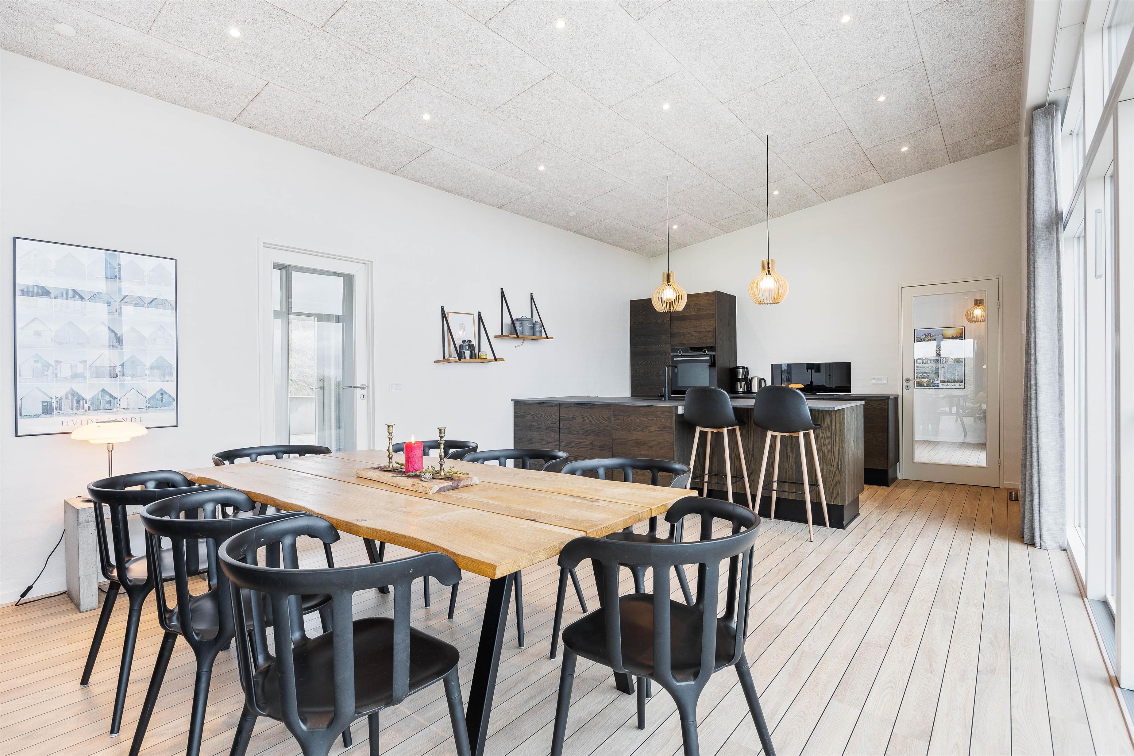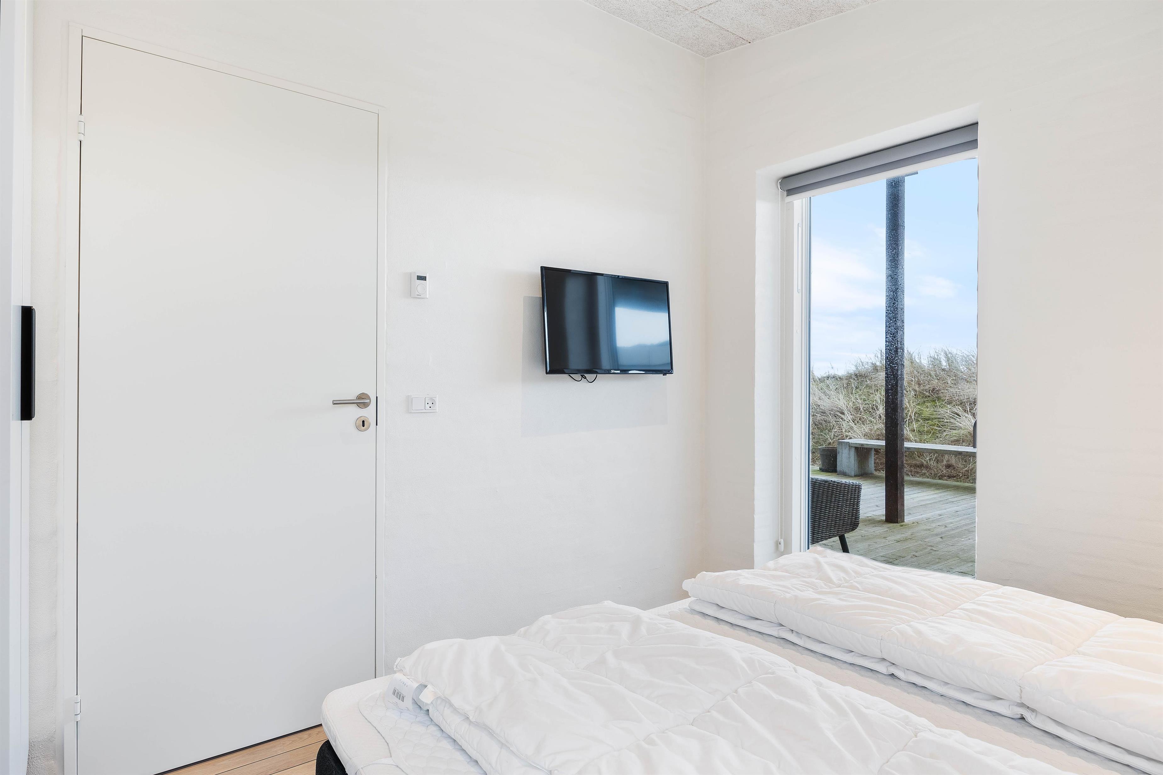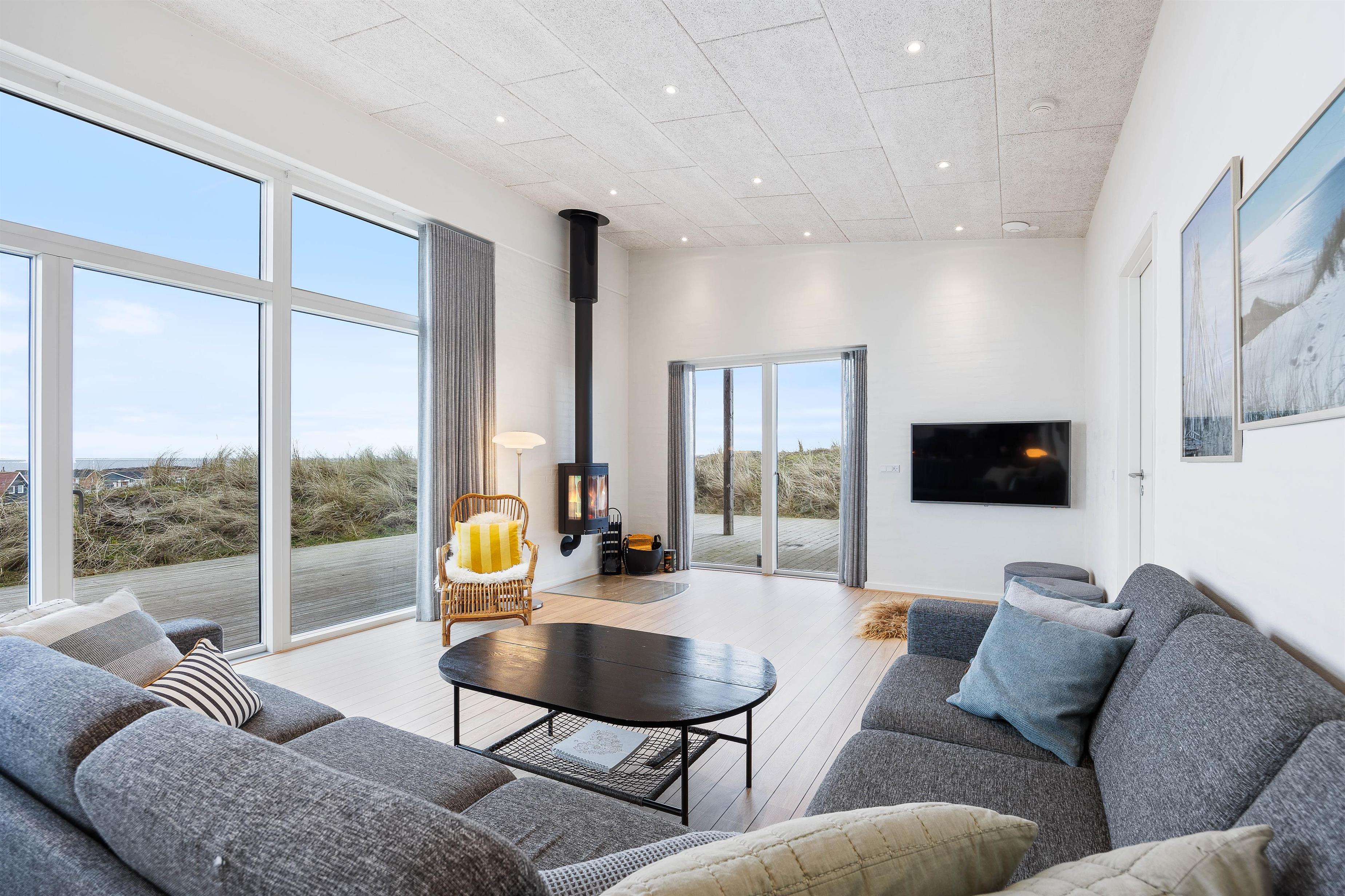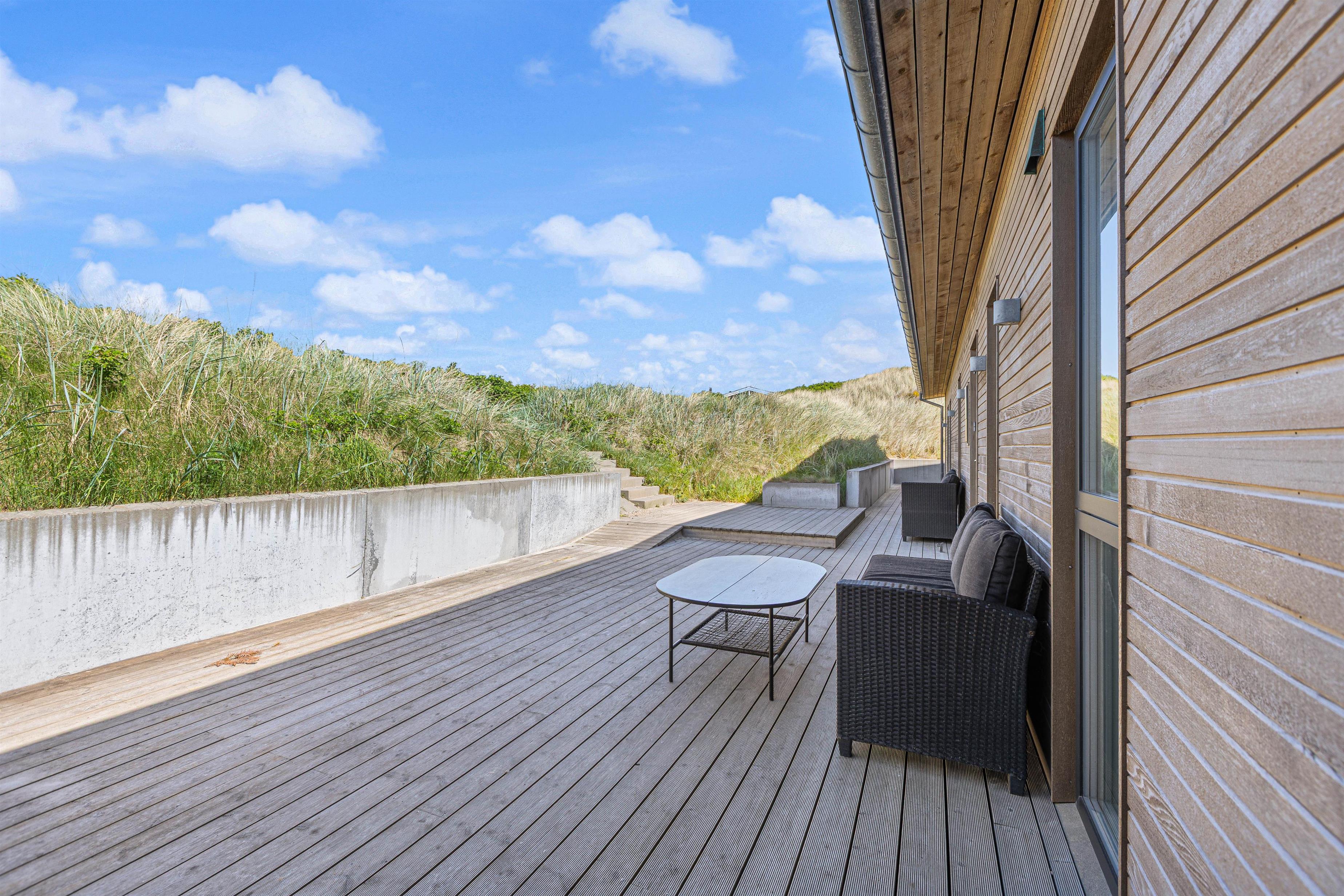 Your modern holiday home is situated between Ringkøbing Fjord and the North Sea, just 1.2 miles (2 km) south of Hvide Sande. The fine North Sea beach is only 150 metres away, perfect for swimming or building sandcastles. The location is also ideal for water sports enthusiasts, with a popular windsurfing spot and playground just a few minutes' walk away. You can walk or cycle to the centre of Hvide Sande for delicious soft ice cream or fresh plaice at one of the restaurants. Hvide Sande offers numerous shops, supermarkets, bakeries and restaurants, plus a pharmacy and medical facilities in this charming harbour town.