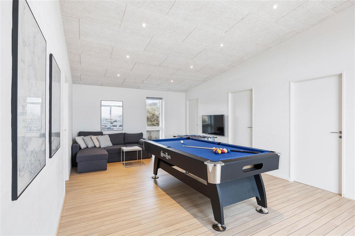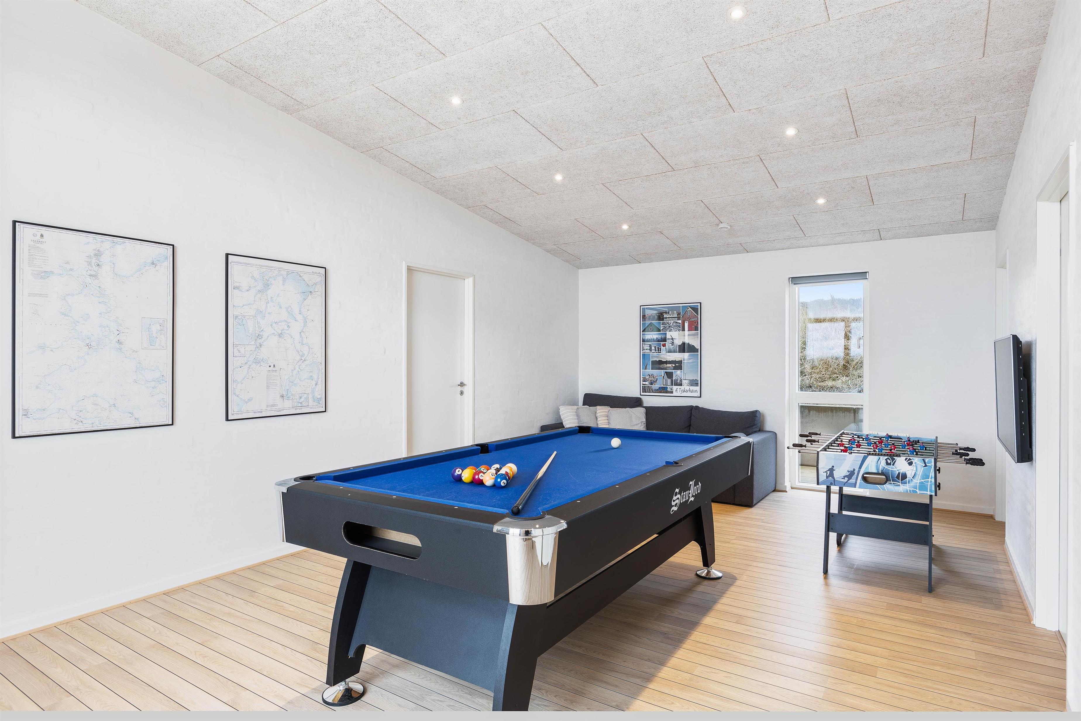 All four bedrooms, like the rest of the holiday home, are bright with clean lines and each comes equipped with its own television. The games room connects the two main areas of the house and provides welcome entertainment on rainy days, featuring a TV corner, pool table and table football.