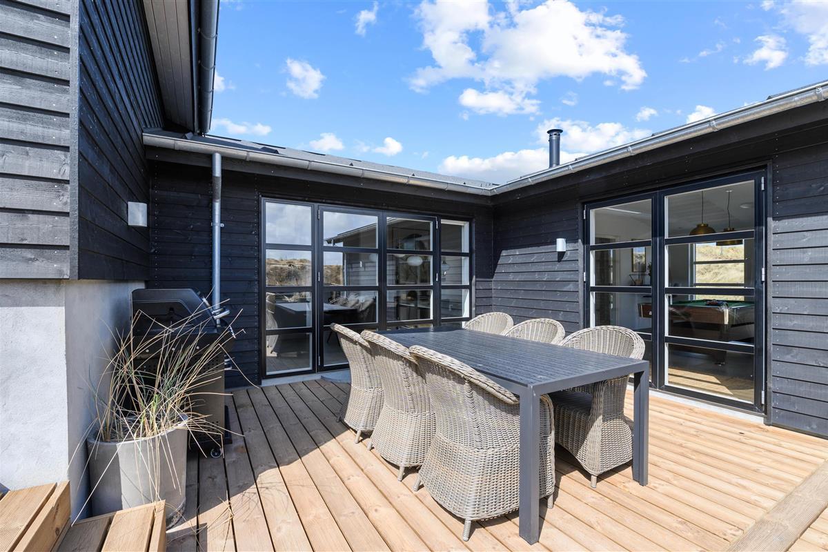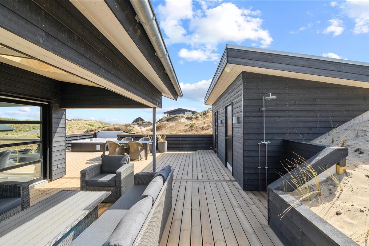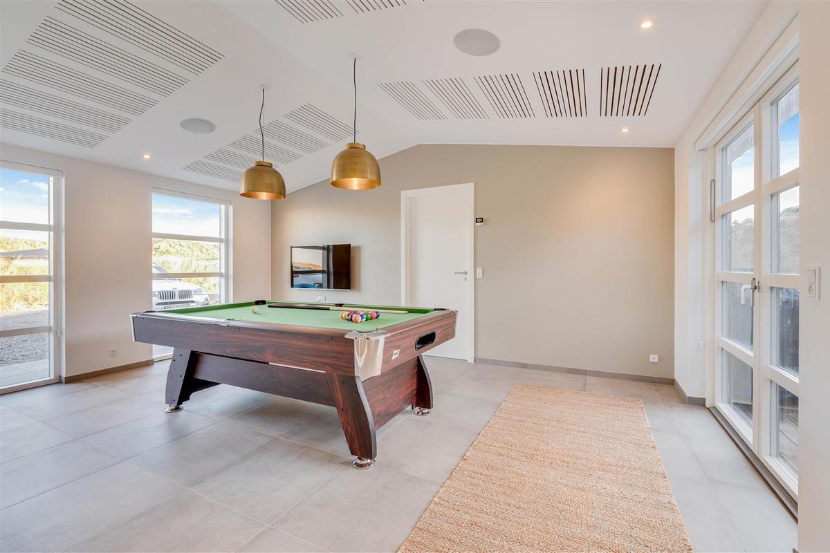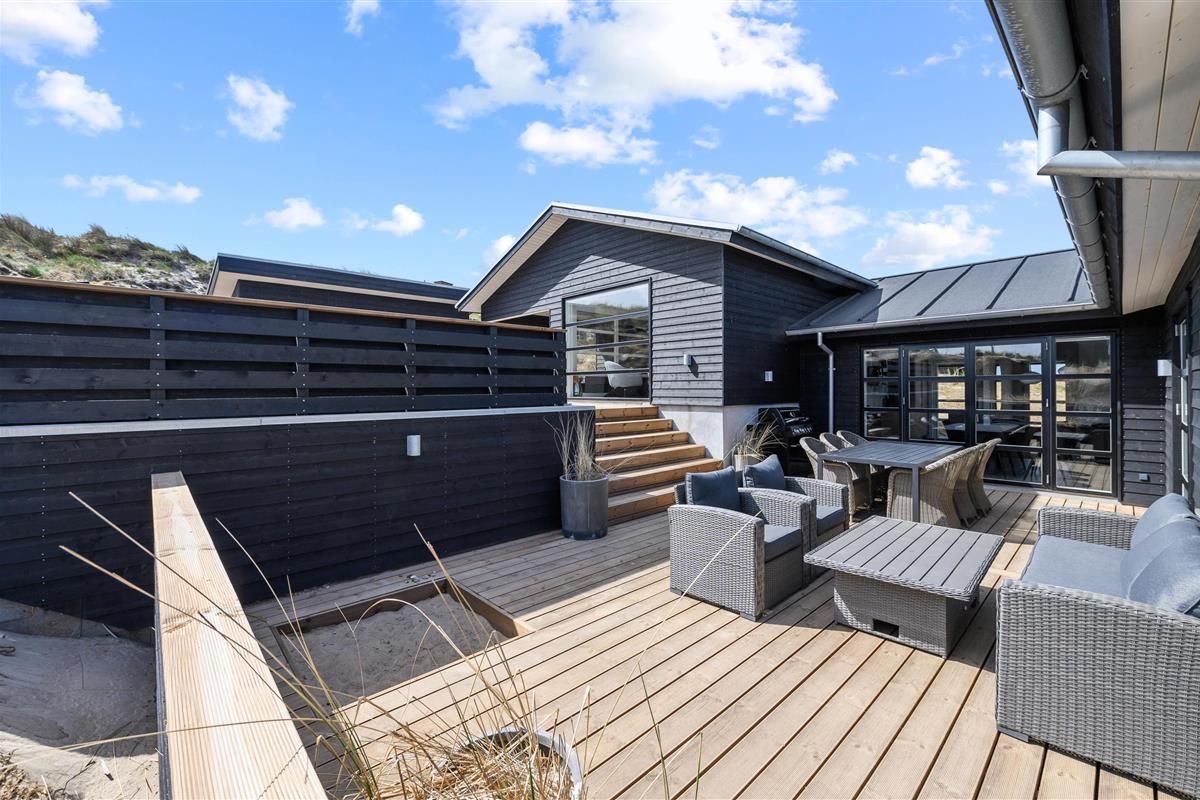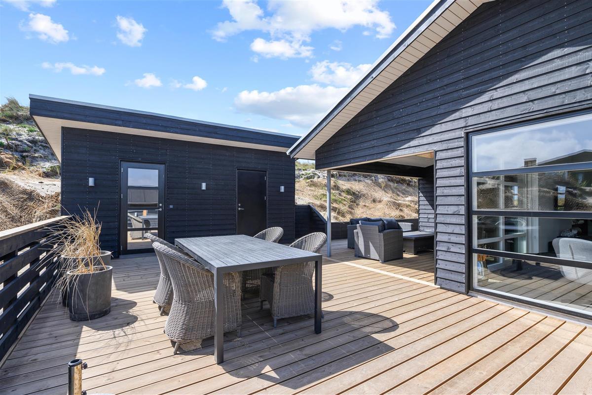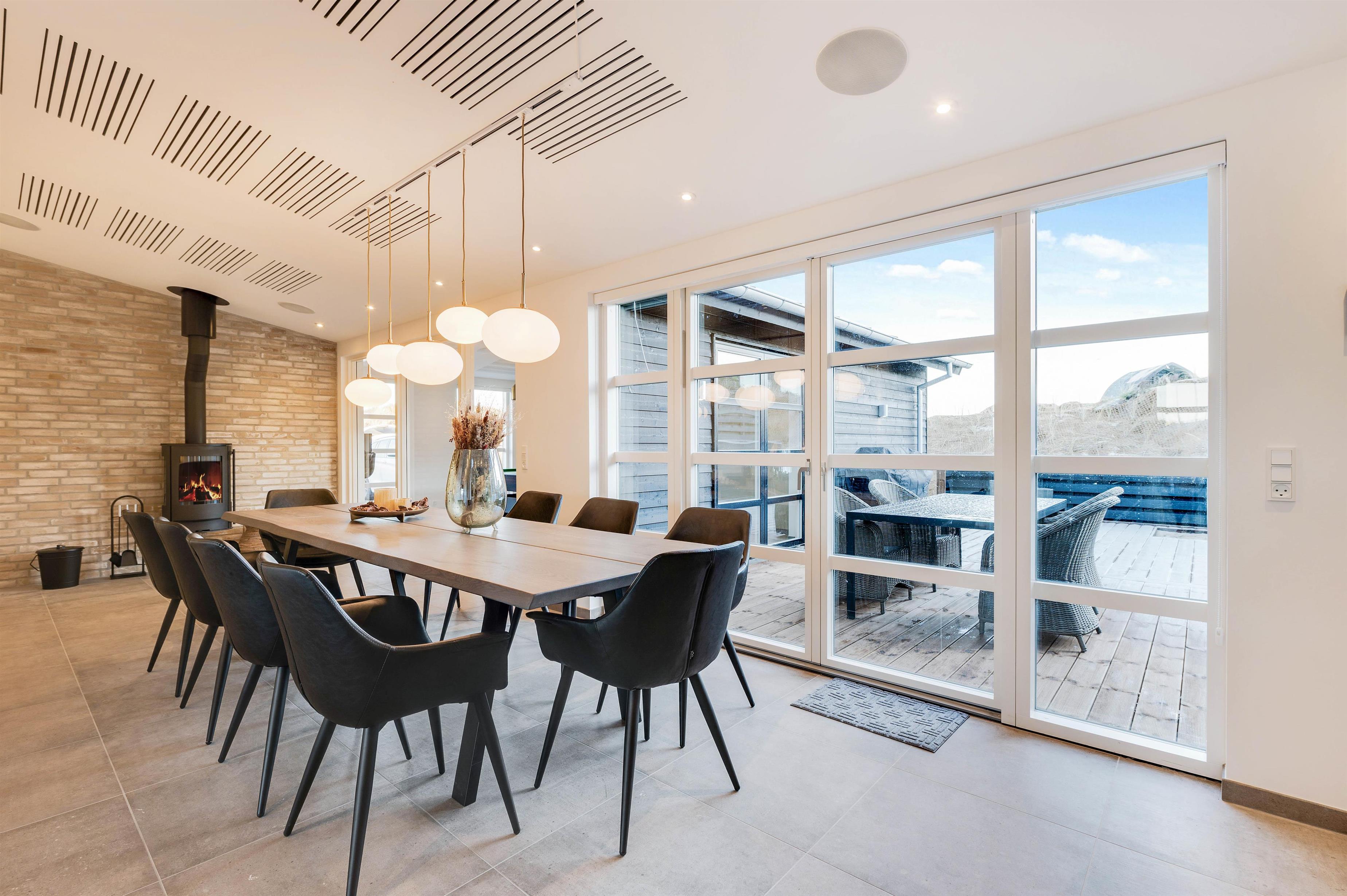 This luxury holiday home is situated in the popular holiday region of Årgab, just 300 metres from the expansive sandy beach and only a few minutes' drive from Hvide Sande. The surroundings are perfect for long beach walks, hiking and cycling tours.