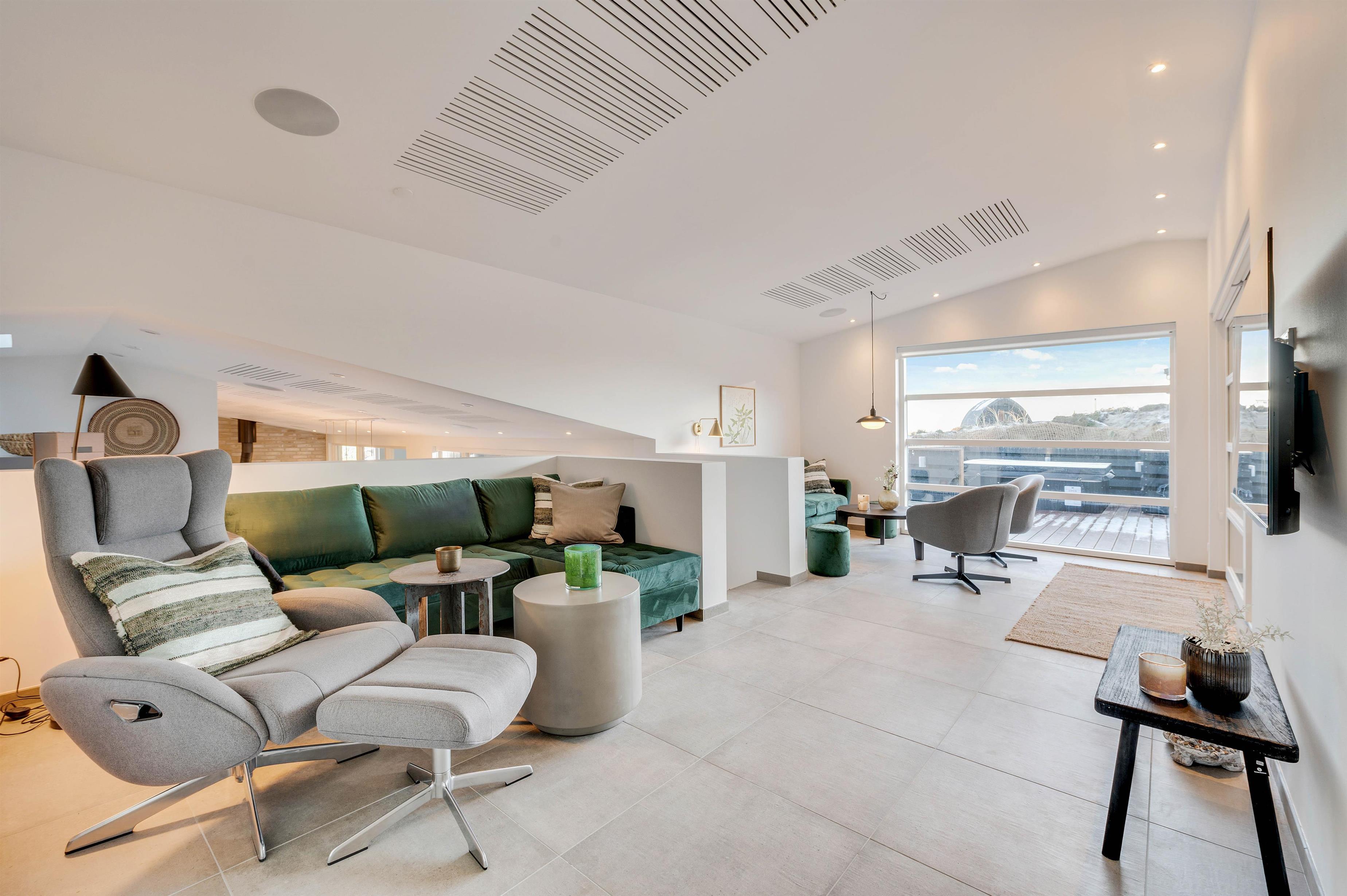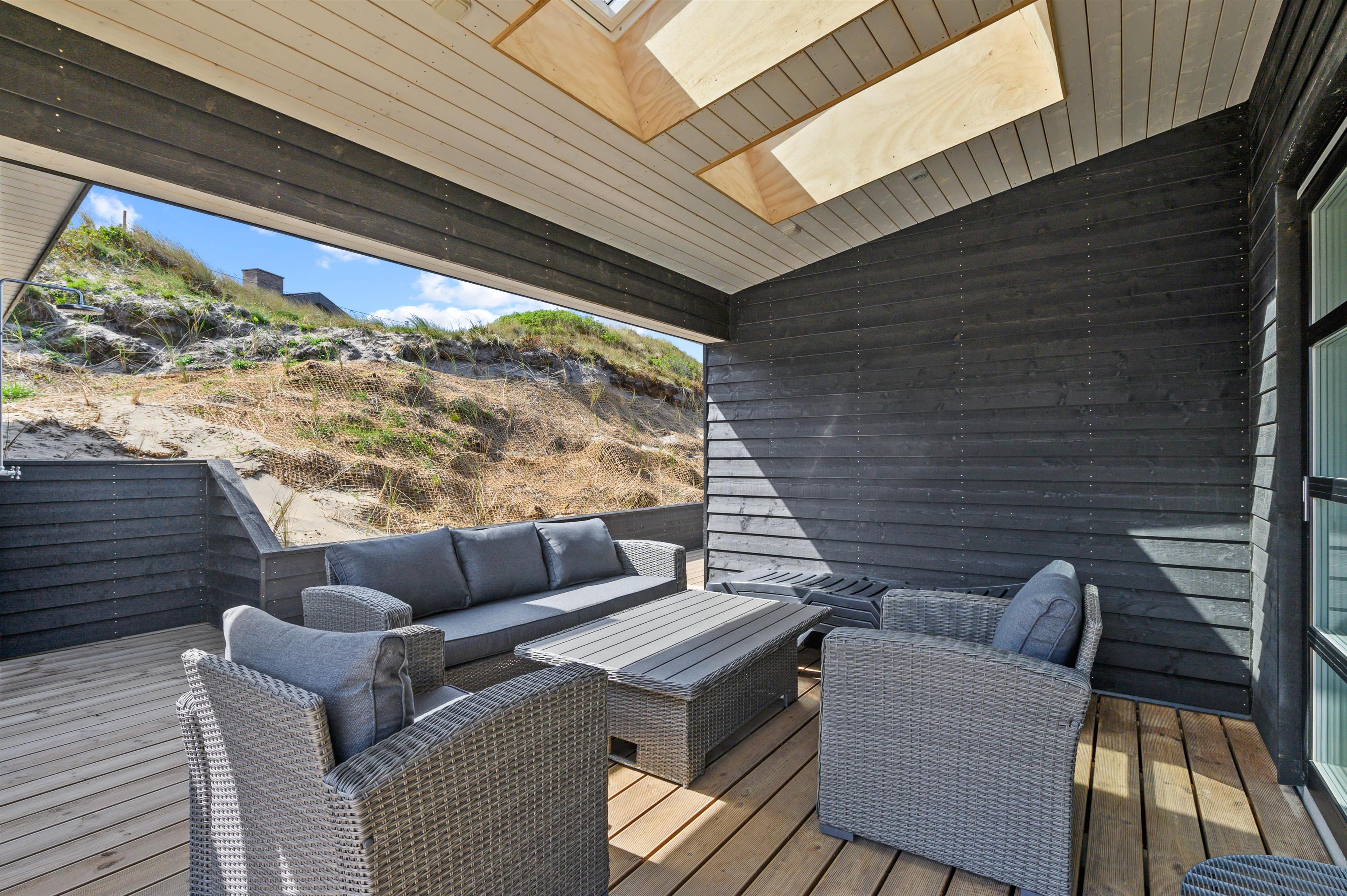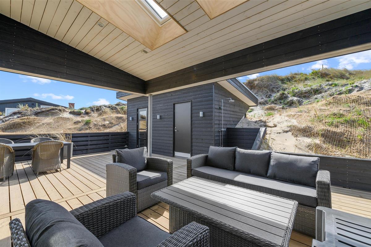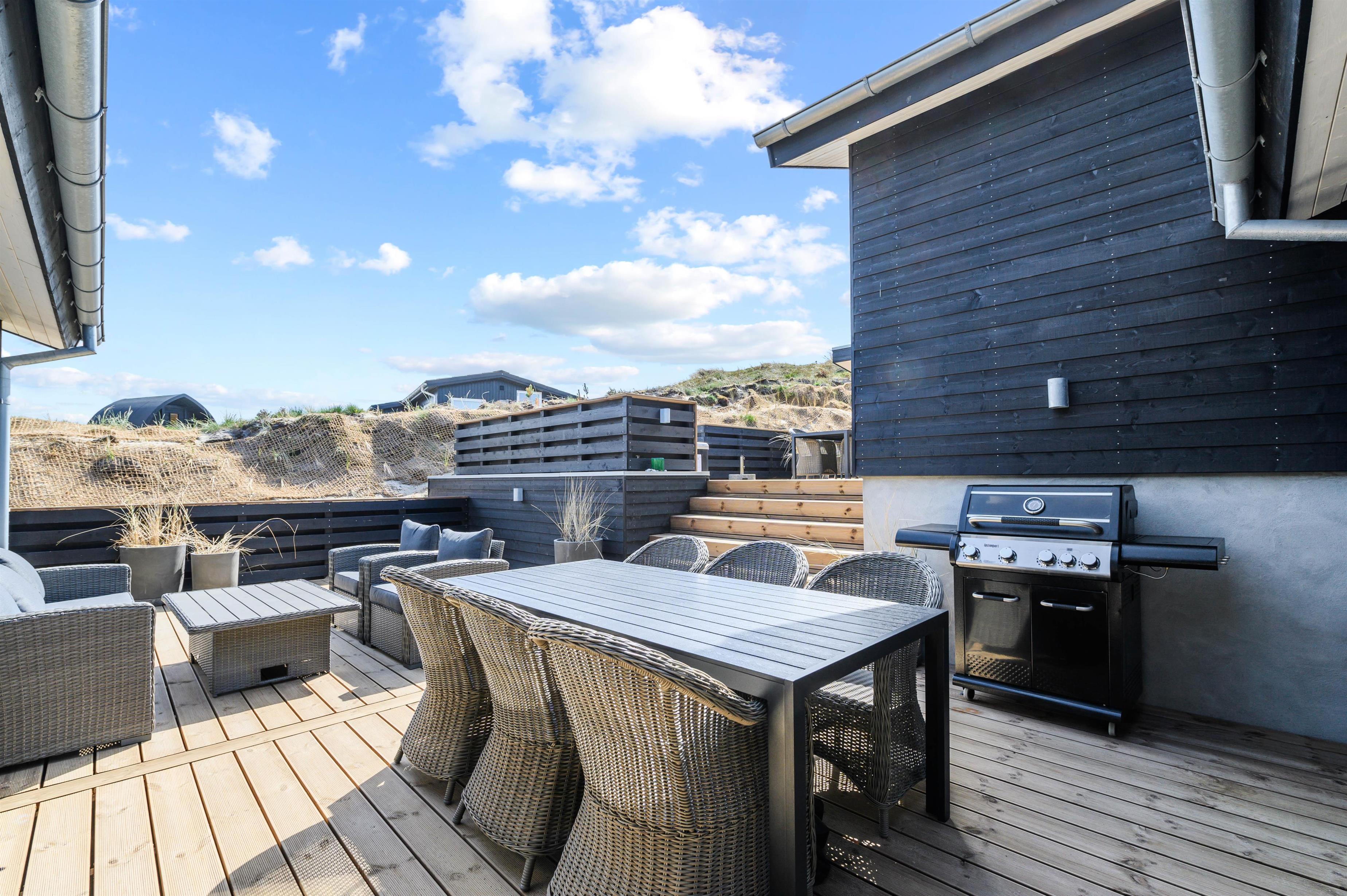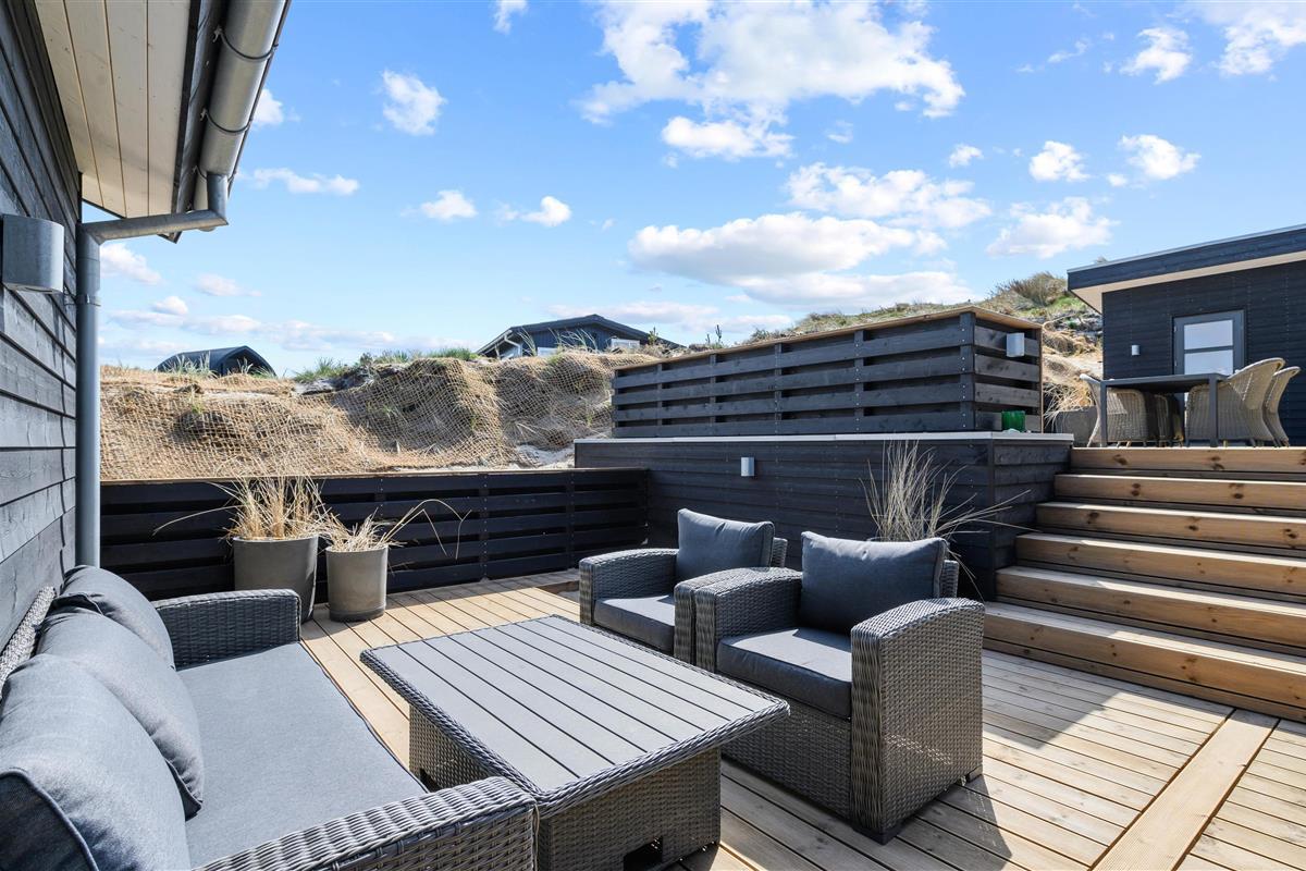 This luxury holiday home is situated in the popular holiday region of Årgab, just 300 metres from the expansive sandy beach and only a few minutes' drive from Hvide Sande. The surroundings are perfect for long beach walks, hiking and cycling tours.