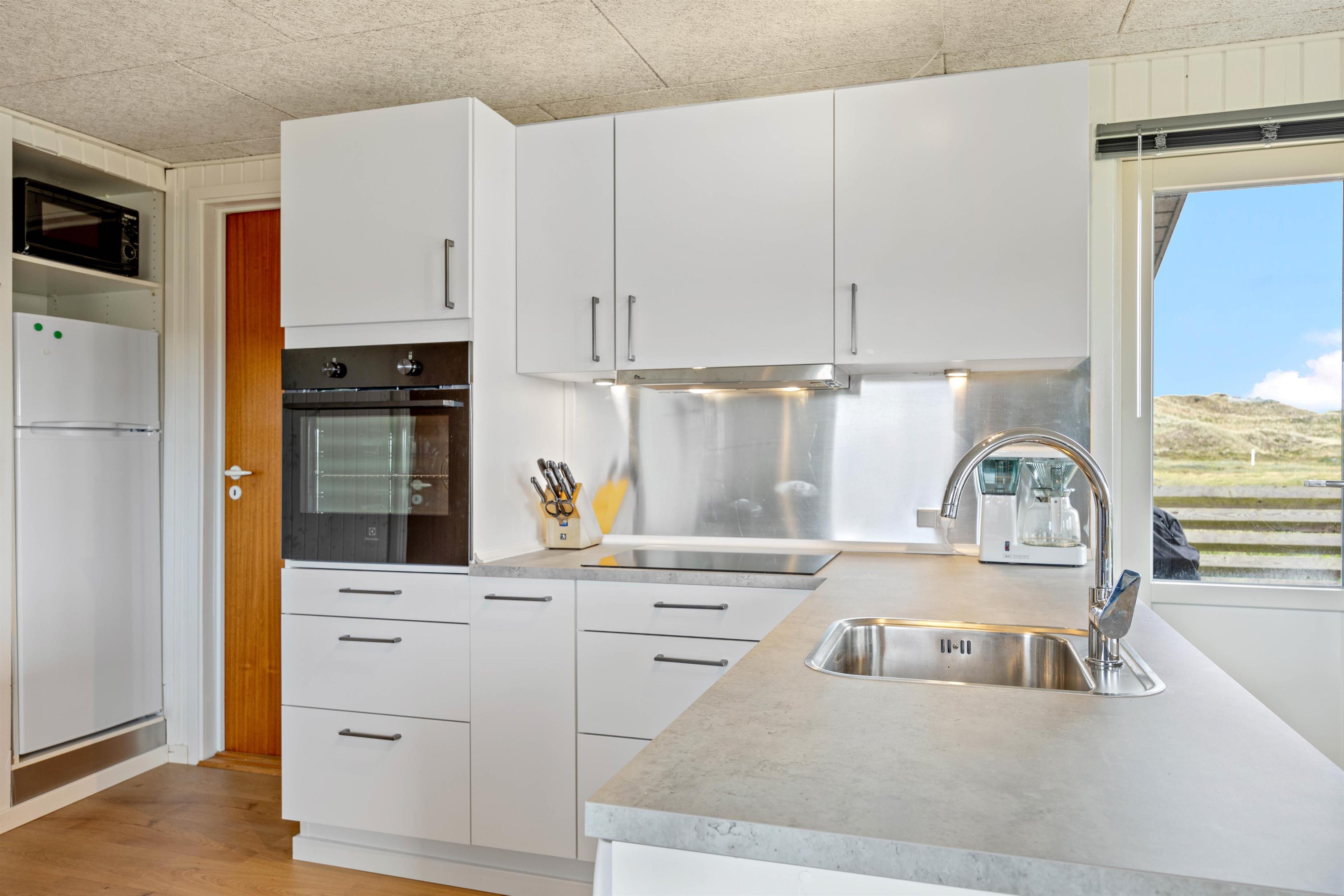 The kitchen is modern and well-equipped. Along with a fridge including a 35-litre freezer compartment and dishwasher, it also features a microwave.