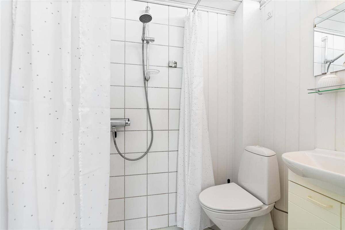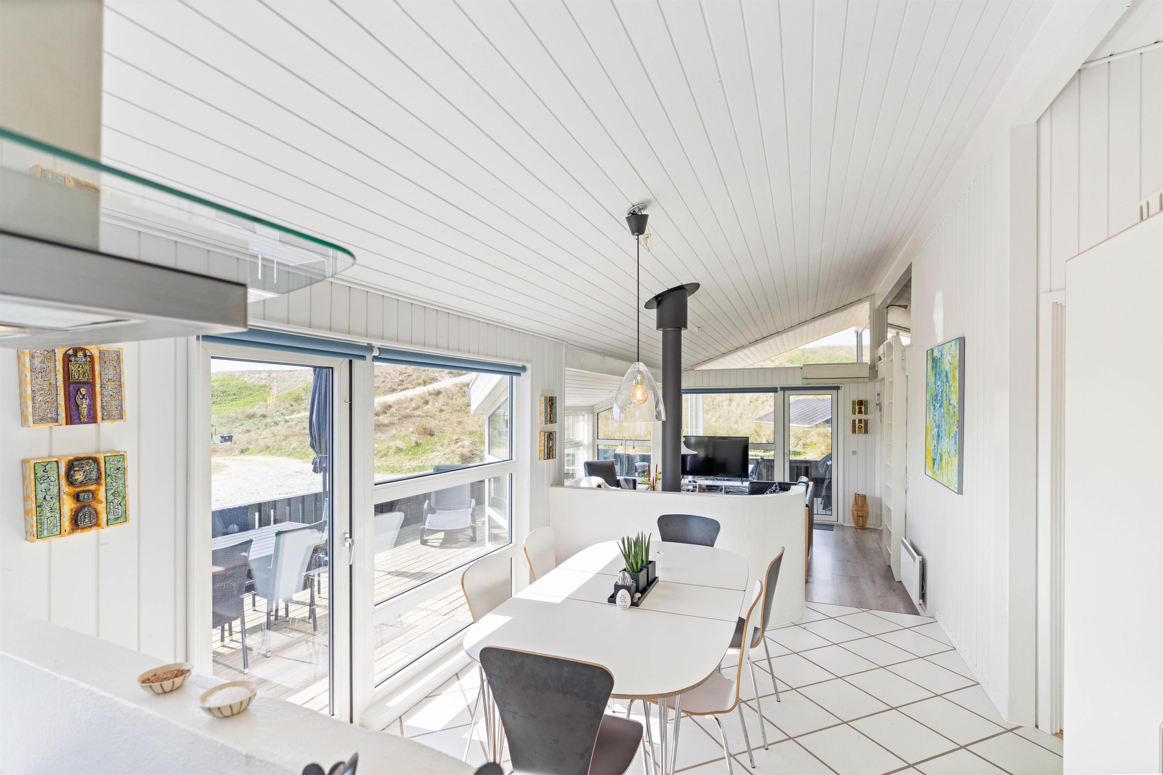 The kitchen is equipped with amenities including a dishwasher, microwave and freezer (50 litres). Adjacent to the kitchen, you'll find the spacious dining room with ample seating for all guests. The living room is situated one step down from the dining area.