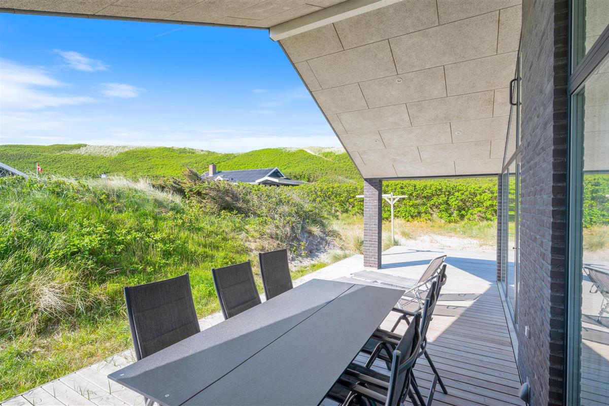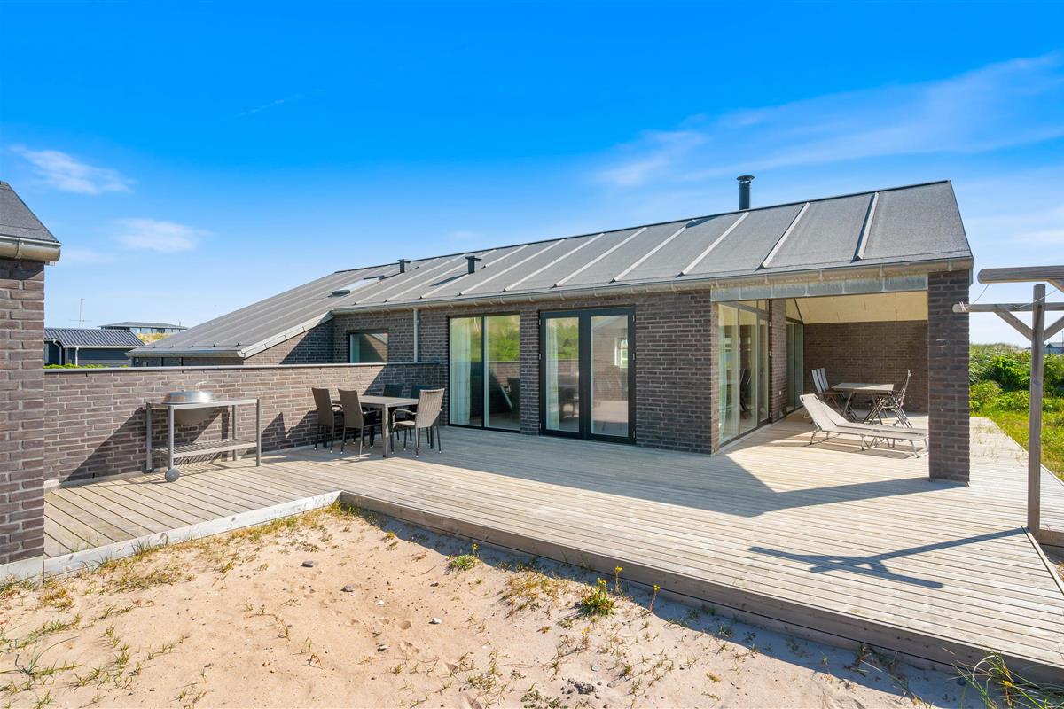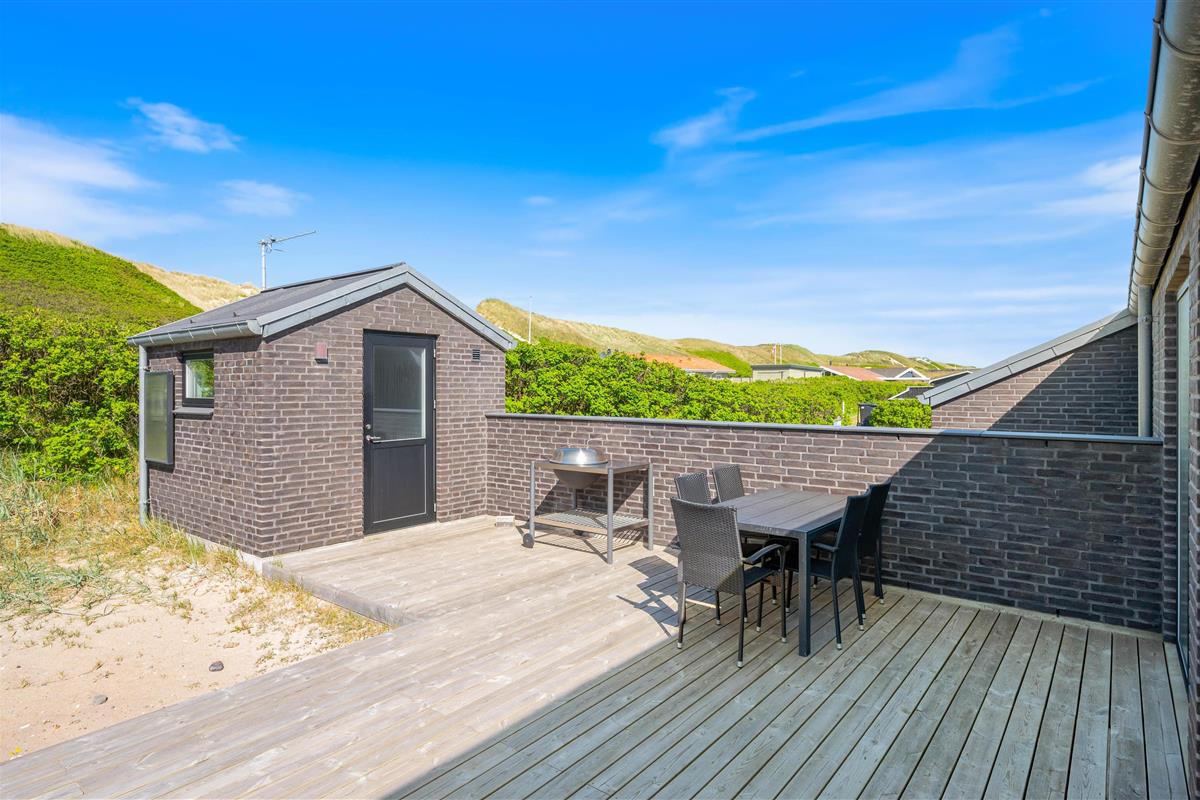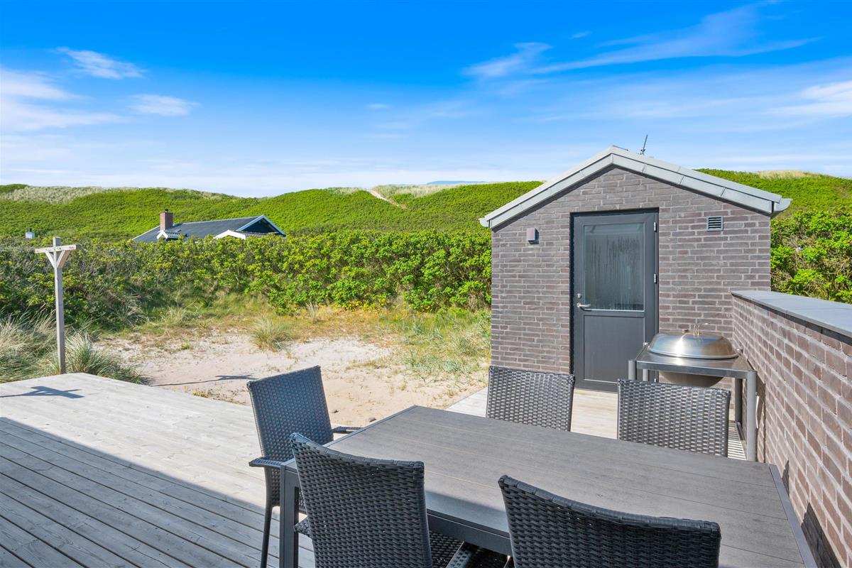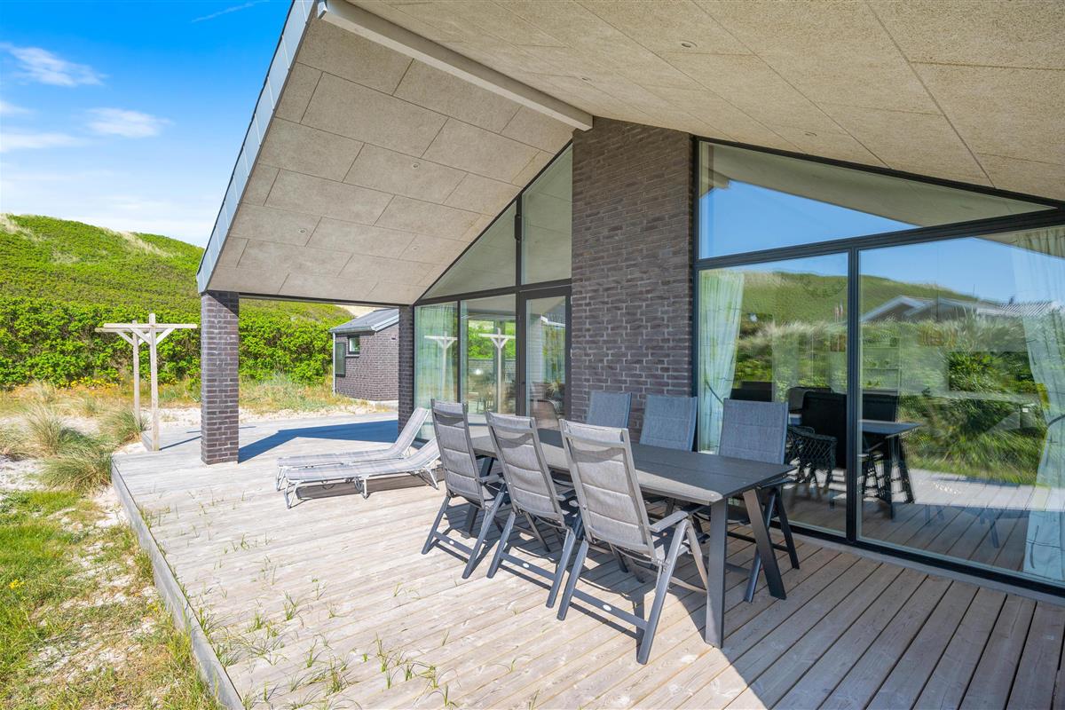 The terrace, which extends around several sides of the house, allows you to enjoy the sun throughout the day. In the evening, you can fire up the barbecue and prepare a delicious outdoor supper for the family. Afterwards, enjoy the evening with a glass of wine on the sheltered terrace while the sun sets behind the dunes and the sound of the sea provides a peaceful backdrop.