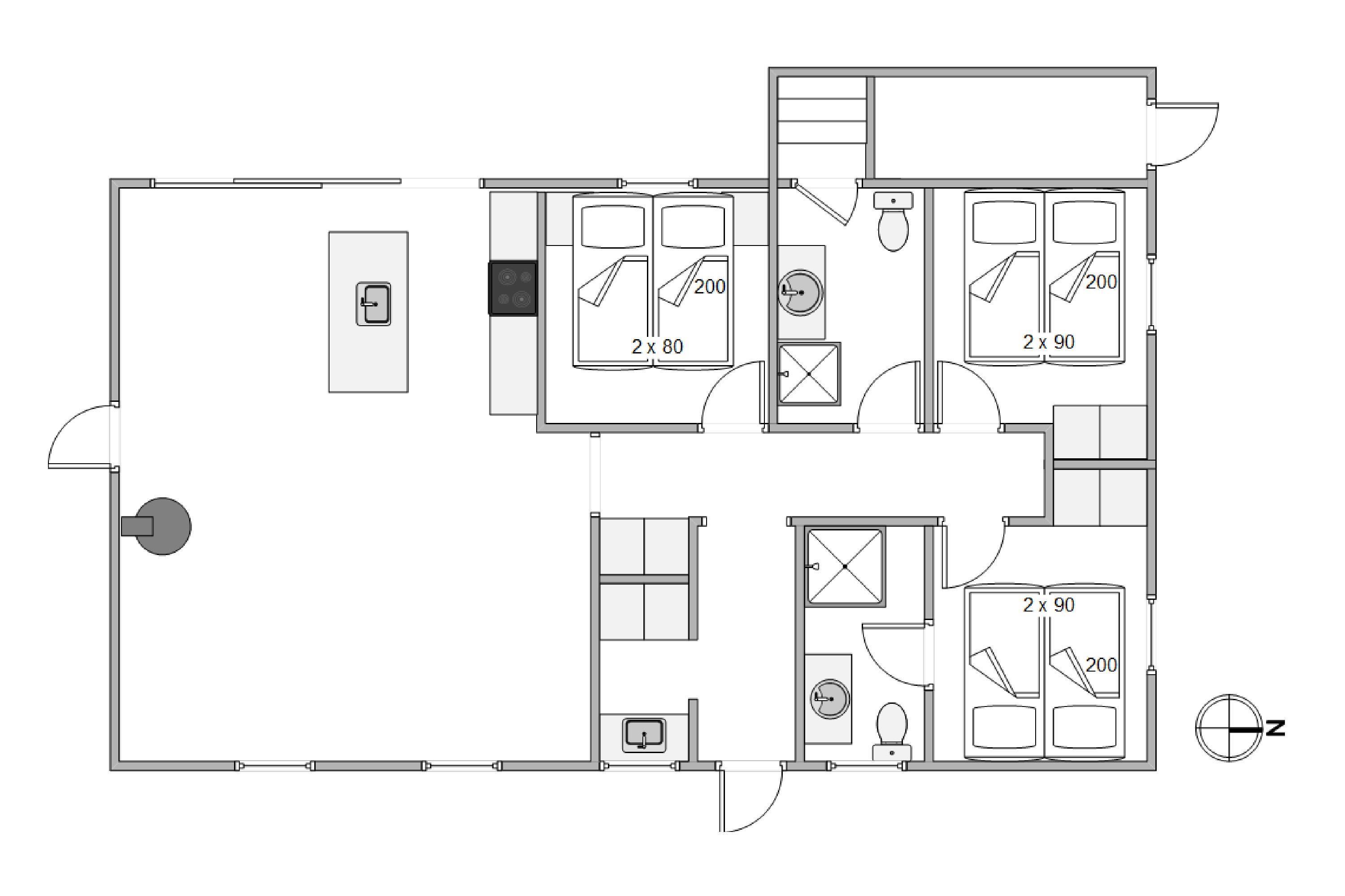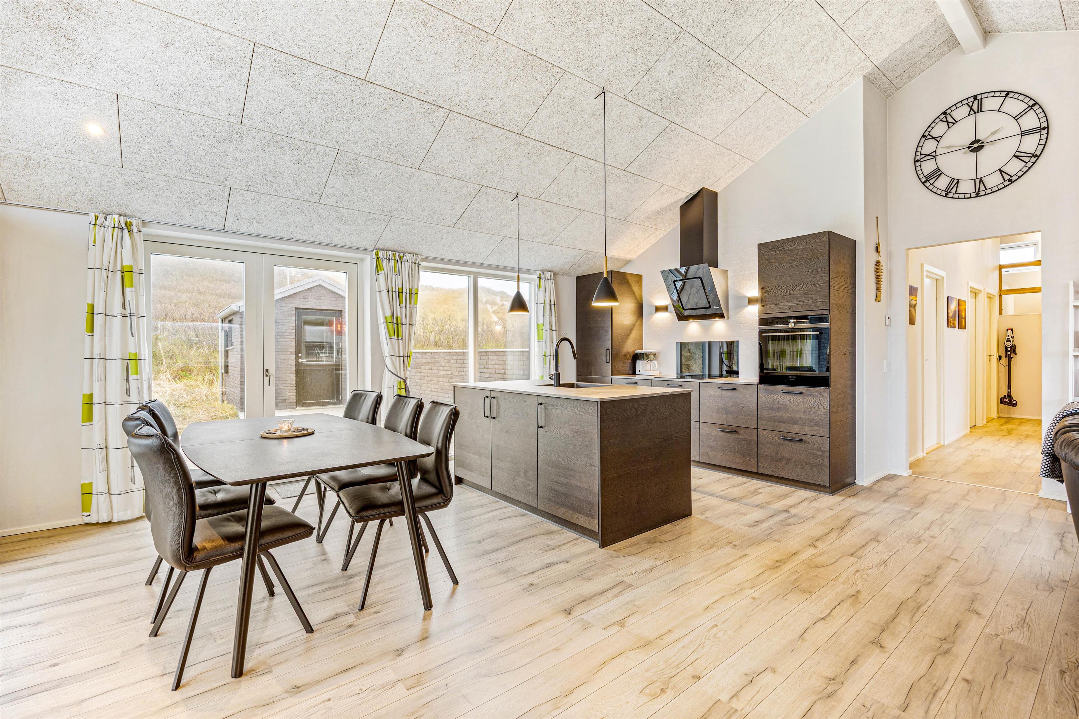 This six-person holiday home has been furnished in a modern, stylish way and is perfect for extended families with a dog or two couples, thanks to its two bathrooms. The open-plan, bright and elegantly furnished living space forms the heart of the house. The kitchen is stylishly and practically equipped, featuring a dishwasher and microwave, plus there's an additional chest freezer (125 litres) in the holiday home.