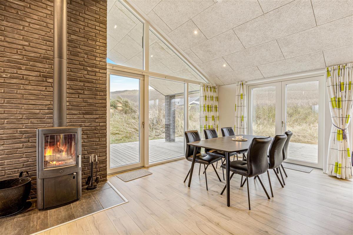 You'll be staying in a front-row position to the dune landscape, just 150 metres from the vast North Sea beach. Both the sea and Ringköbing Fjord offer numerous water sports opportunities – you can visit the popular surfing spot at South Hvide Sande nearby or try water skiing in Hvide Sande itself. For cycling enthusiasts, the nature trail along the dunes and heathland makes for an excellent route. The fishing town of Hvide Sande is just 1.9 miles (3 km) to the north, offering numerous shops, restaurants and cafés.