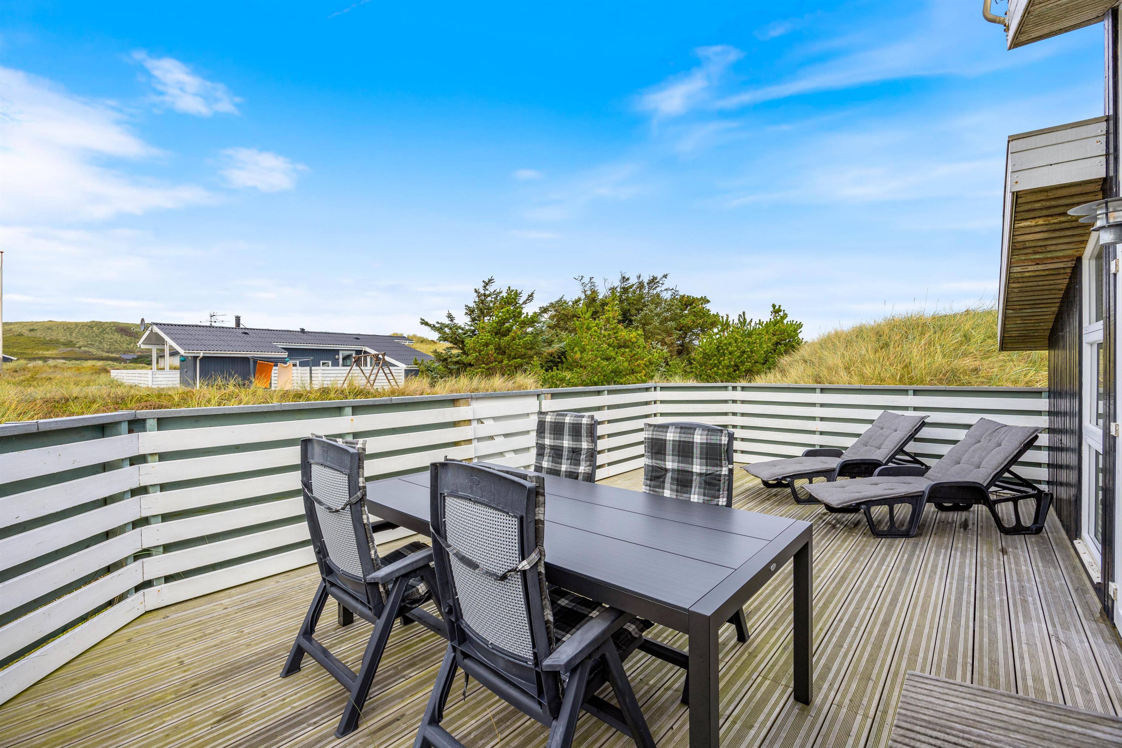 The holiday home features two terraces, one east-facing and one west-facing, ensuring you can almost always find shelter from the wind. The high surround provides privacy. Make yourself comfortable on the garden furniture and enjoy the sunshine and fresh North Sea air.