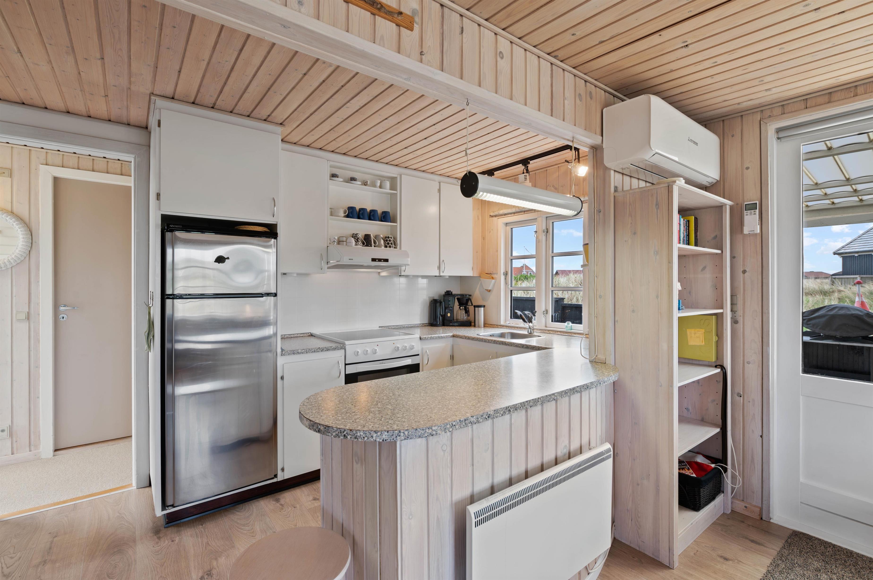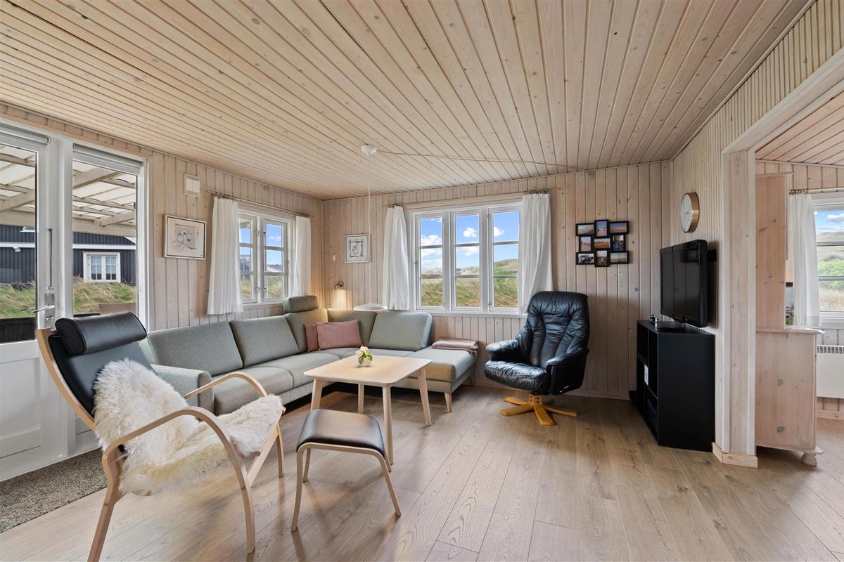 This holiday home provides the perfect setting for a holiday on Holmsland Klit, where Årgab is a deservedly popular holiday destination. The landscape is beautifully undulating on the narrow peninsula between the North Sea and Ringkøbing Fjord, with Hvide Sande just a short distance away.