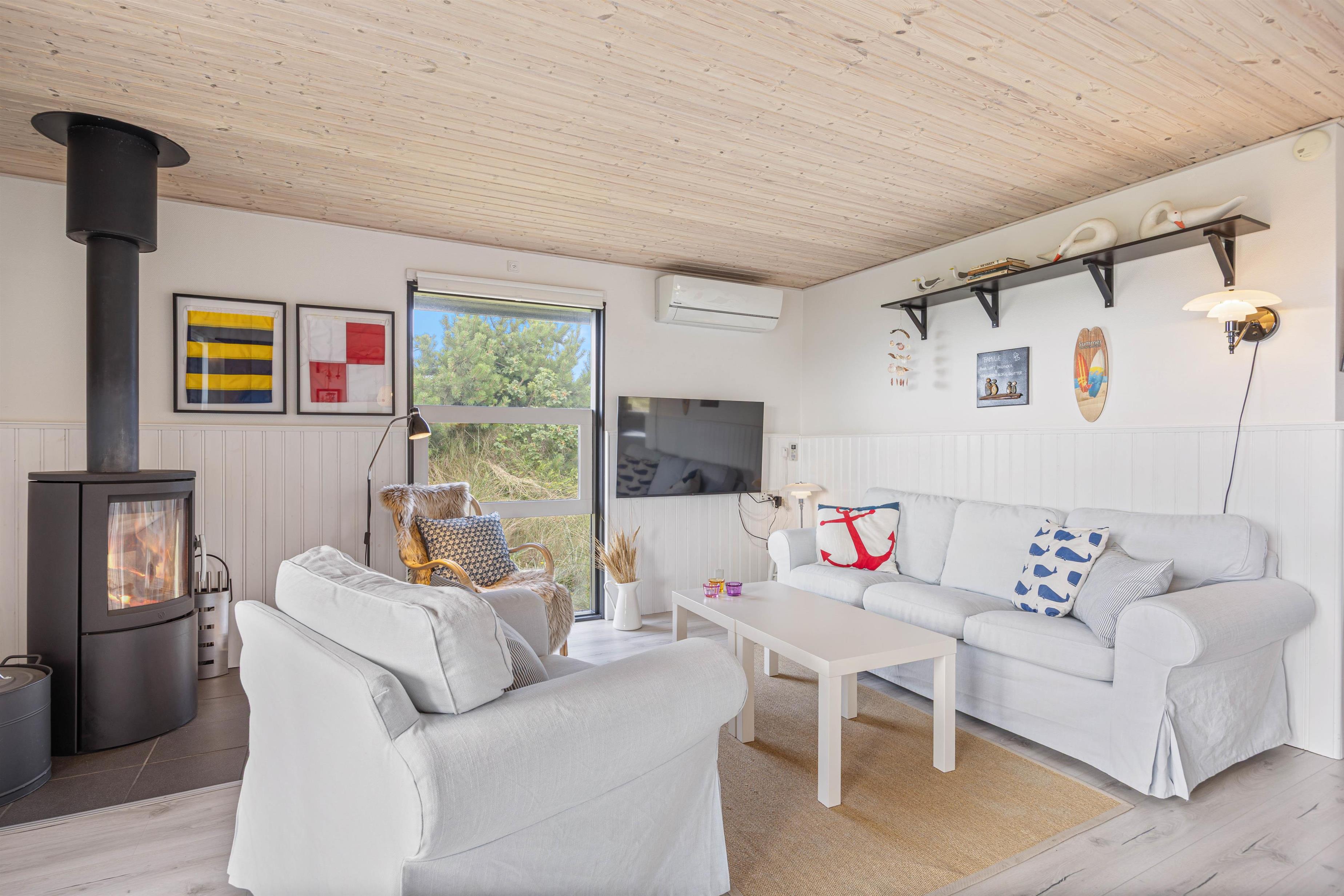 This charming holiday home, located at Tingodden 7 in Årgab, offers a warmly decorated retreat for a relaxing holiday with your dog. Set within natural grounds of 2,214 square metres, you'll find plenty of space to enjoy the tranquillity you're seeking. The immediate proximity to the beach invites long walks along the North Sea.