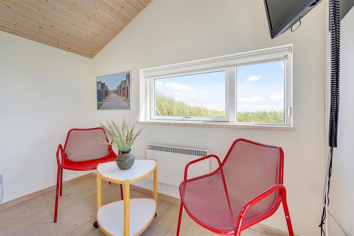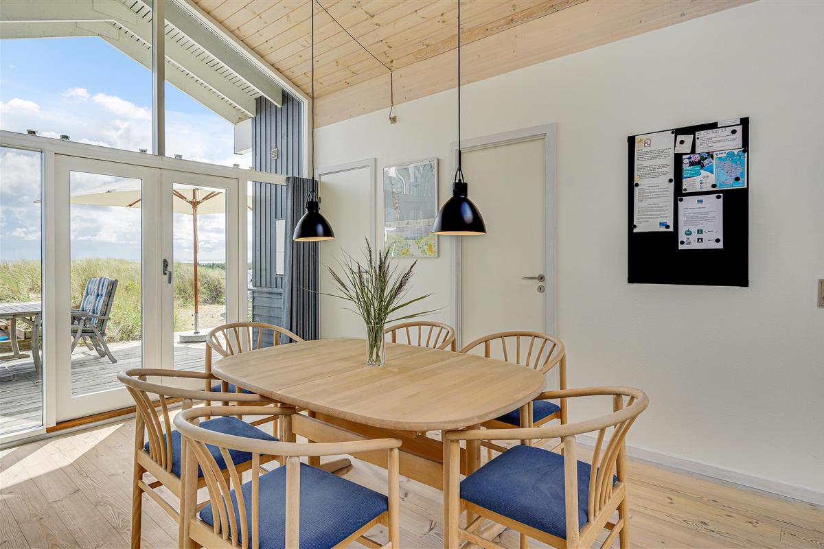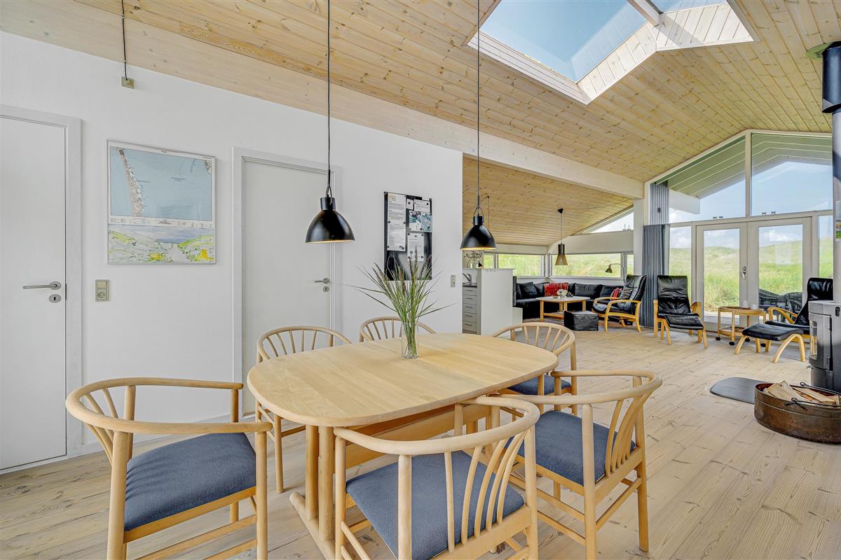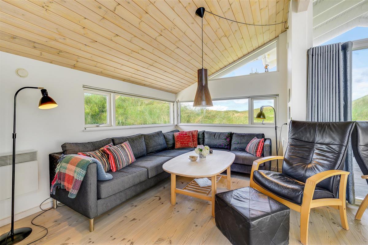 The holiday home is elevated on a dune with outstanding views, whilst maintaining complete privacy. The east-facing terrace is typically well-sheltered from the wind and offers magnificent views over Ringkøbing Fjord. On the partially covered and naturally screened west-facing terrace, you'll be situated right on the dune amidst beautiful scenery.