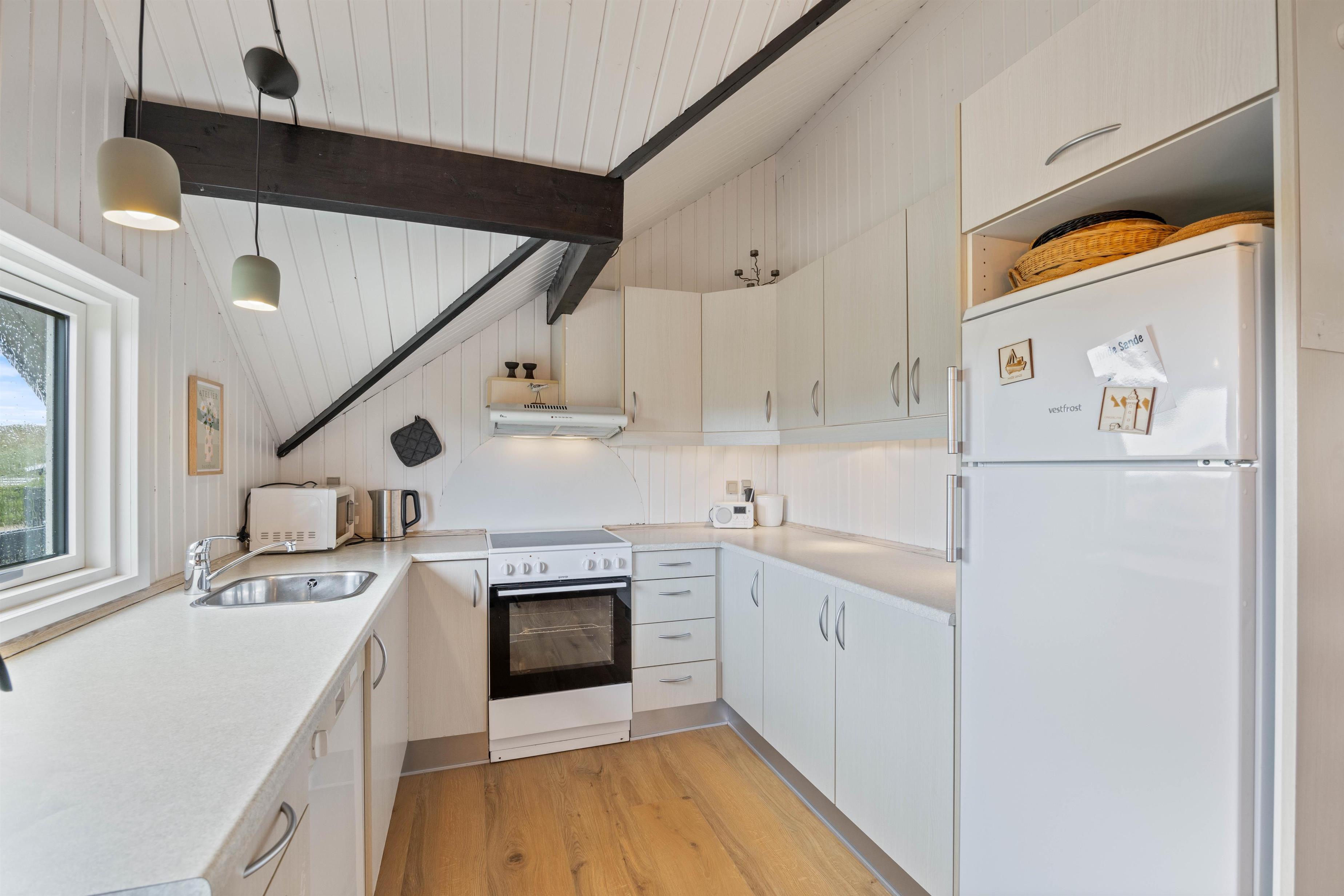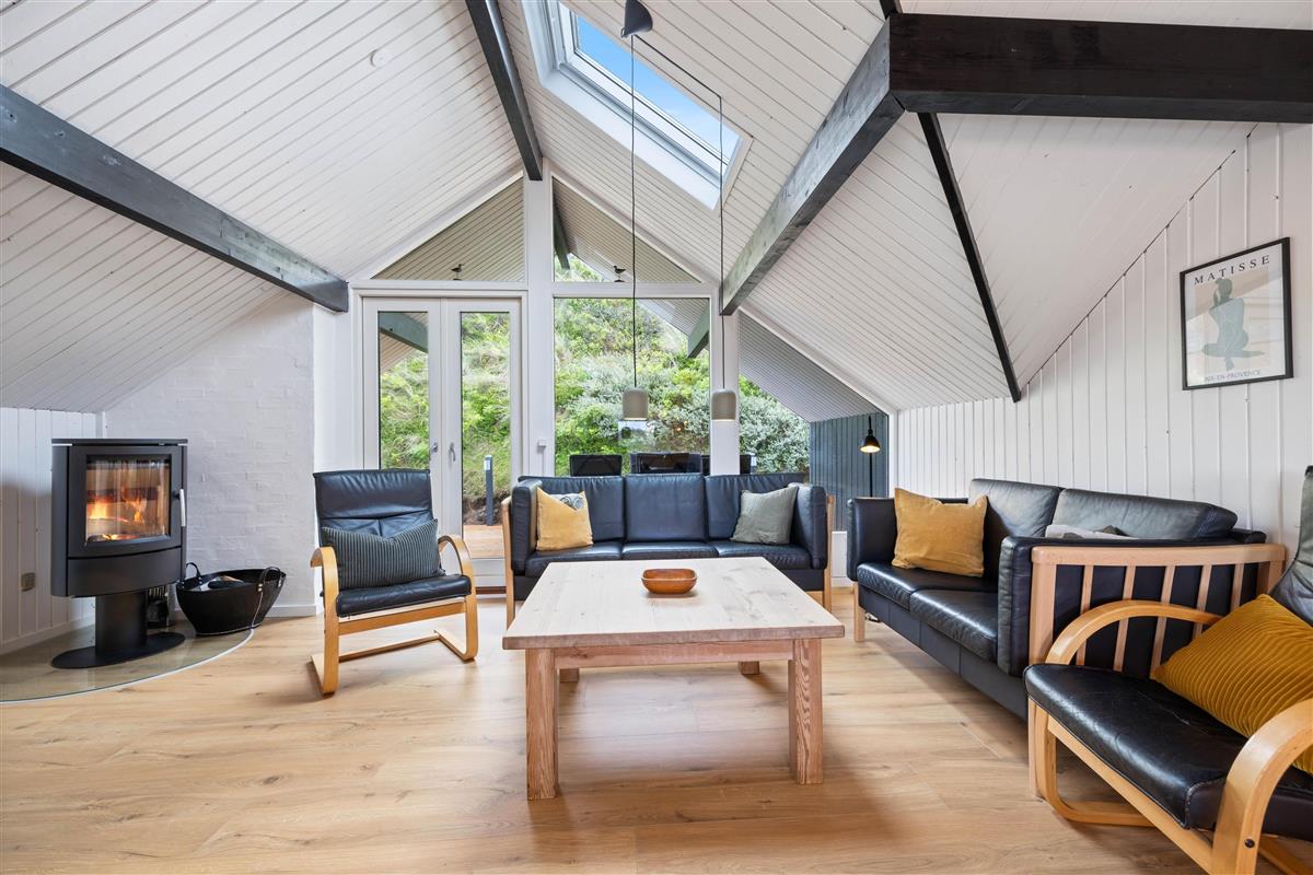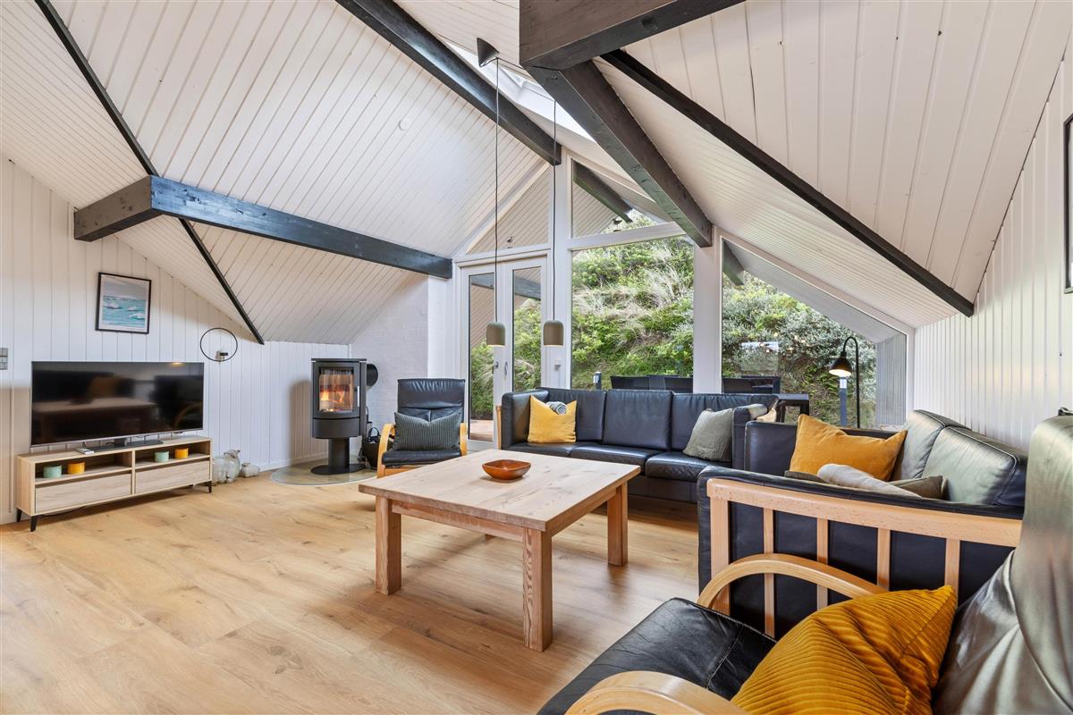 You'll feel at home straight away in this holiday home at Tingodden 170. The living room offers a comfortable space to play board games, watch TV or simply retreat with a good book. Roof windows flood the open-plan living area with natural light. In the evening, light the wood-burning stove and truly unwind. The open-plan, well-designed kitchen, directly adjacent to the living and dining area, has everything you need to create delicious meals.