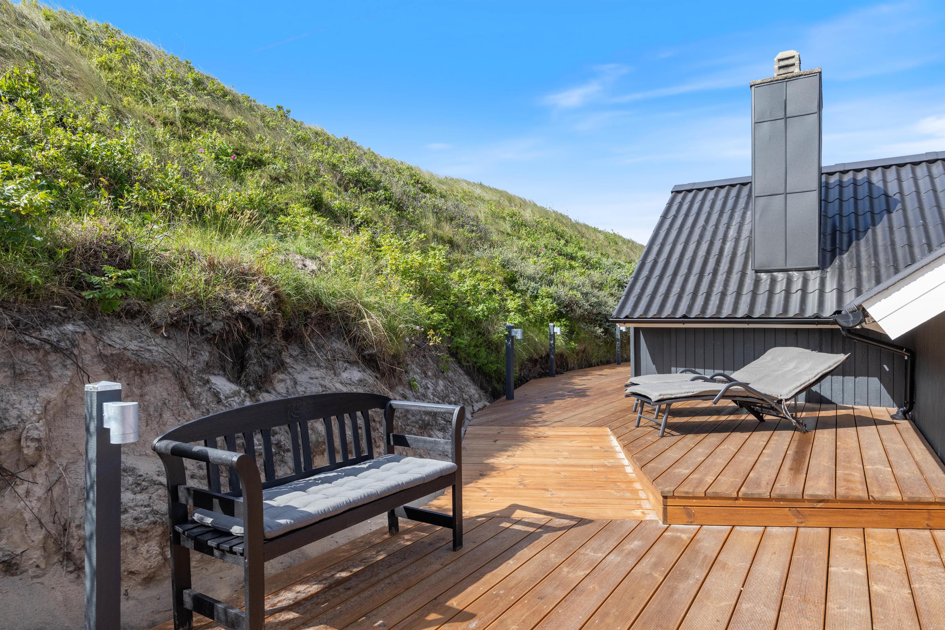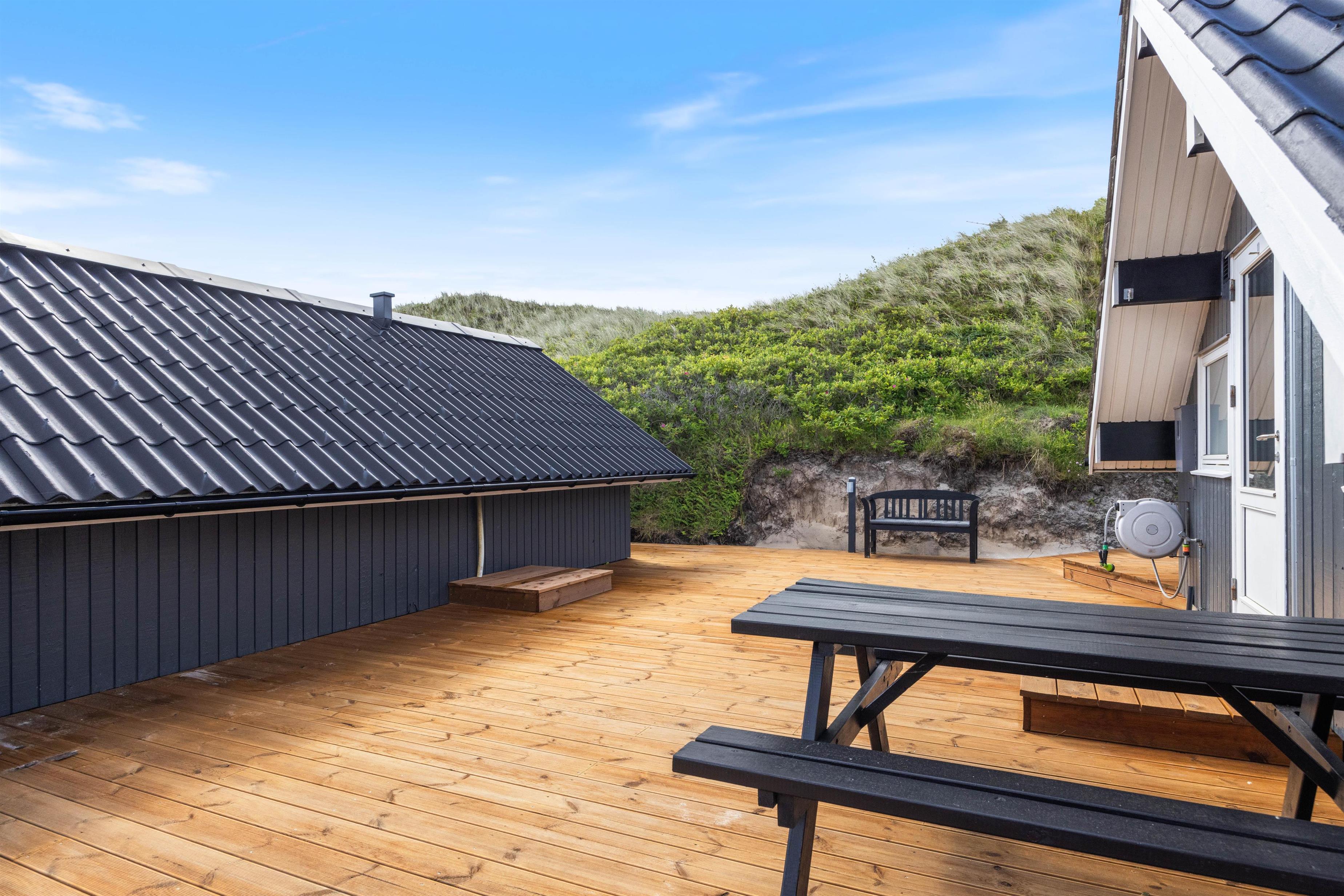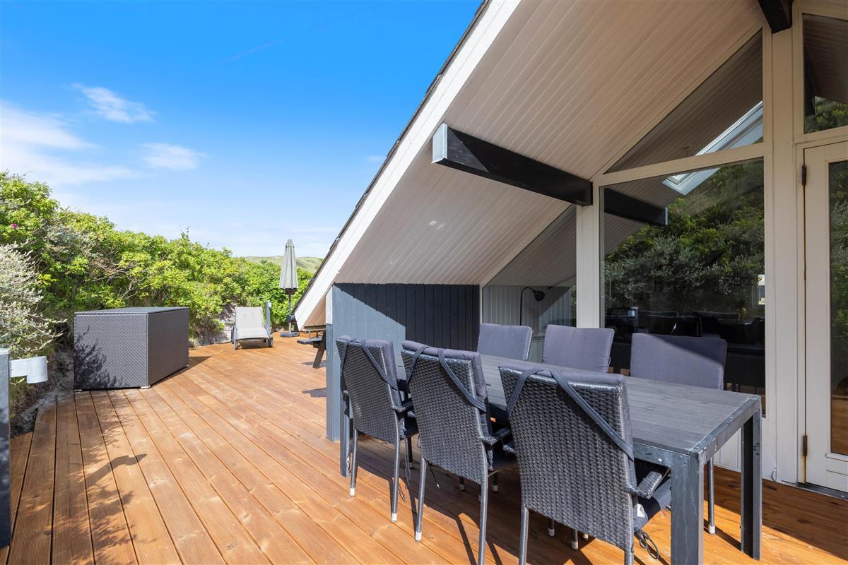 The enclosed terrace is partially covered – ensuring you'll always find the perfect spot to relax. Unwind in the comfortable garden furniture while the children explore the large natural grounds. In the evening, fire up the barbecue and enjoy your dinner on the terrace. If you're feeling energetic, climb the tall dunes to experience the unique sunset over the North Sea.