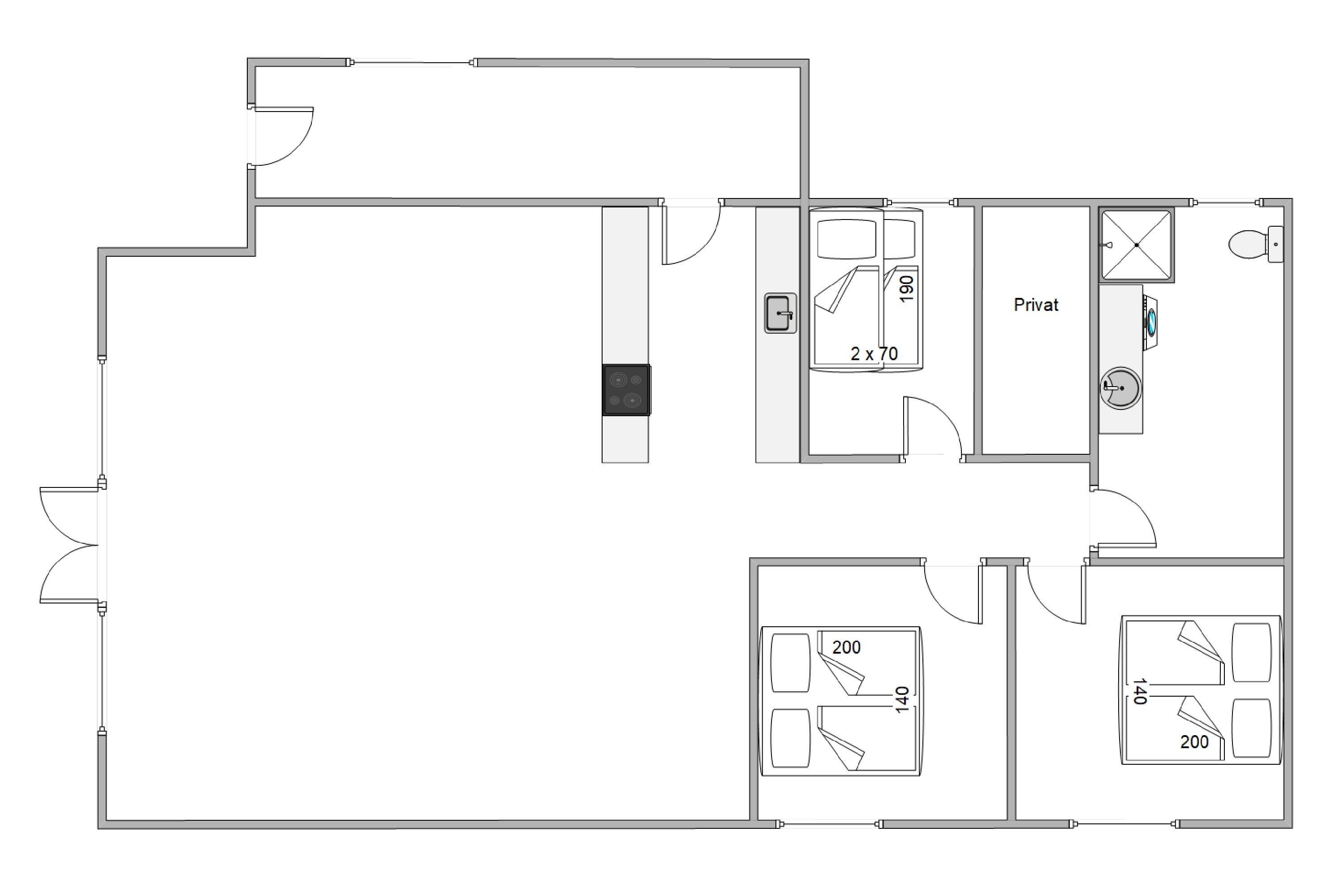 Upon entering the holiday home, you're greeted by a bright and inviting living area. High-quality furniture and harmonious colour schemes make the living room perfect for spending time together. The heat pump ensures a comfortable temperature throughout your stay, helping you truly unwind after an eventful day. The adjoining fully equipped kitchen offers all modern appliances you'll need, including a dishwasher to make cleanup easier and a spacious 200-litre freezer. The modern bathroom is designed to meet your needs for both functionality and style, while three lovingly furnished bedrooms guarantee you and your family the peaceful sleep you deserve.