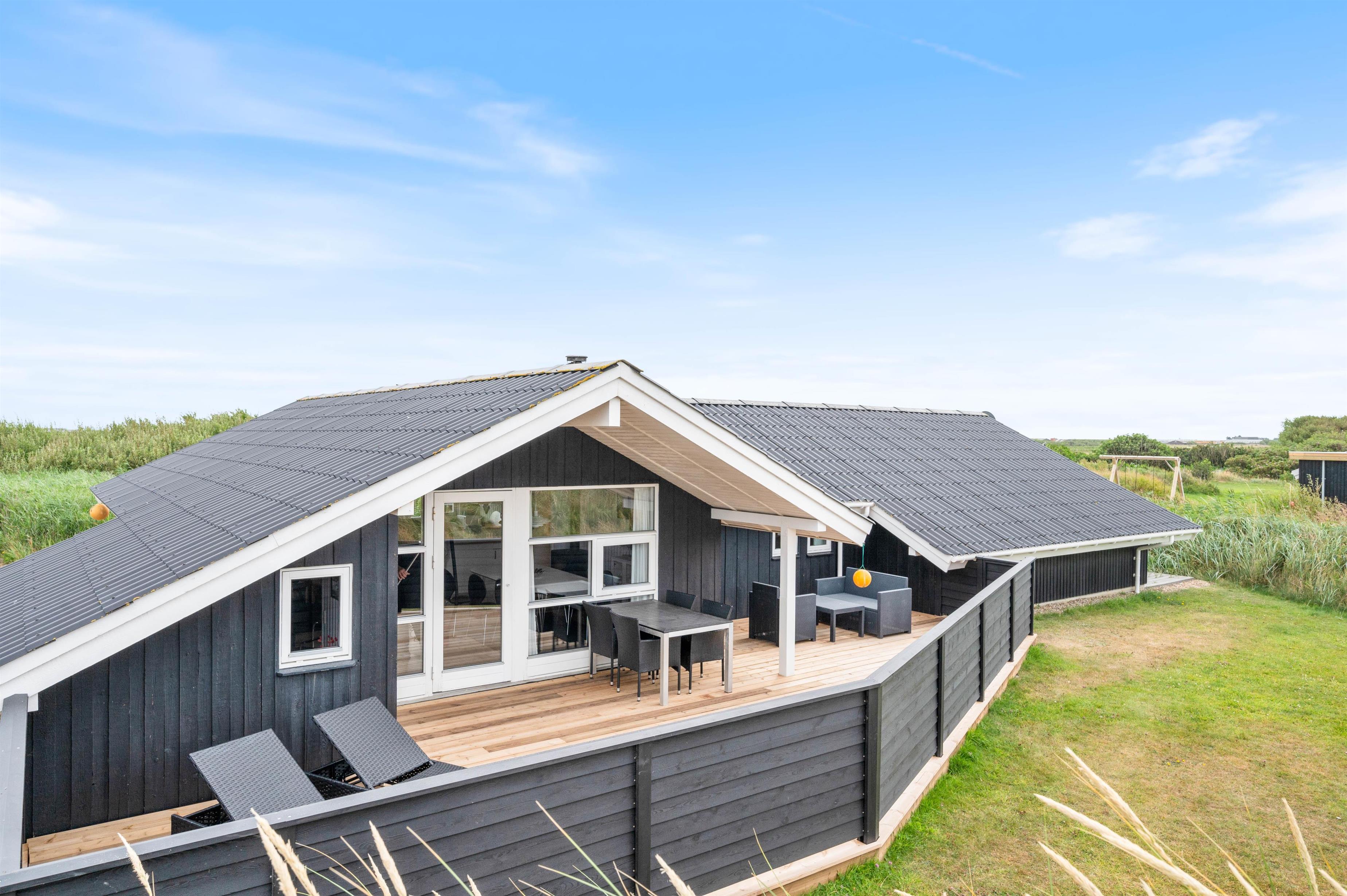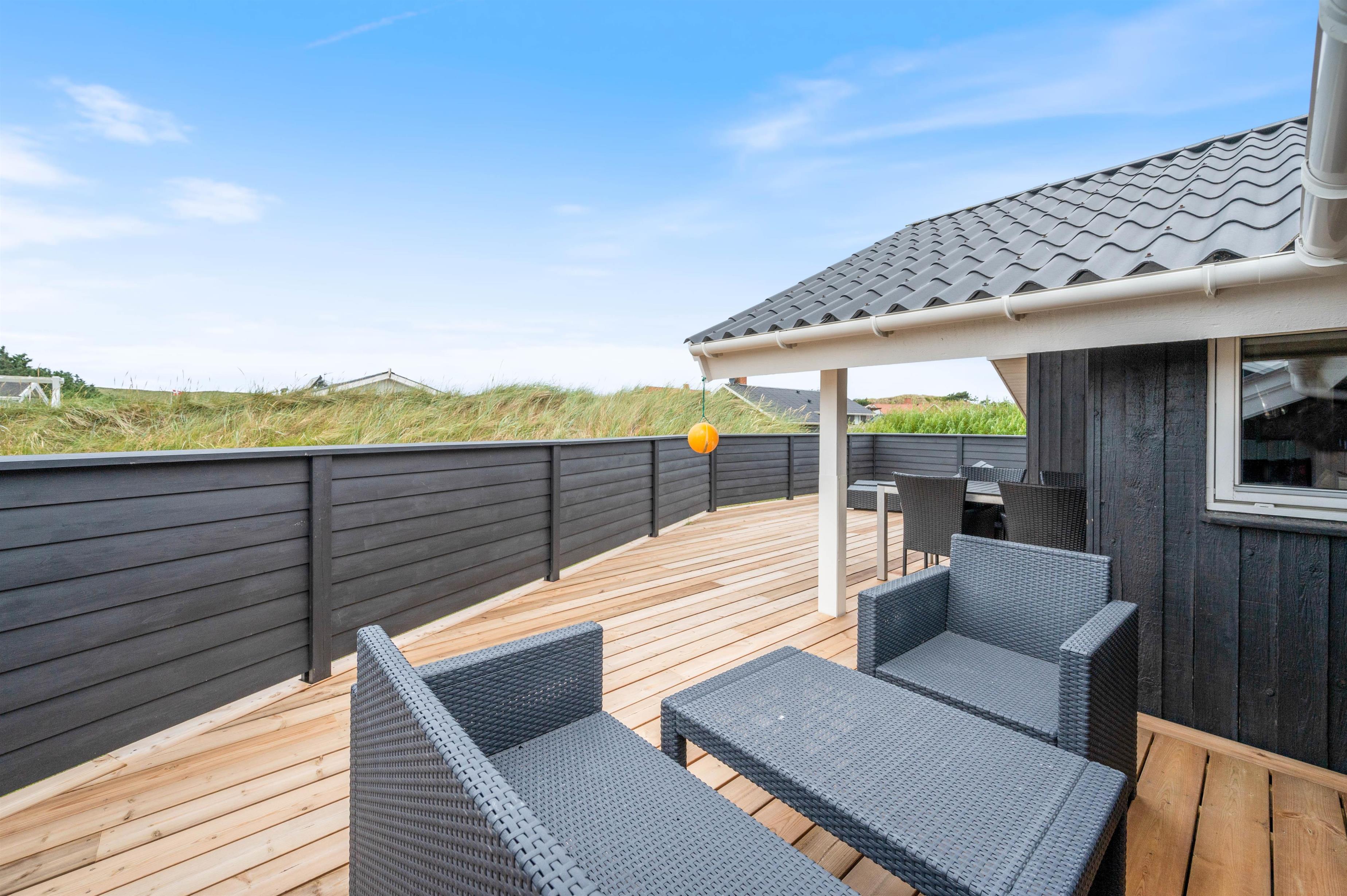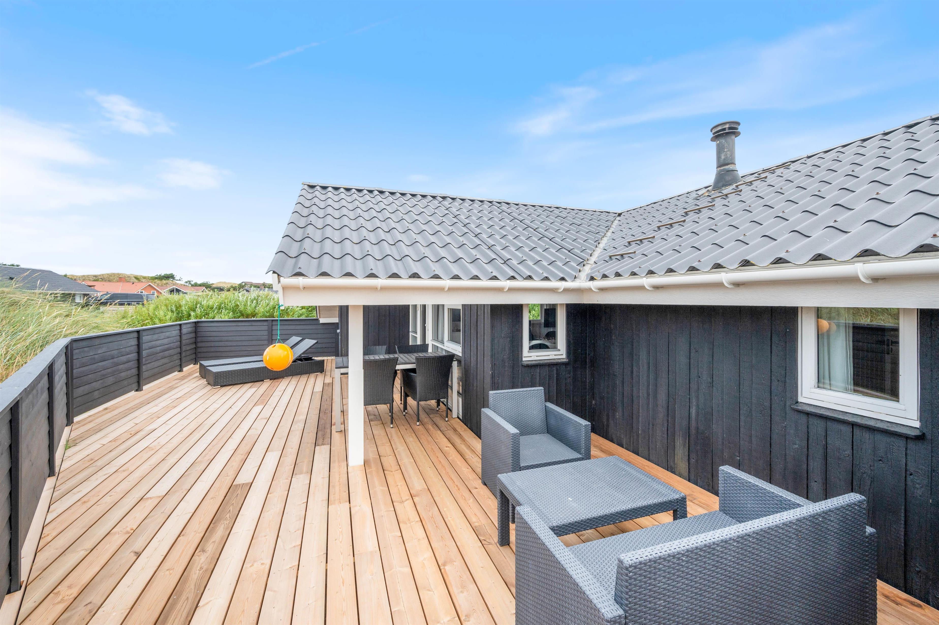 The holiday home at Tingodden 294 offers multiple terraces, some covered, and wonderful natural grounds providing numerous opportunities to spend summer days outdoors.