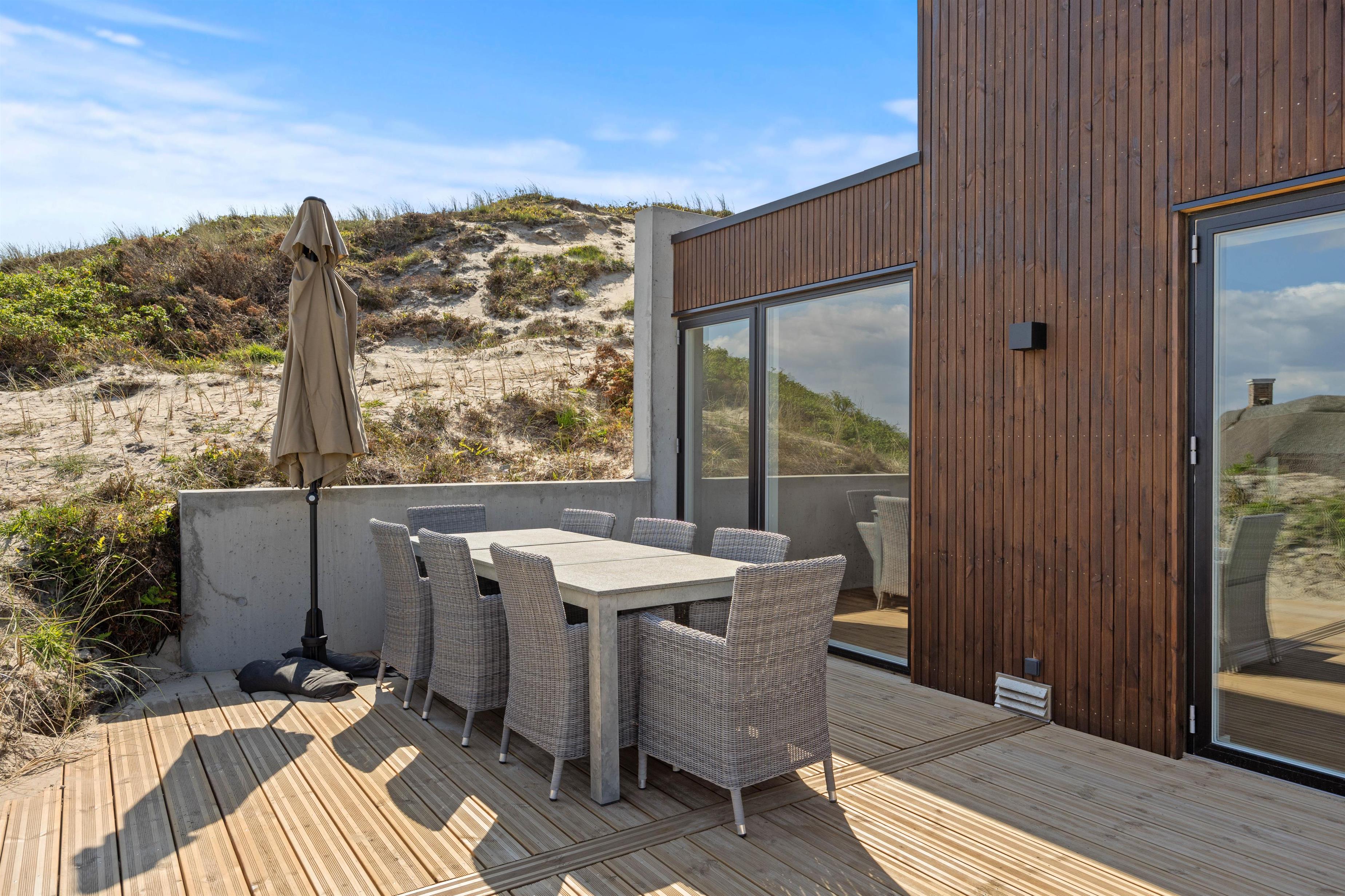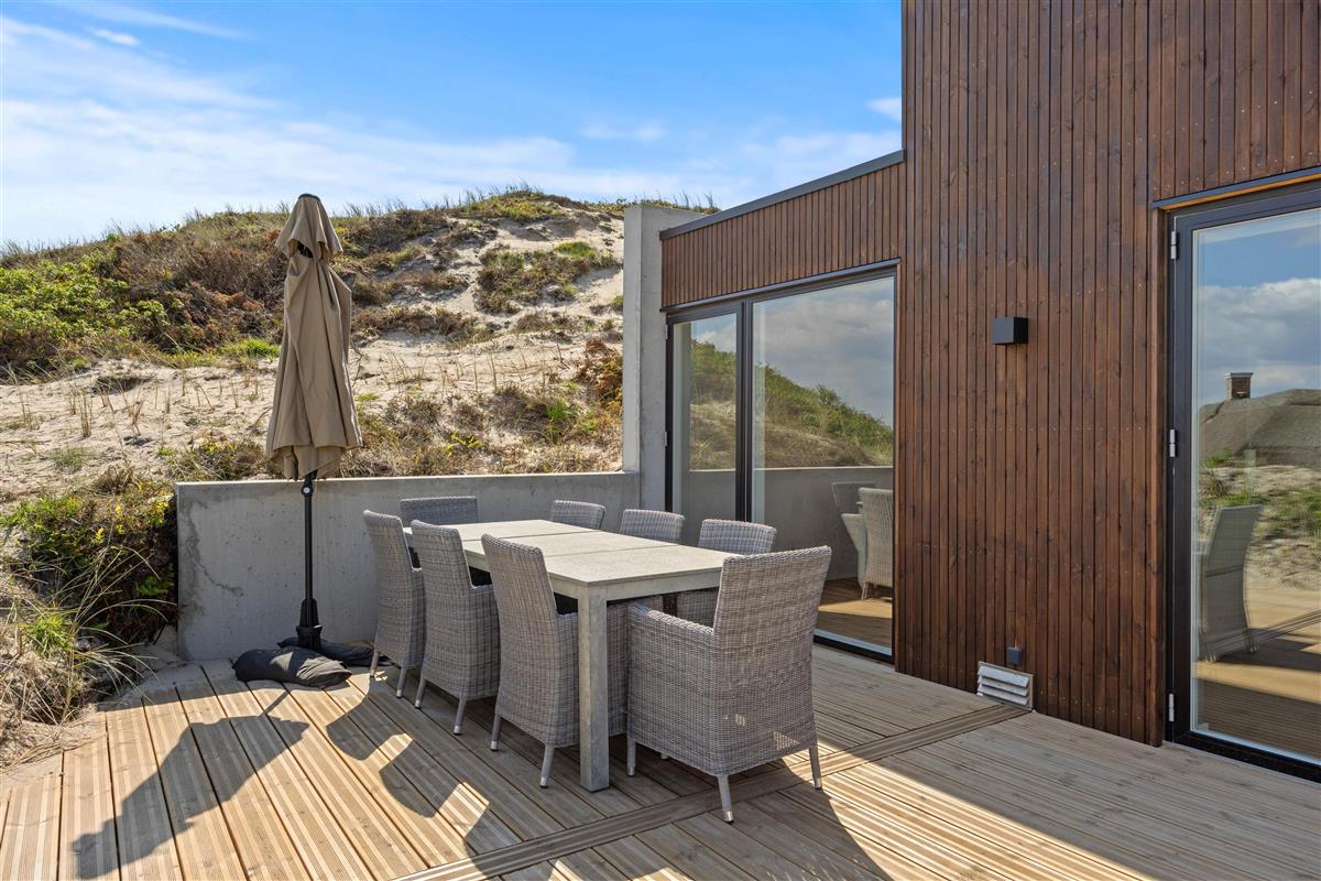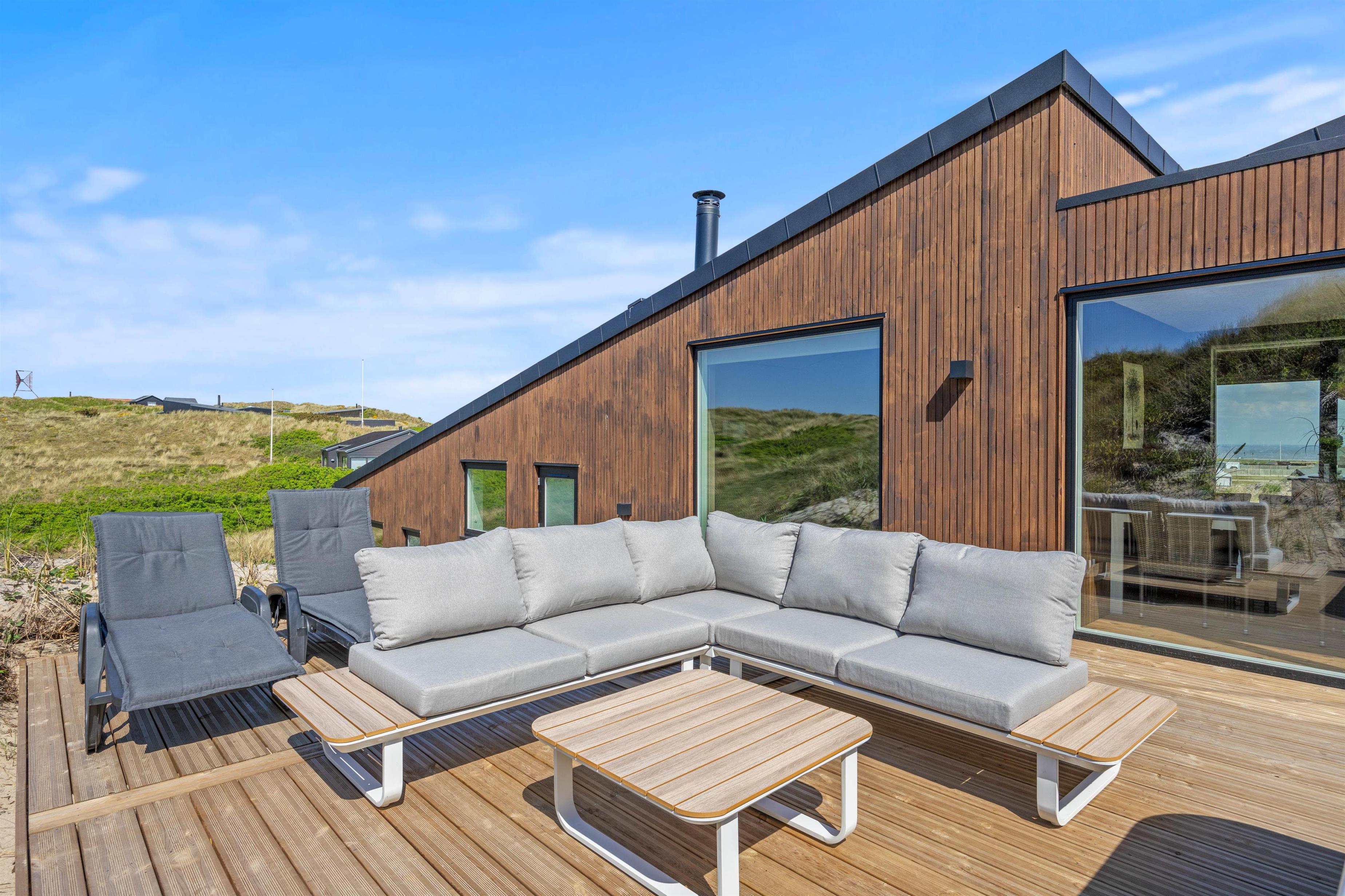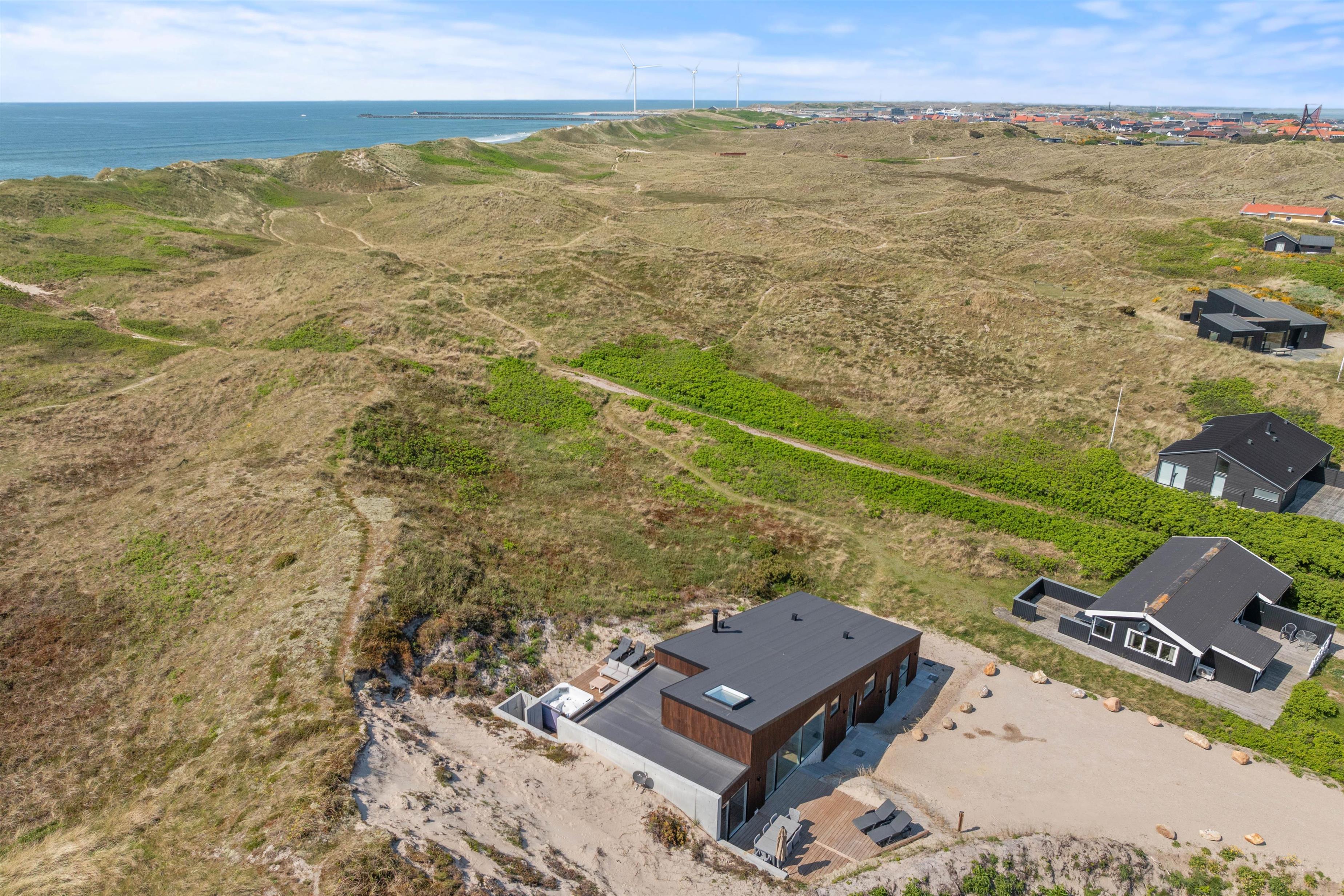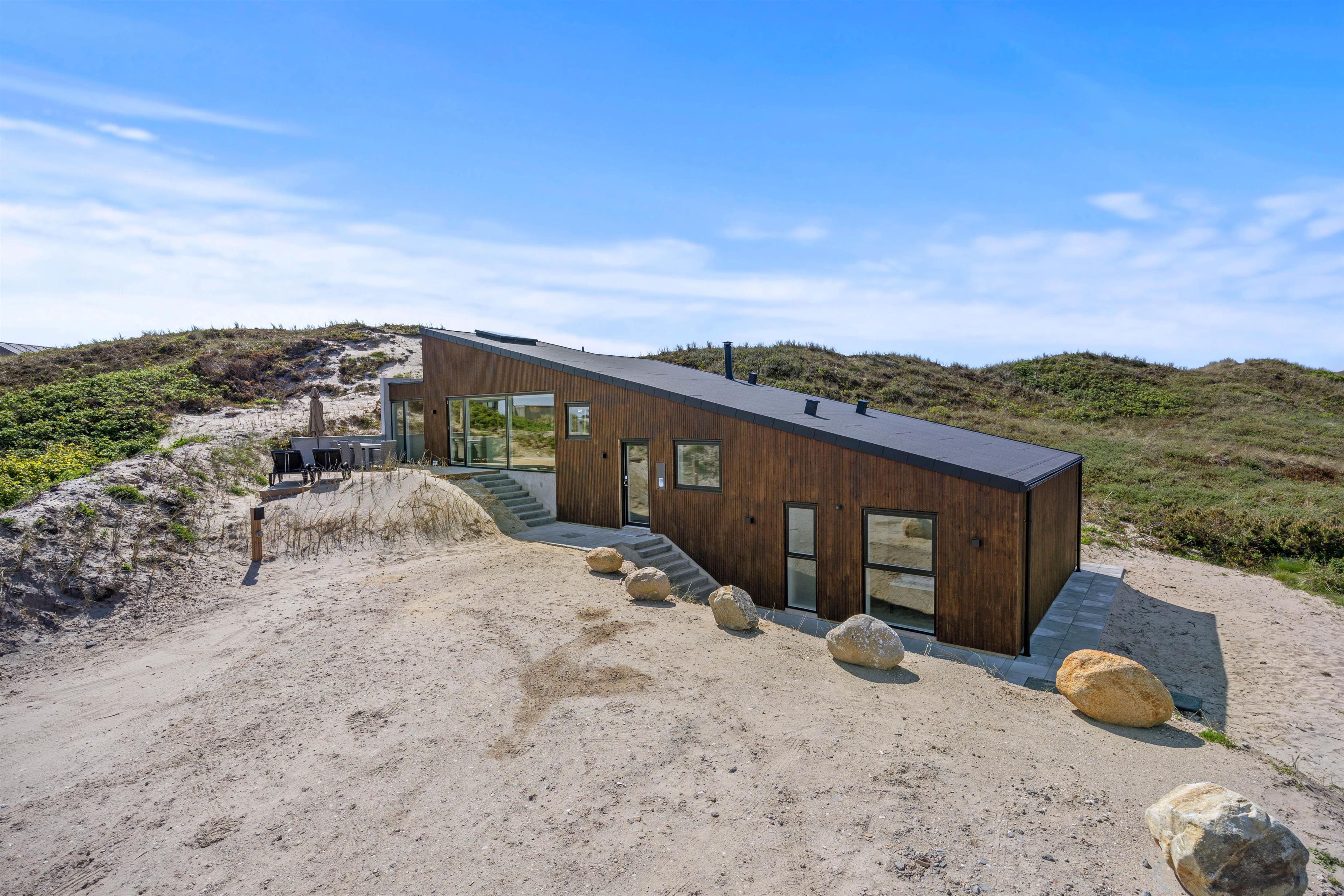Imagine opening the door to a paradise of comfort and style. Our holiday home at Karen Brands Vej 106 in Årgab invites you to unwind and leave everyday life behind. This 5-star holiday home offers everything you could wish for to make your holiday an unforgettable experience. With a generous living space of 125 square metres and room for up to 7 people and 2 dogs, it's the ideal retreat for a relaxing break in Denmark, situated in the front row of dunes just 100 metres from the North Sea.